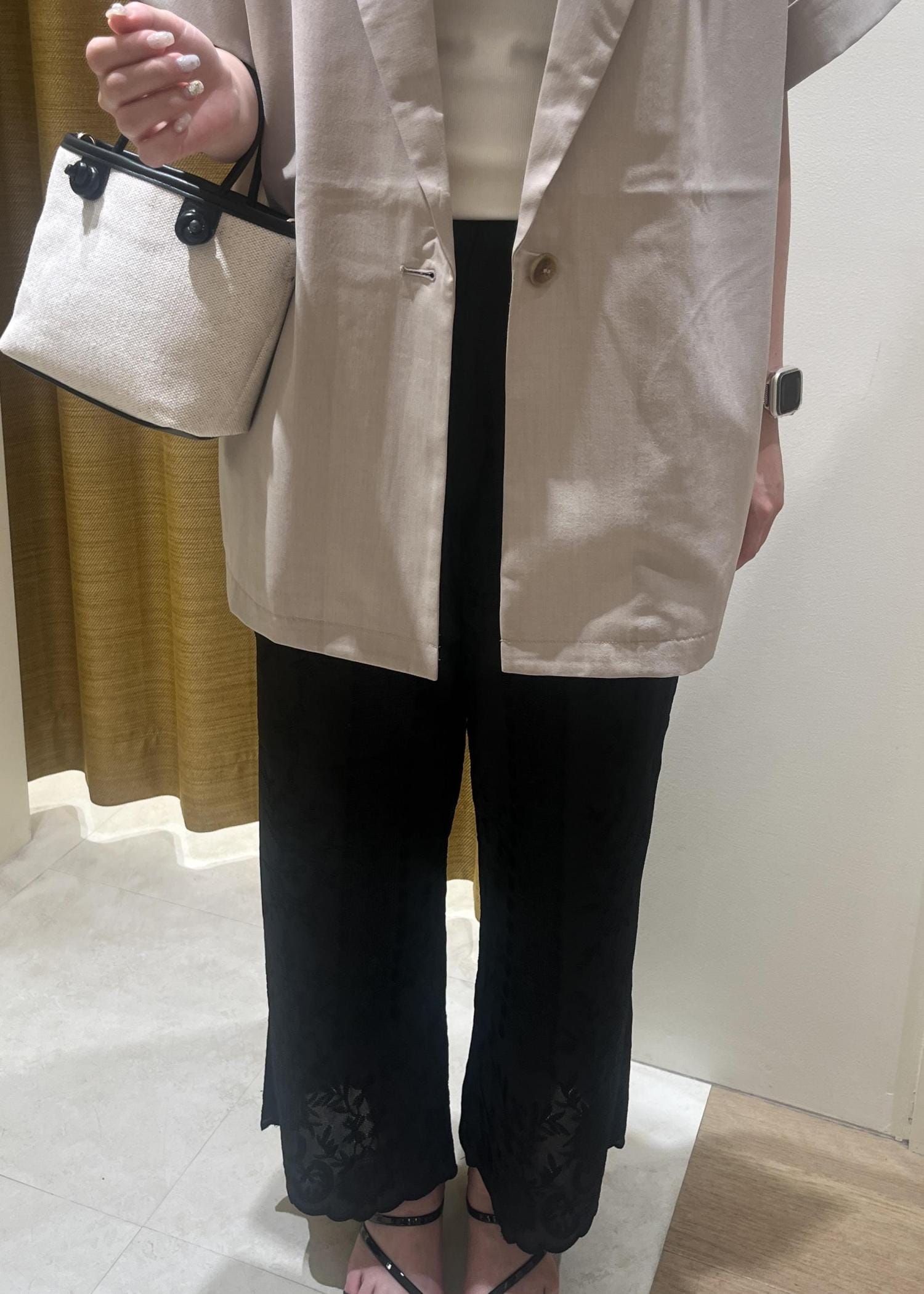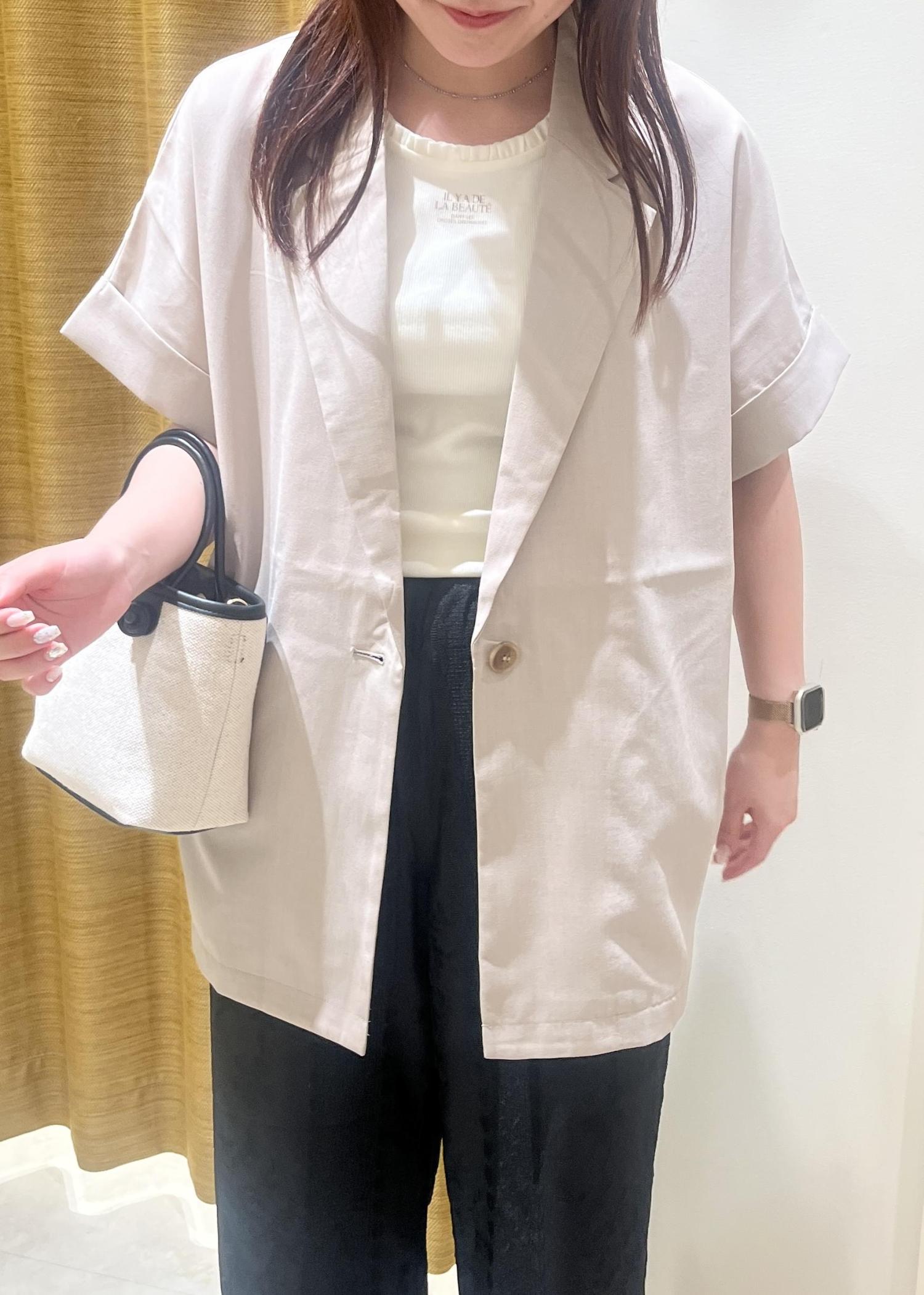 人気の麻調ジャケットを使ったスタイリング。
