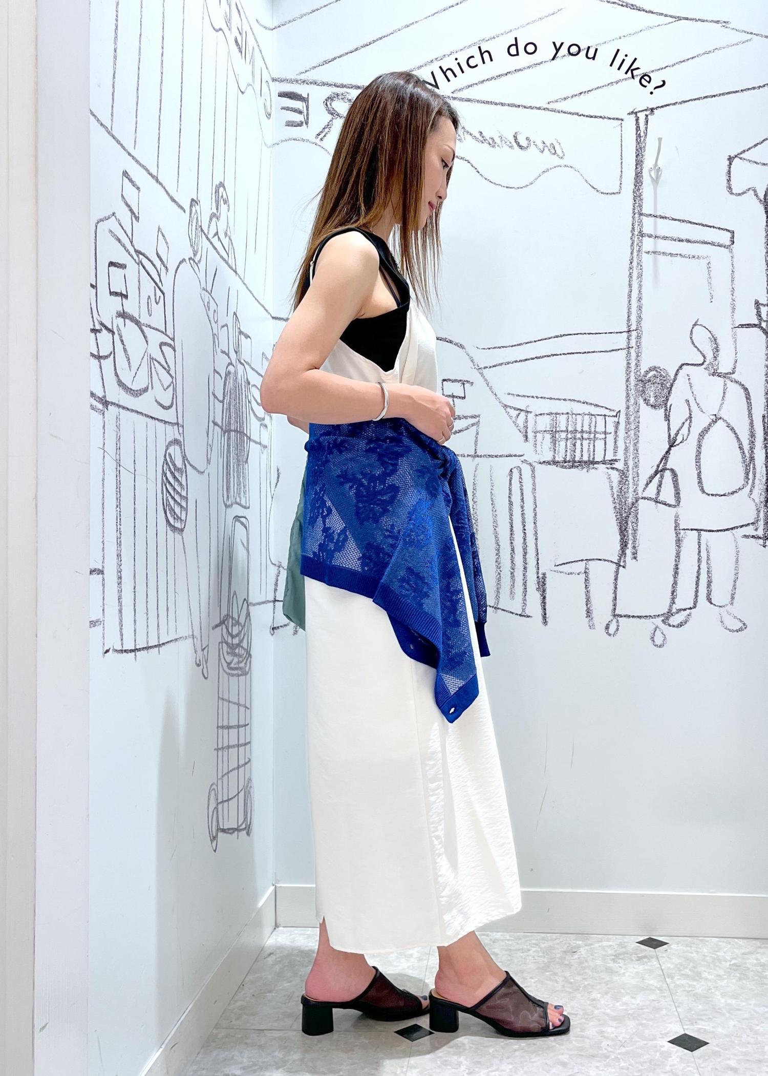 色味が素敵なカーデなのでお出かけ用でも、楽ちんワンピースなので普段使いでも使いやすいコーデです。キャミワンピースは、爽やかにホワイトでインナータンクトップはブラックで引き締めるとすっきりと見えます。モノトーンコーデに、素敵な色味のブルーのカーディガンを羽織るとカーディガンが映えます。ブルーカーデを活かしたコーデです。