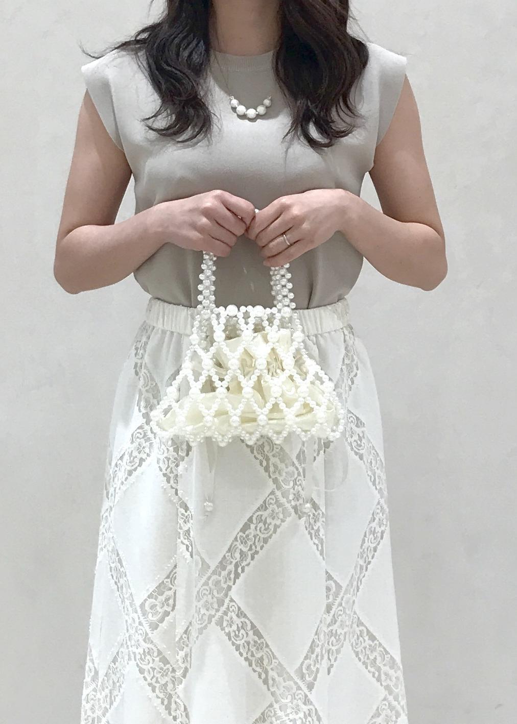 アウトレットROPÉ PICNIC PASSAGEポーチ付きビーズハンドバッグオフホワイト / F¥2,250レビューアクセントになるパールバッグです!