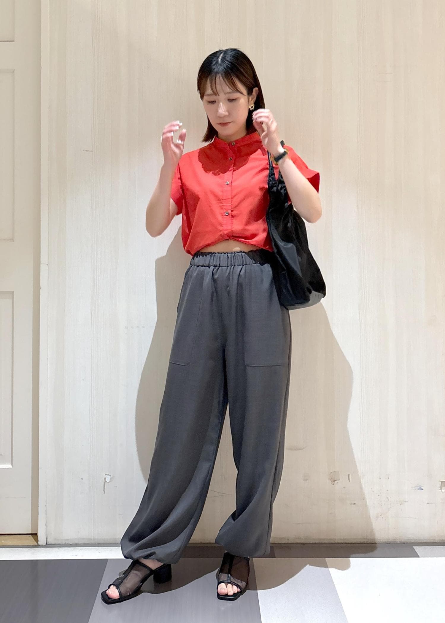 オレンジみのあるレッドのビタミンカラーが夏らしい、着回し抜群のシャツです。