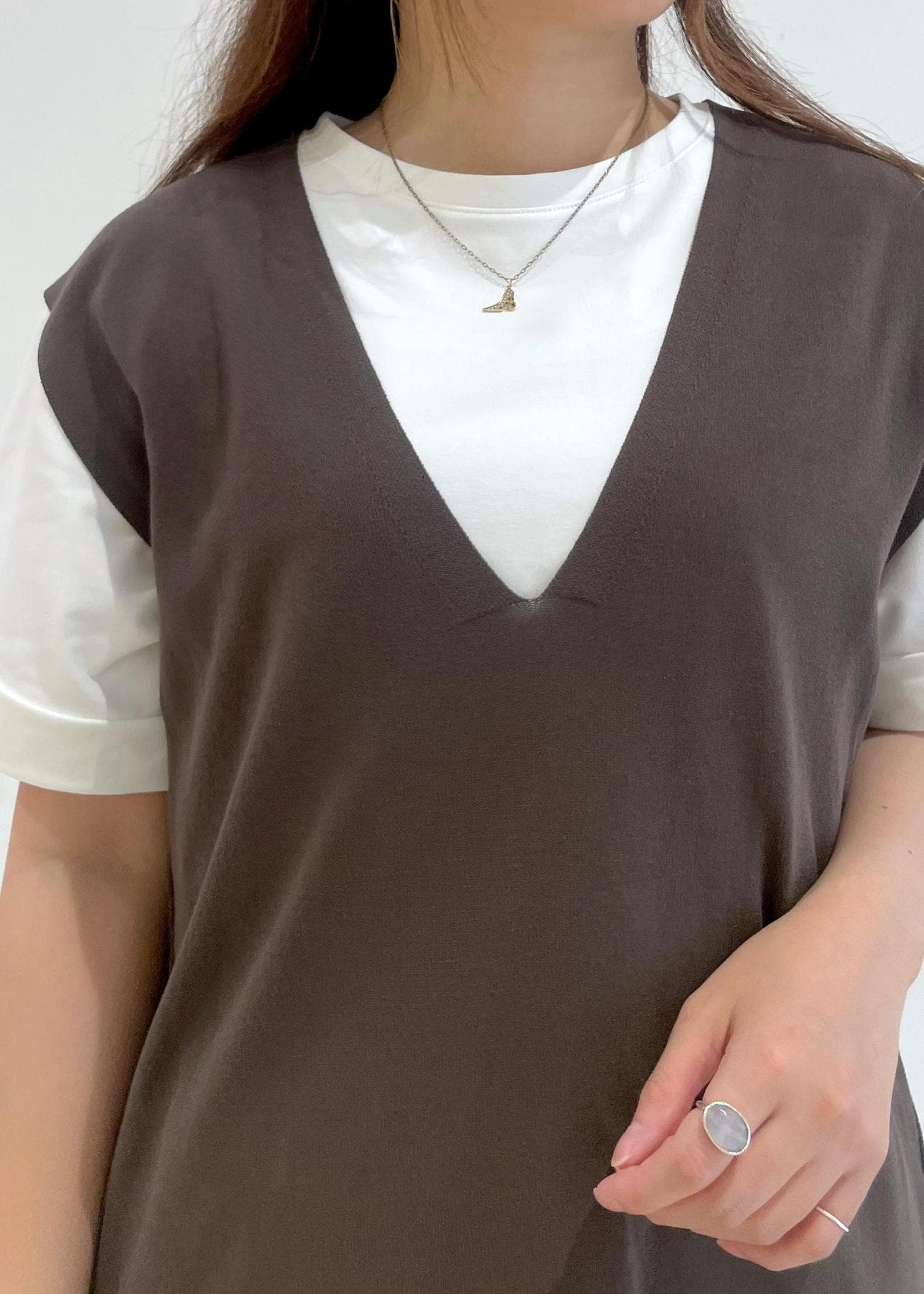 アウトレットROPÉ PICNIC【洗濯機OK】深Vニットプルオーバーチャコール / 38¥2,745レビューゆったりシルエットのチュニックのようなジレです!