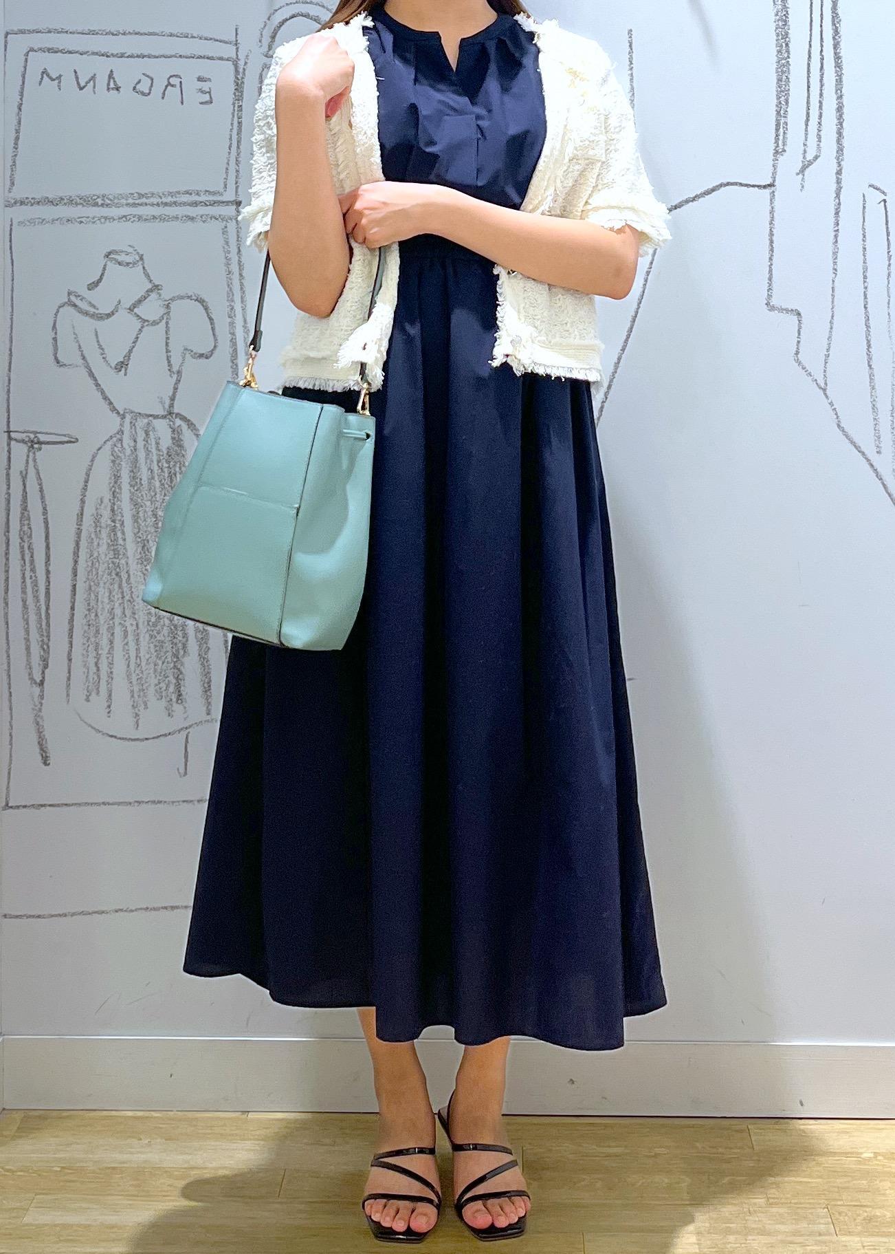 サマーツィードアイテム×ワンピースでコーディネートしてみました。