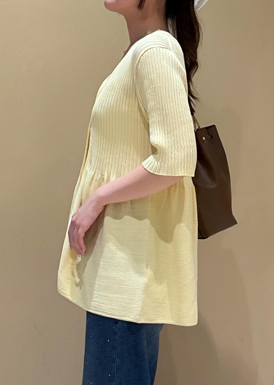伸縮性のある素材で程よいフィット感、綺麗なシルエットで着用できます。ヒップが隠れるペプラムシルエットで、袖も肘上まで長さがあるので体型カバーも◎