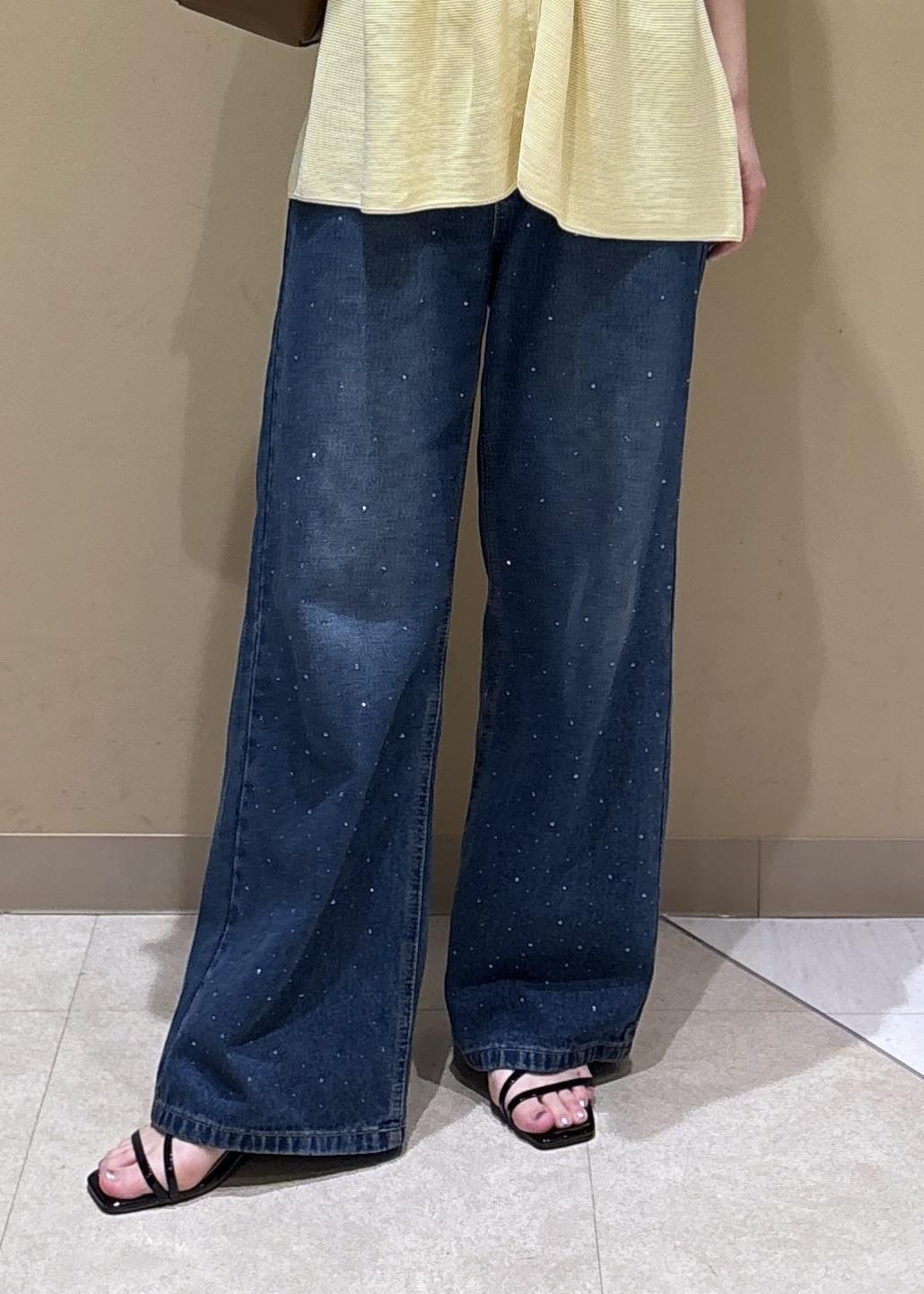 腰まわりのシルエットを拾いにくい程よい太さのあるワイドストレートなシルエットです。