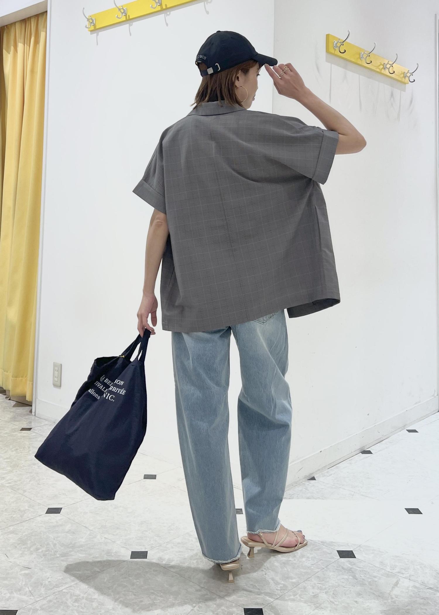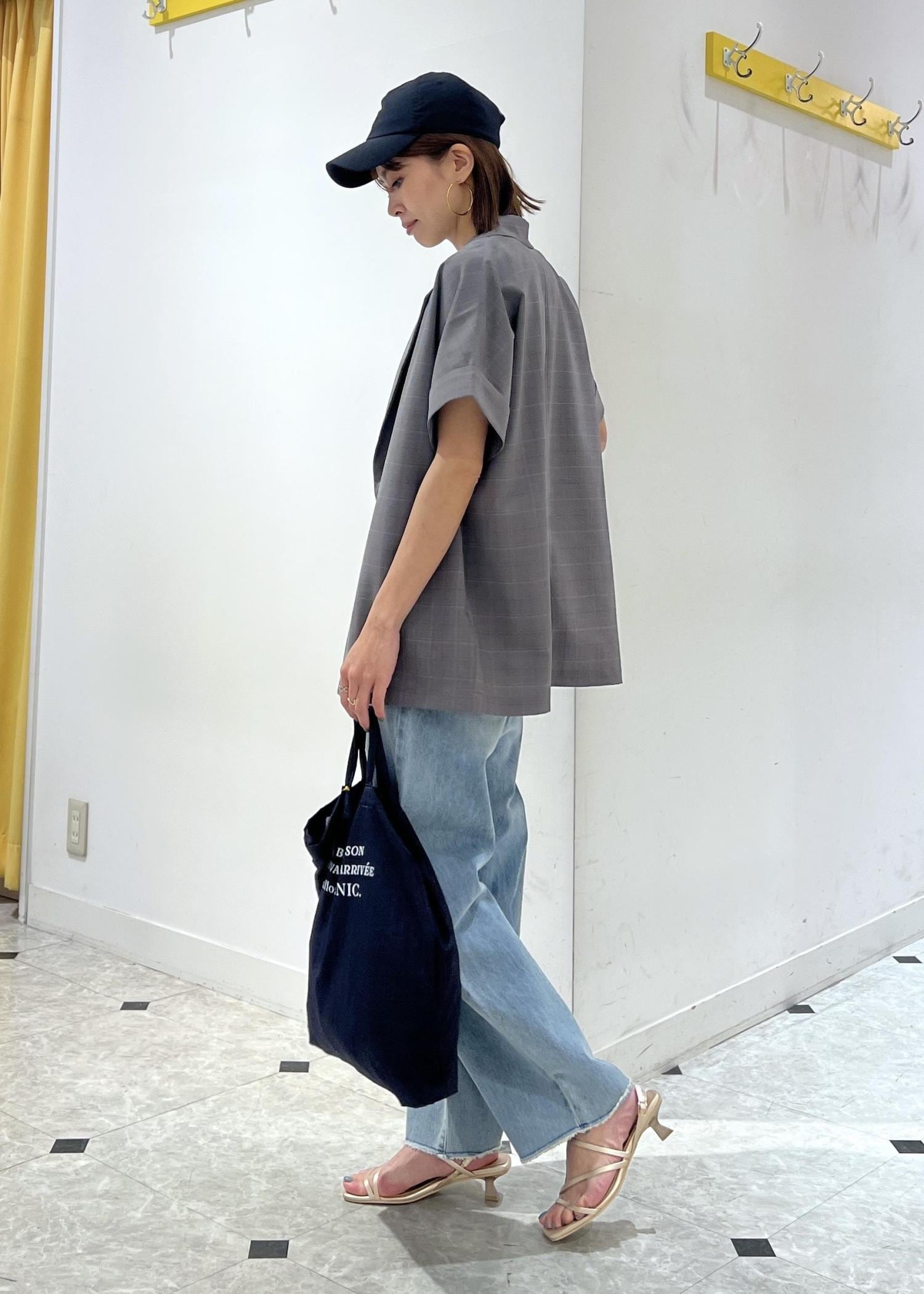 タンクトップに羽織ってハンサムな雰囲気のデニムコーデにしました。