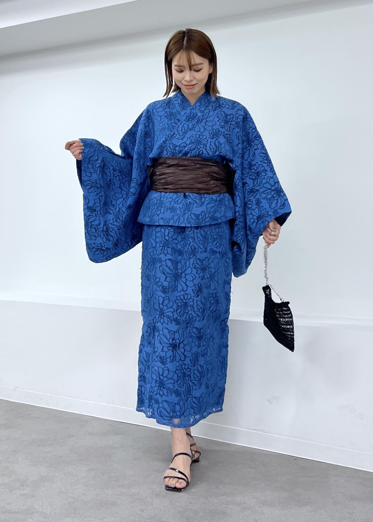 ROPÉ PICNIC【emur/エミュール】1人で着られる浴衣キャミワンピースセットブルー / 38¥16,500レビューワンピースと羽織り、帯がセットになっていて1人で着つけられるデザイン。
