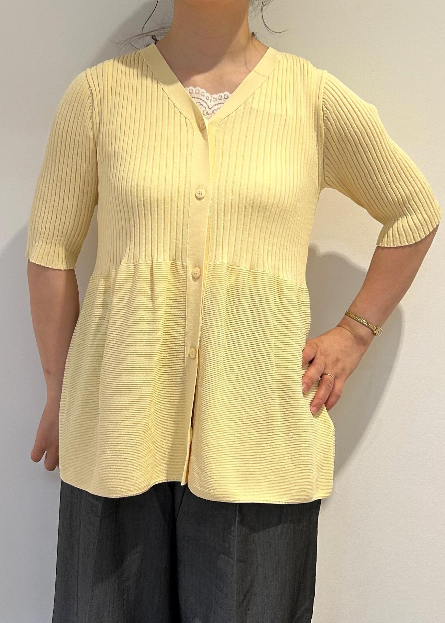 柔らかなイエローカラーは、コーディネートに取り入れやすく、夏にもぴったりのお色です。