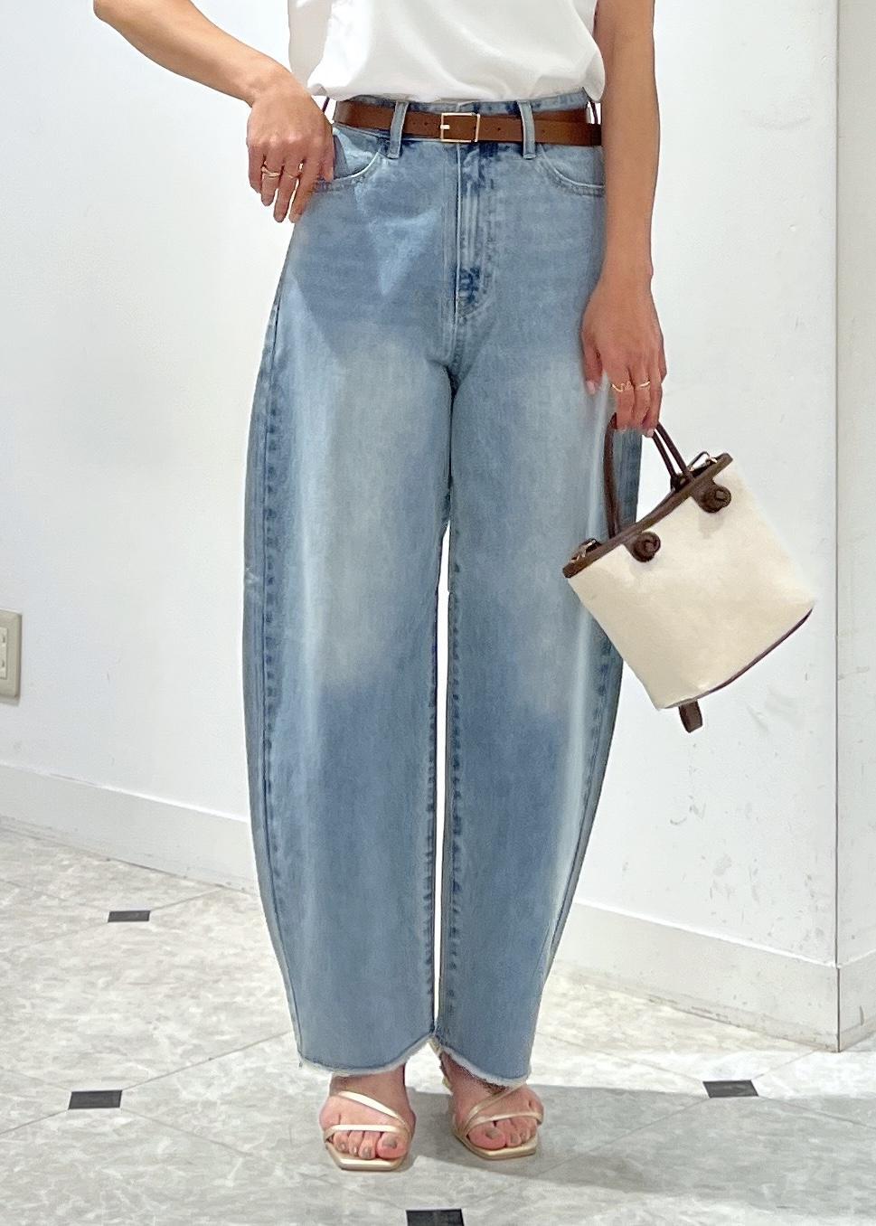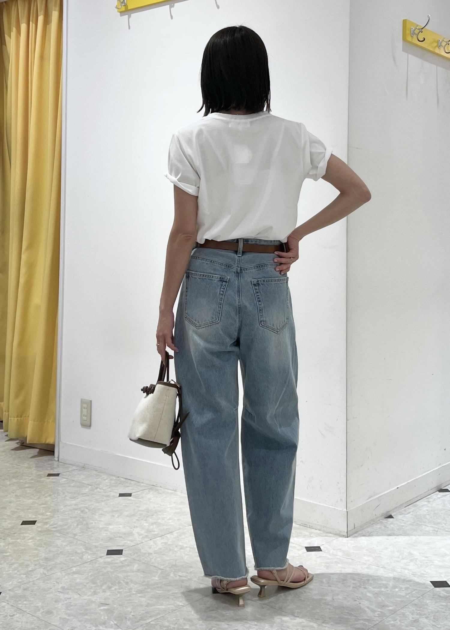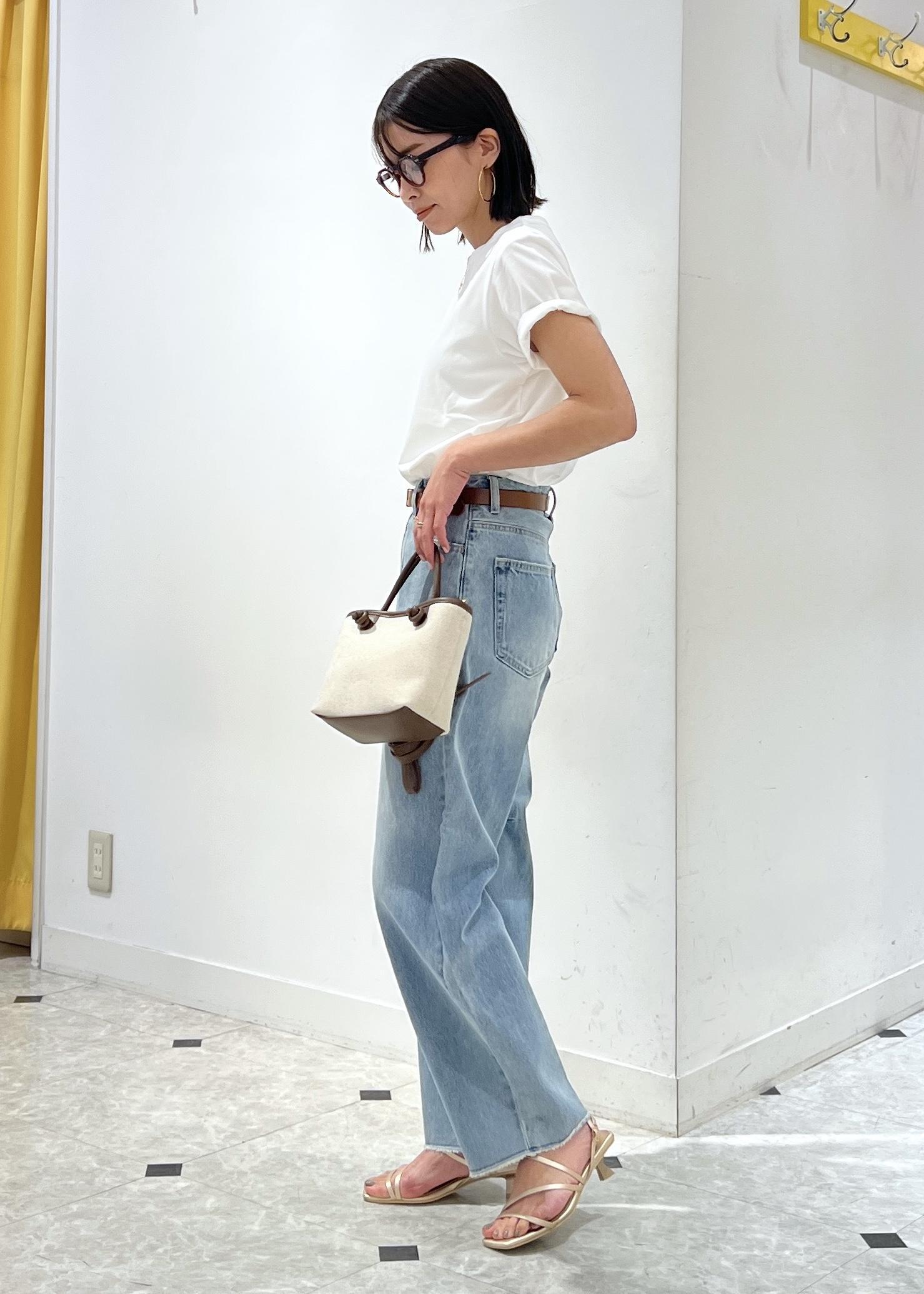 袖を少し折り返す着こなしもワンポイントに。カーヴィーデニム合わせでトレンド感のあるスタイリングにしました。