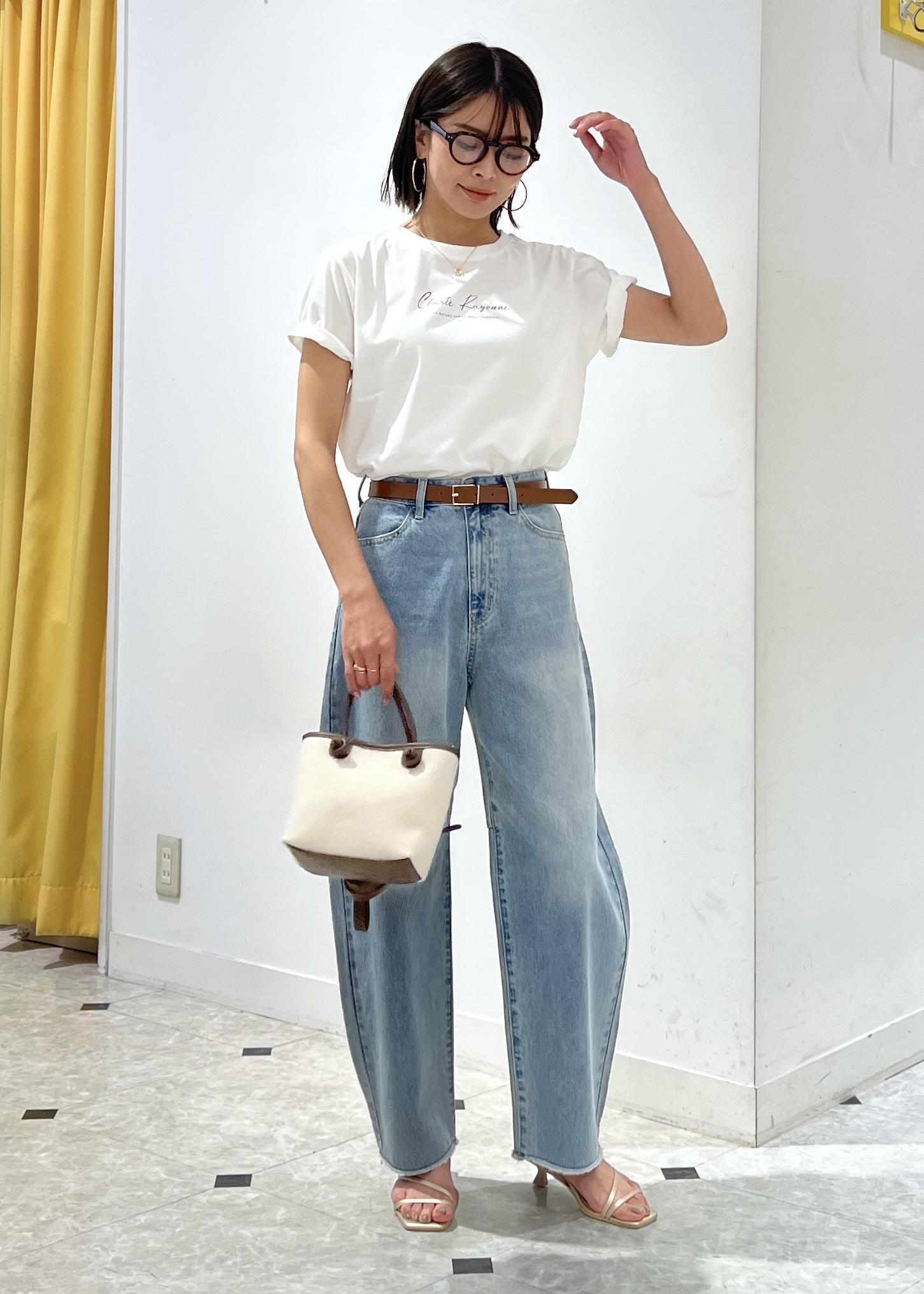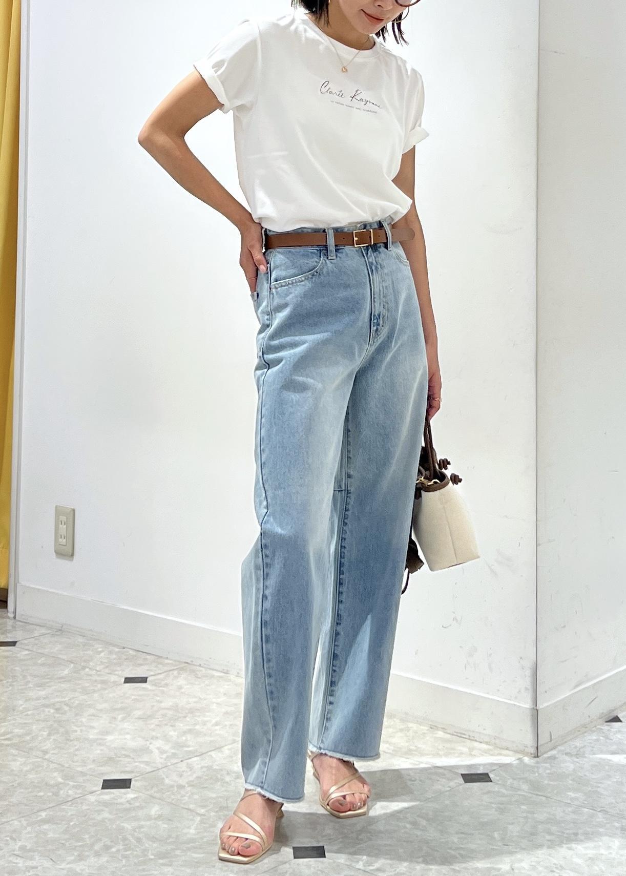 筆記体ロゴのTシャツは、大人カジュアルなスタイリングにおすすめ。