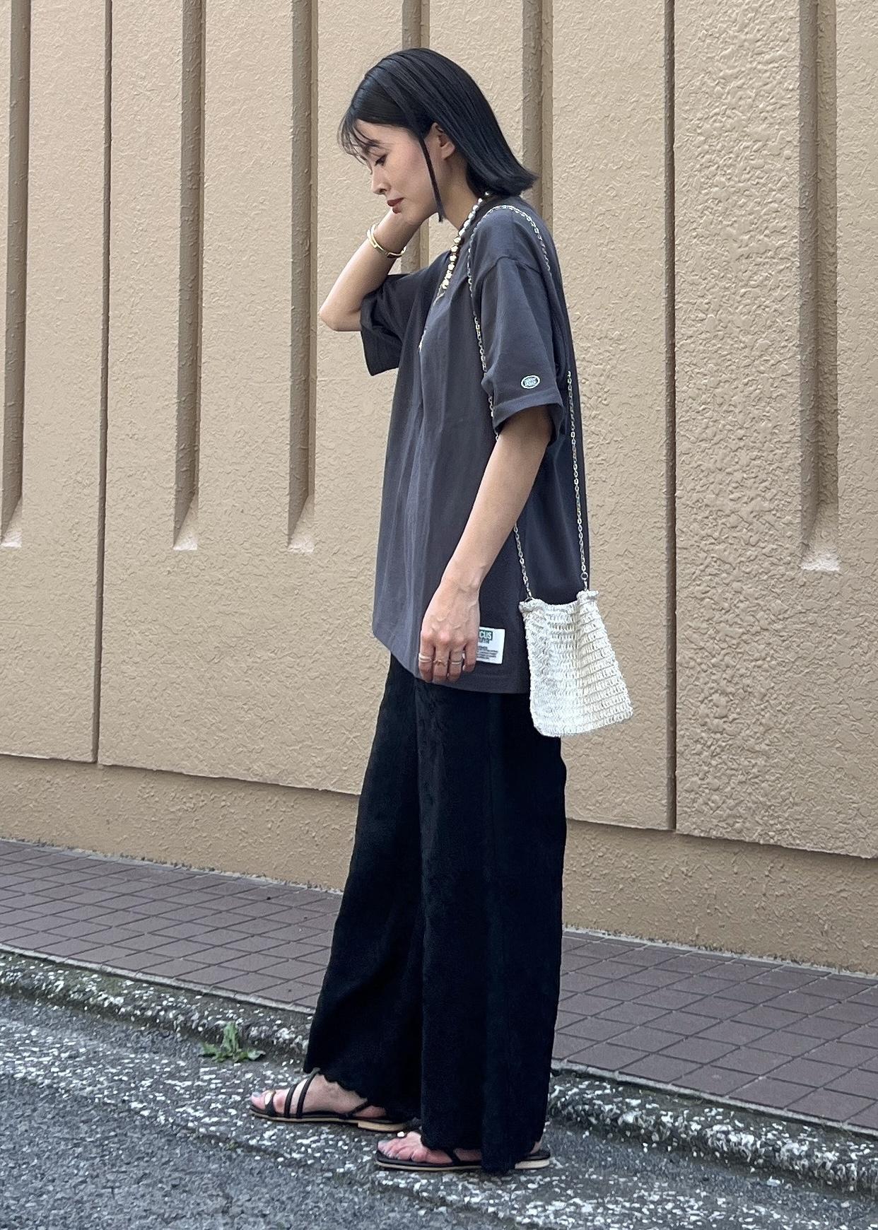 レースパンツでリラックス感のあるスタイリングですが、キラキラ感のあるアクセサリーを合わせてお出かけスタイルにしました。