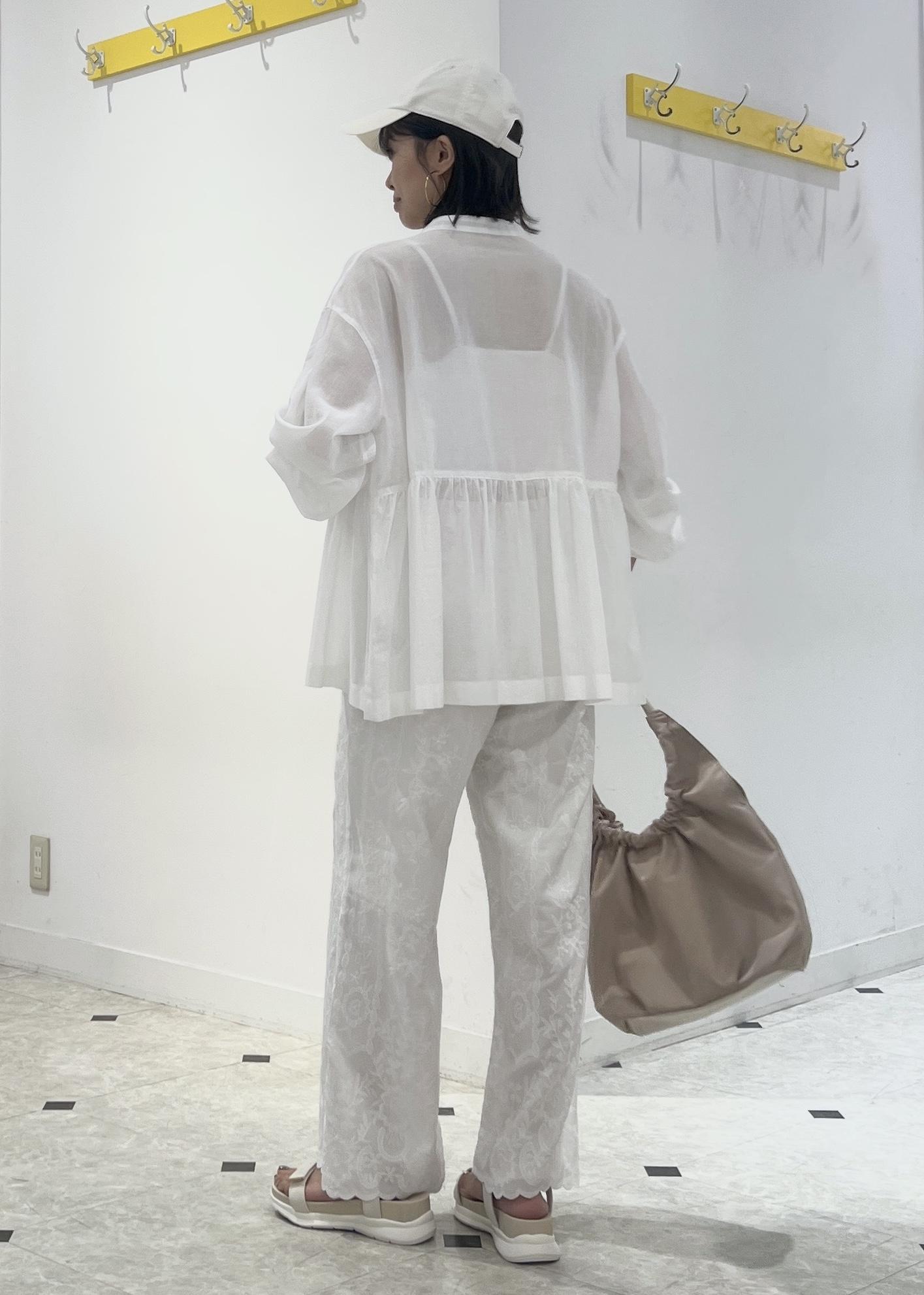 全体的にやや透け感のある生地で、春夏コーデにぴったりです。