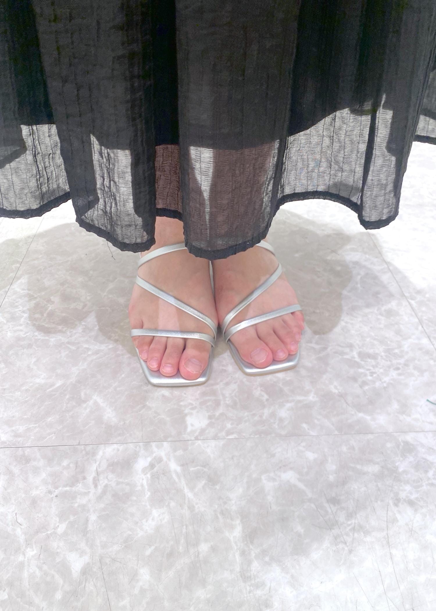 ROPÉ PICNIC PASSAGEナローストラップキトゥンヒールサンダルシルバー / L¥5,489レビュースクエア型で足幅が広い方でも履きやすいです。