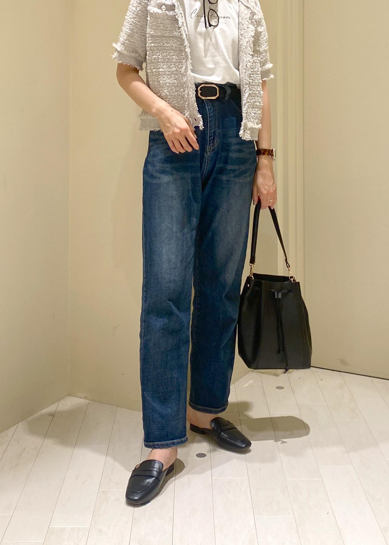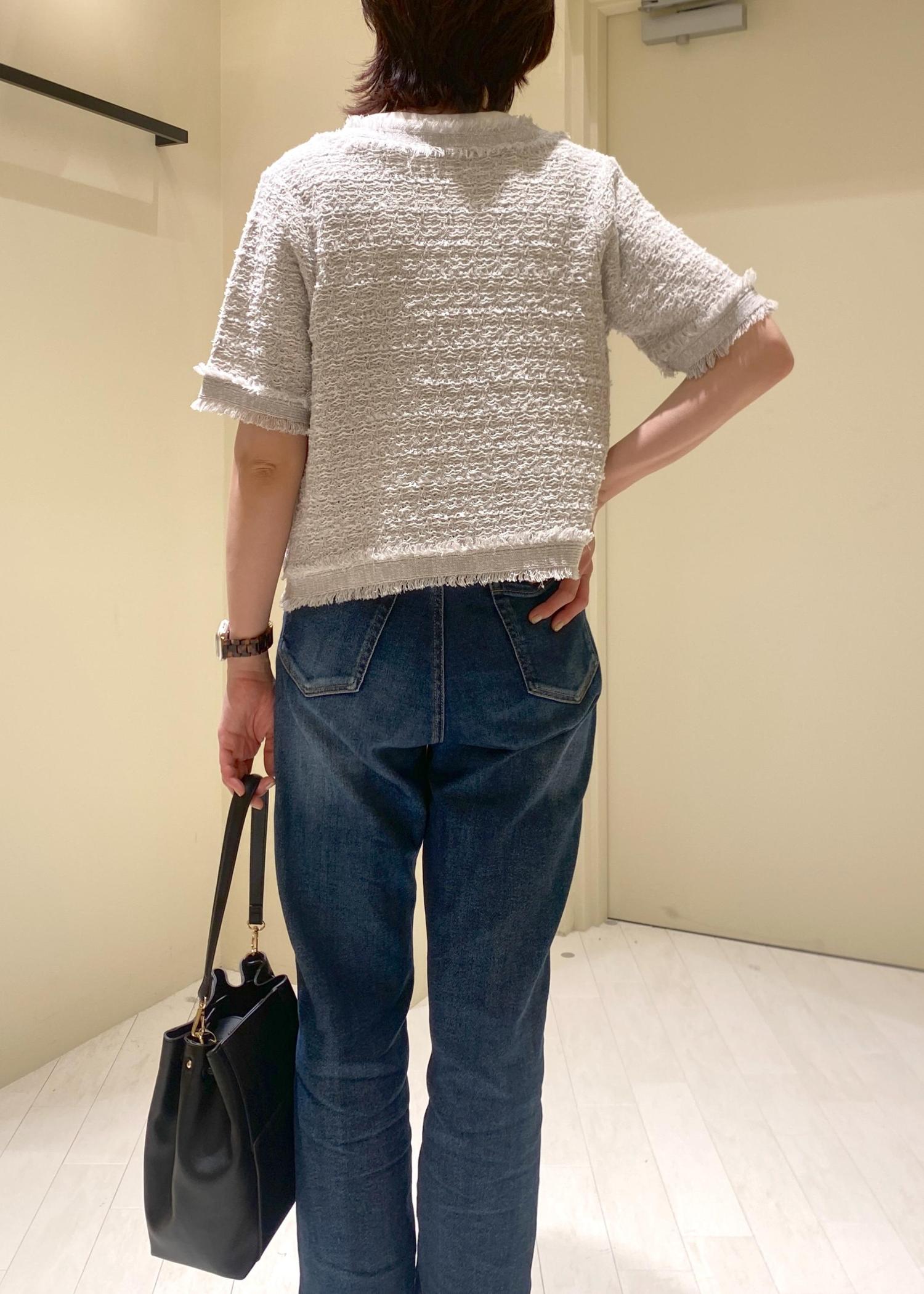ツィードが上品な印象で、大人のキレイ目カジュアルコーデに。