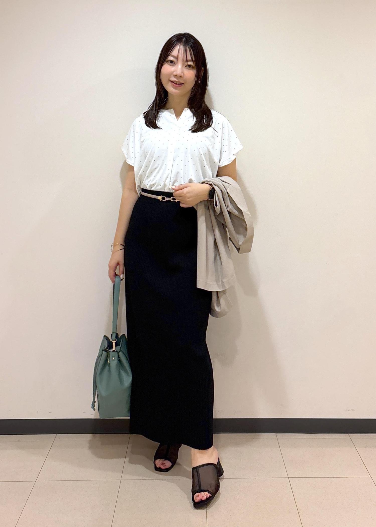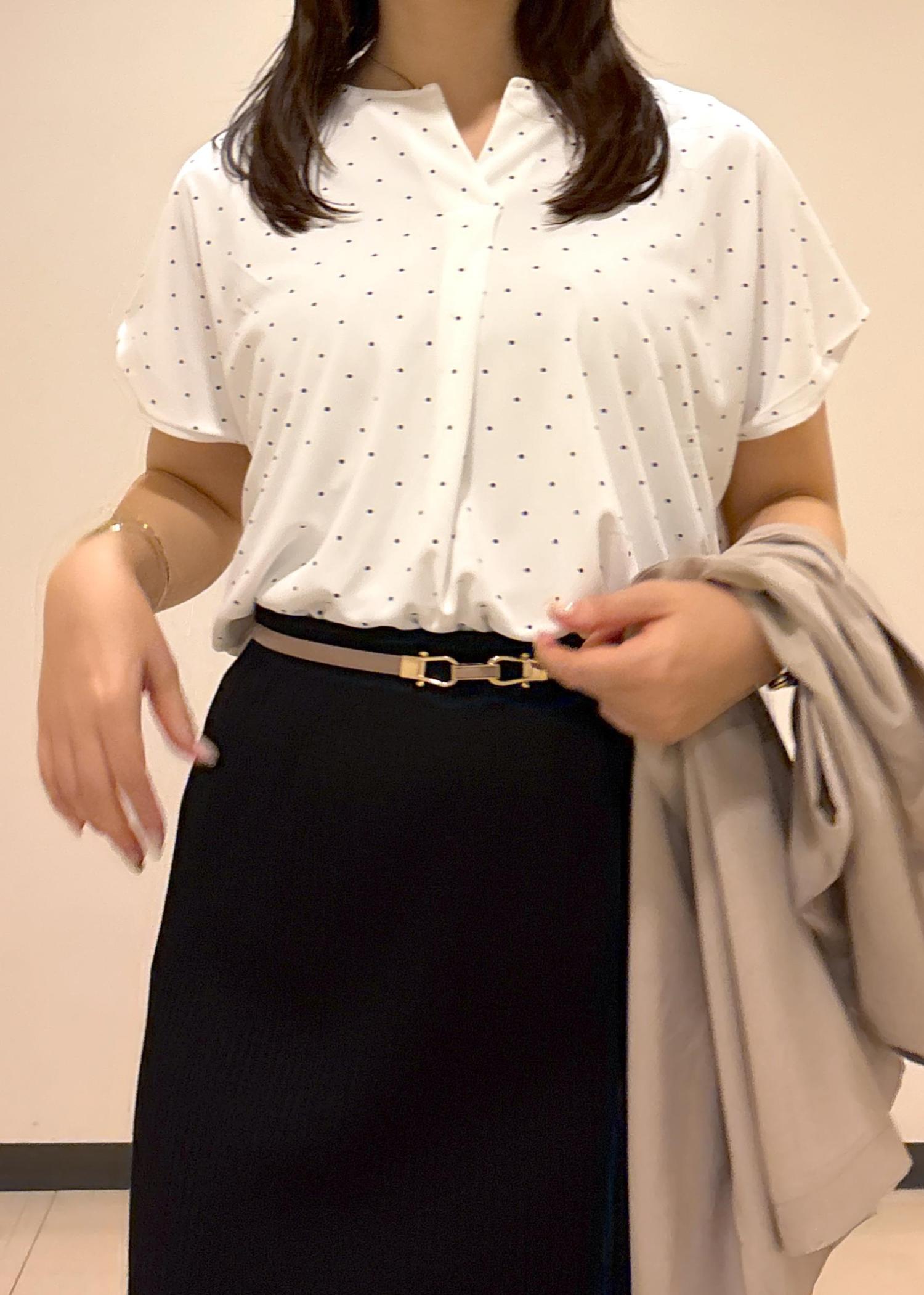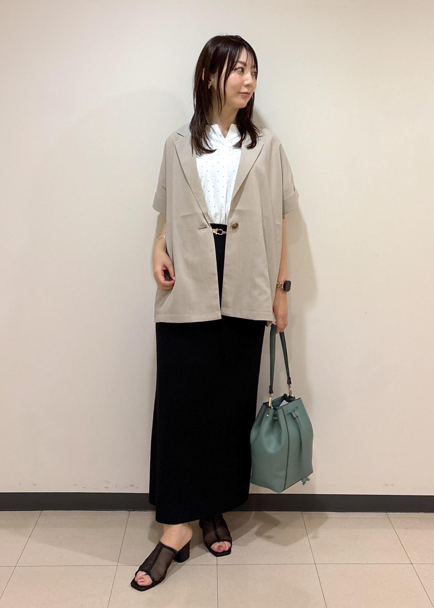 骨格ウェーブで下重心になりがちなので高めの位置でウエストマークしてスタイルアップ。