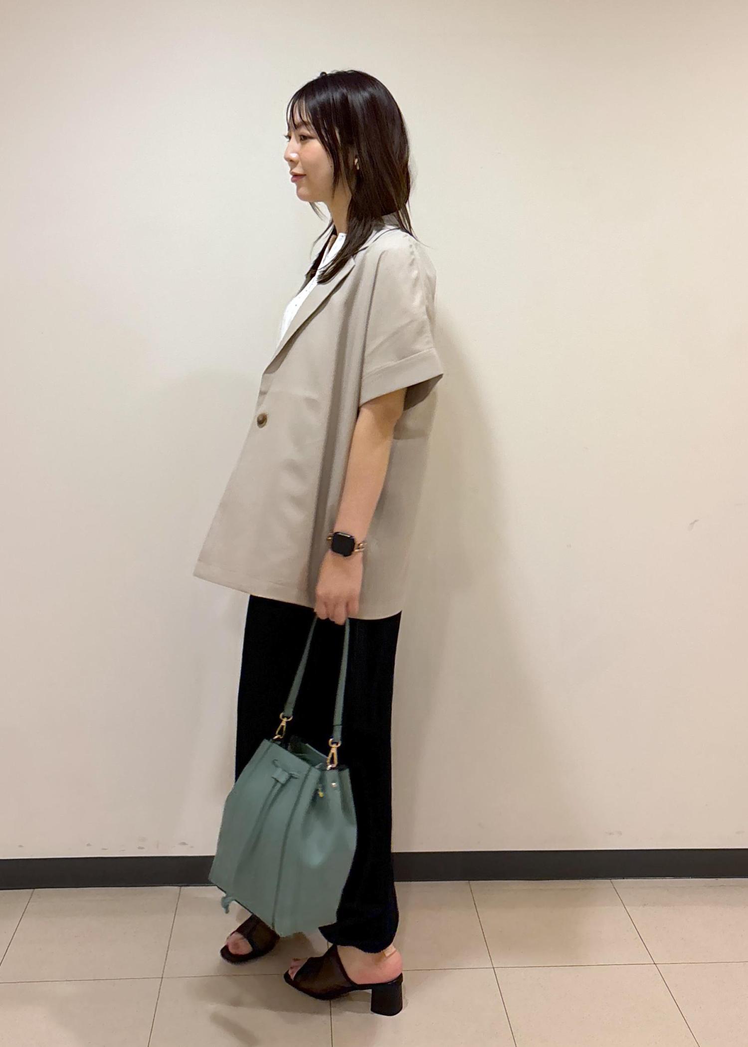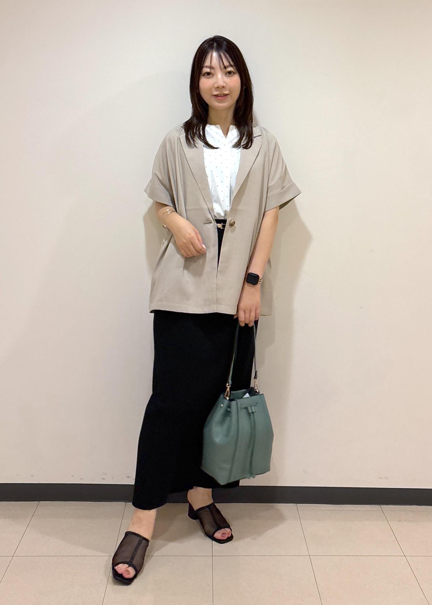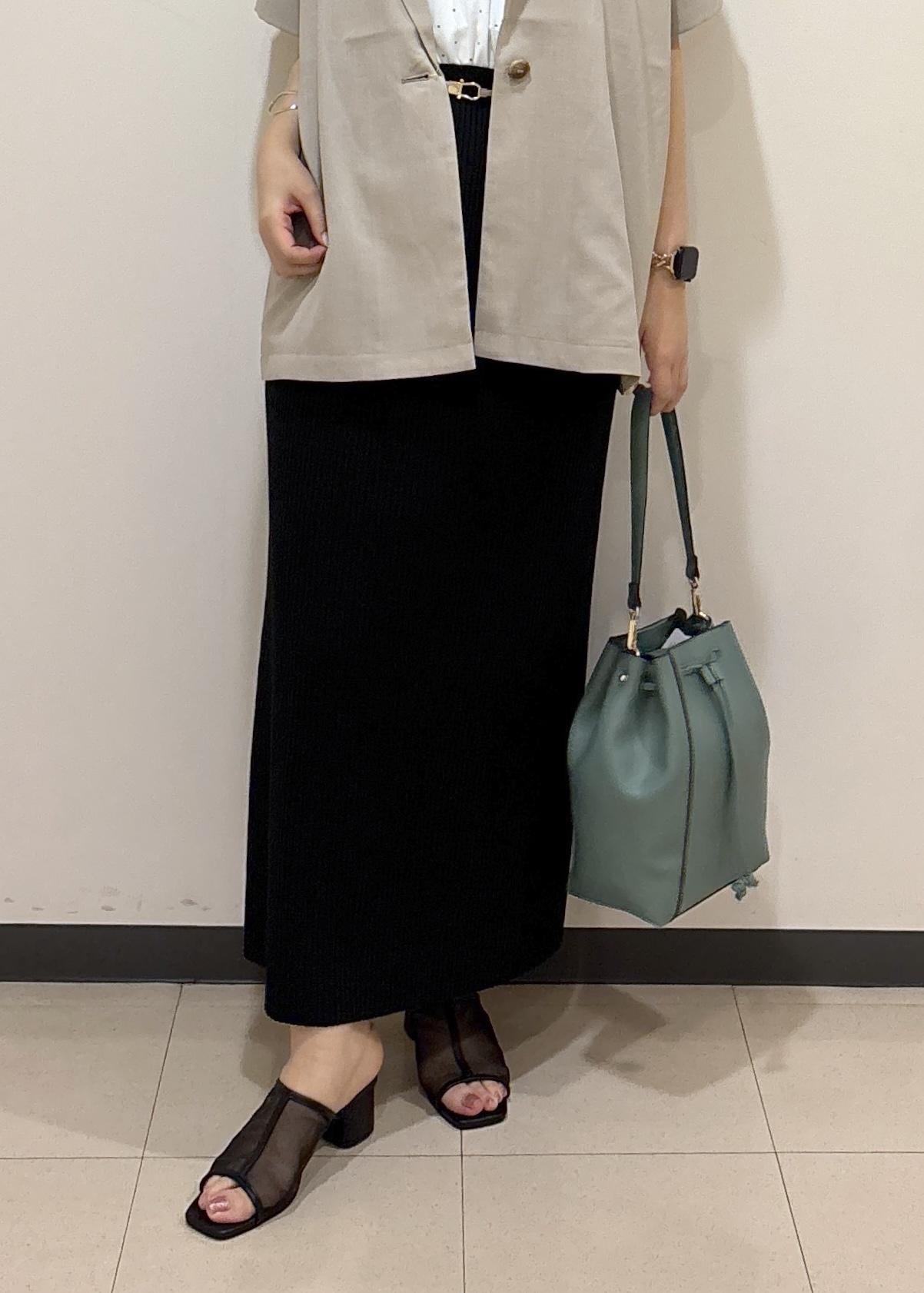 骨格ウェーブで下重心になりがちなので高めの位置でウエストマークしてスタイルアップ。