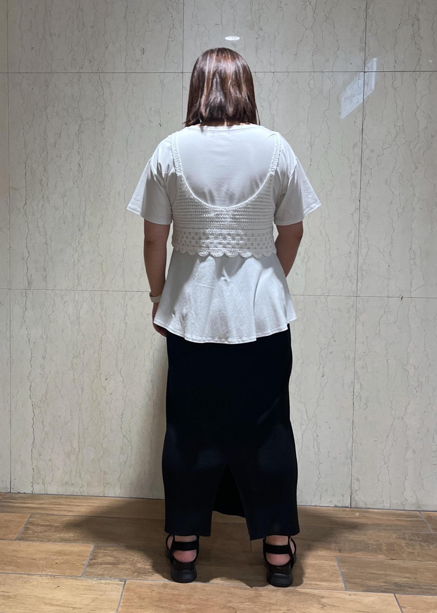 クロシェニットがかわいいビスチェです。