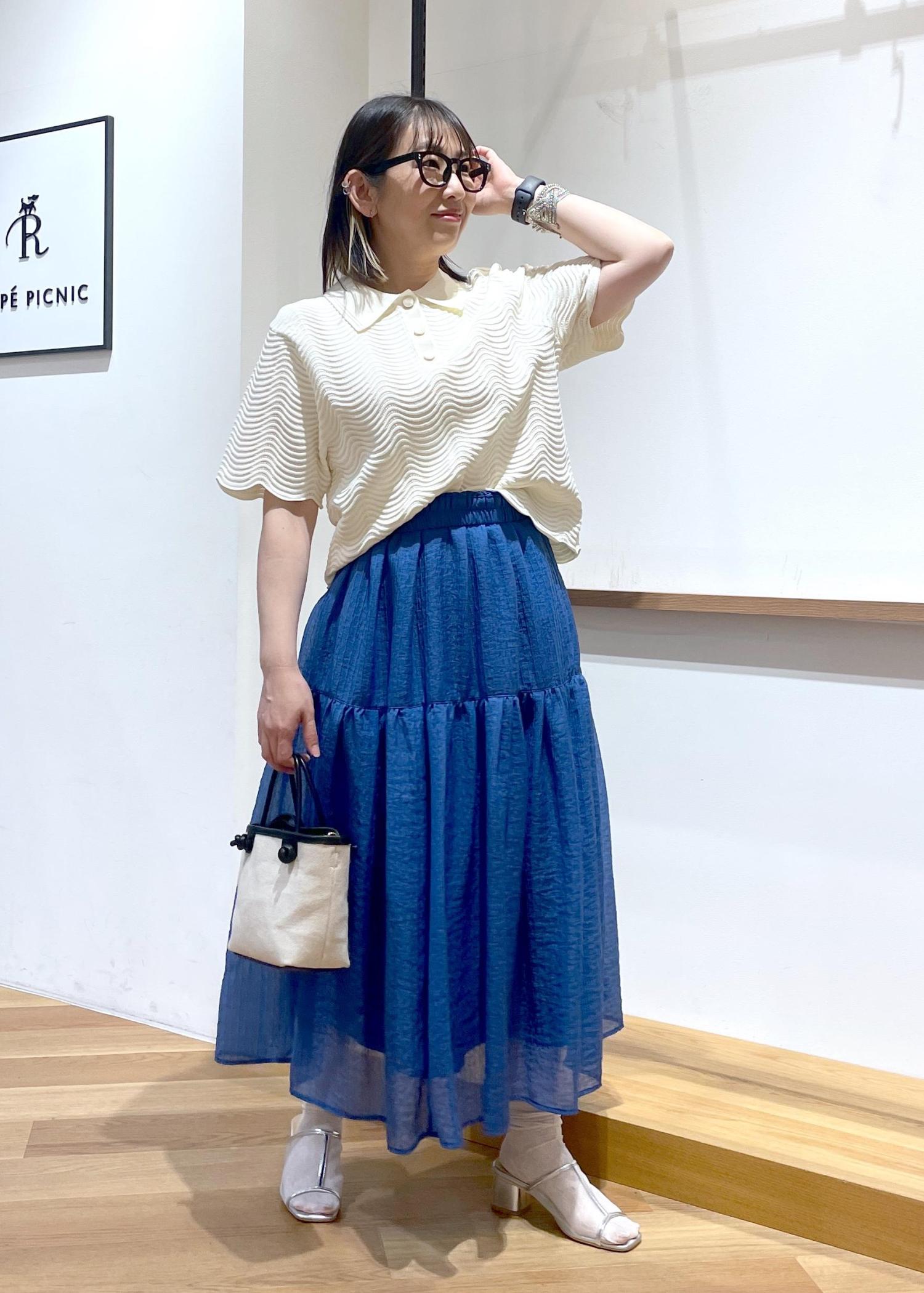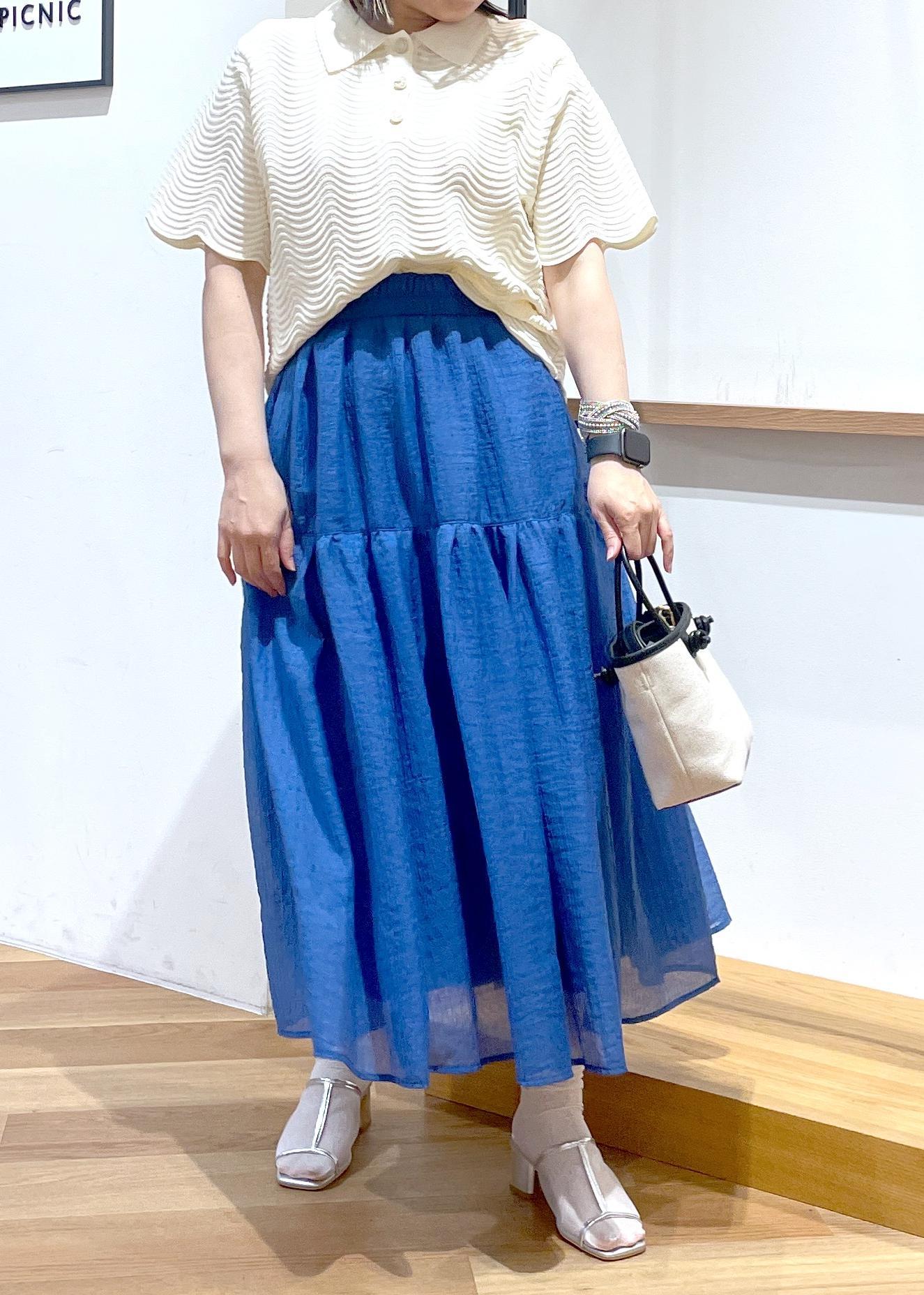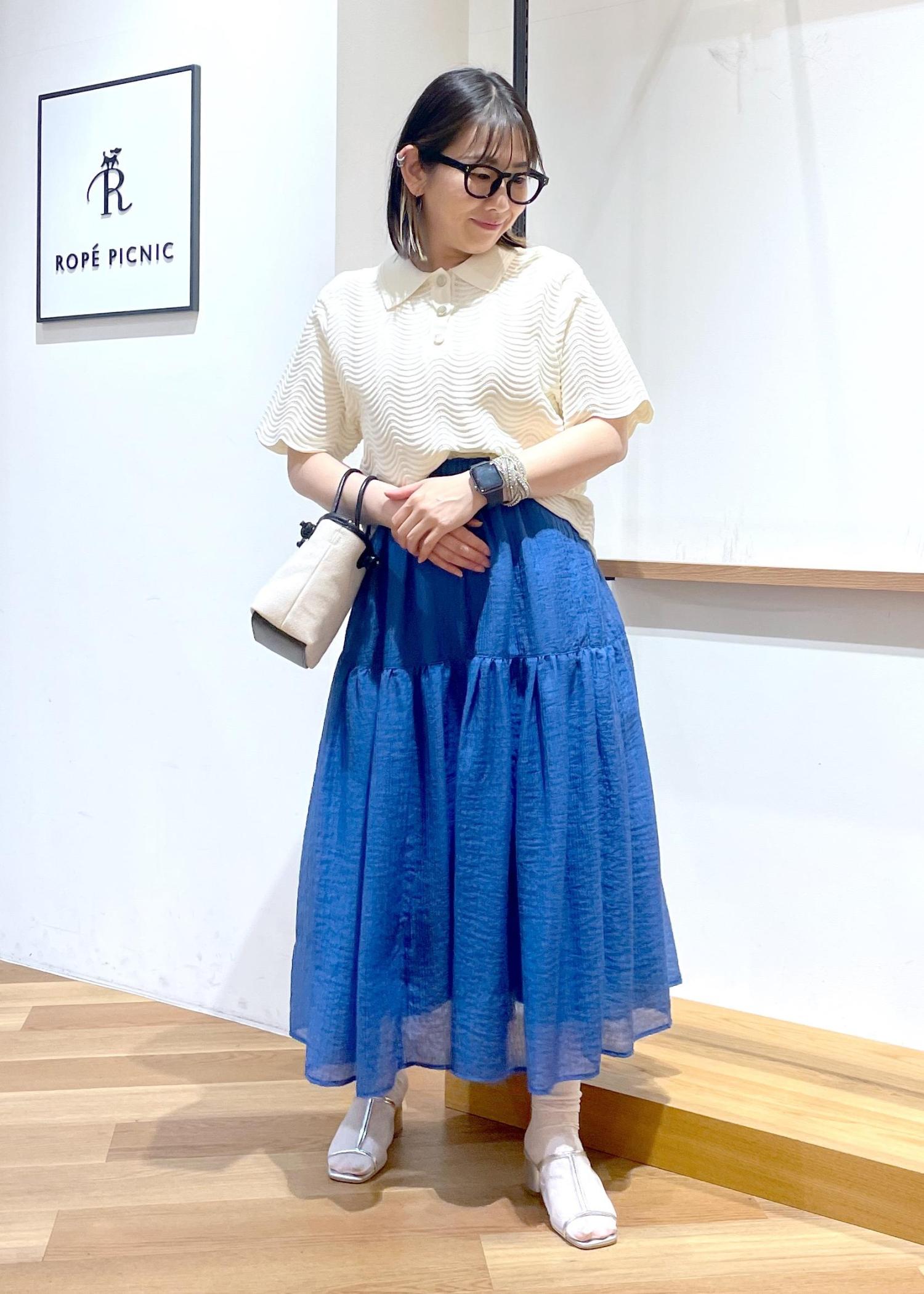 ROPÉ PICNICシアーティアードスカートブルー / 38¥5,995レビュー透け感のあるシアー素材のティアードスカートです。ふんわり軽い着心地です○