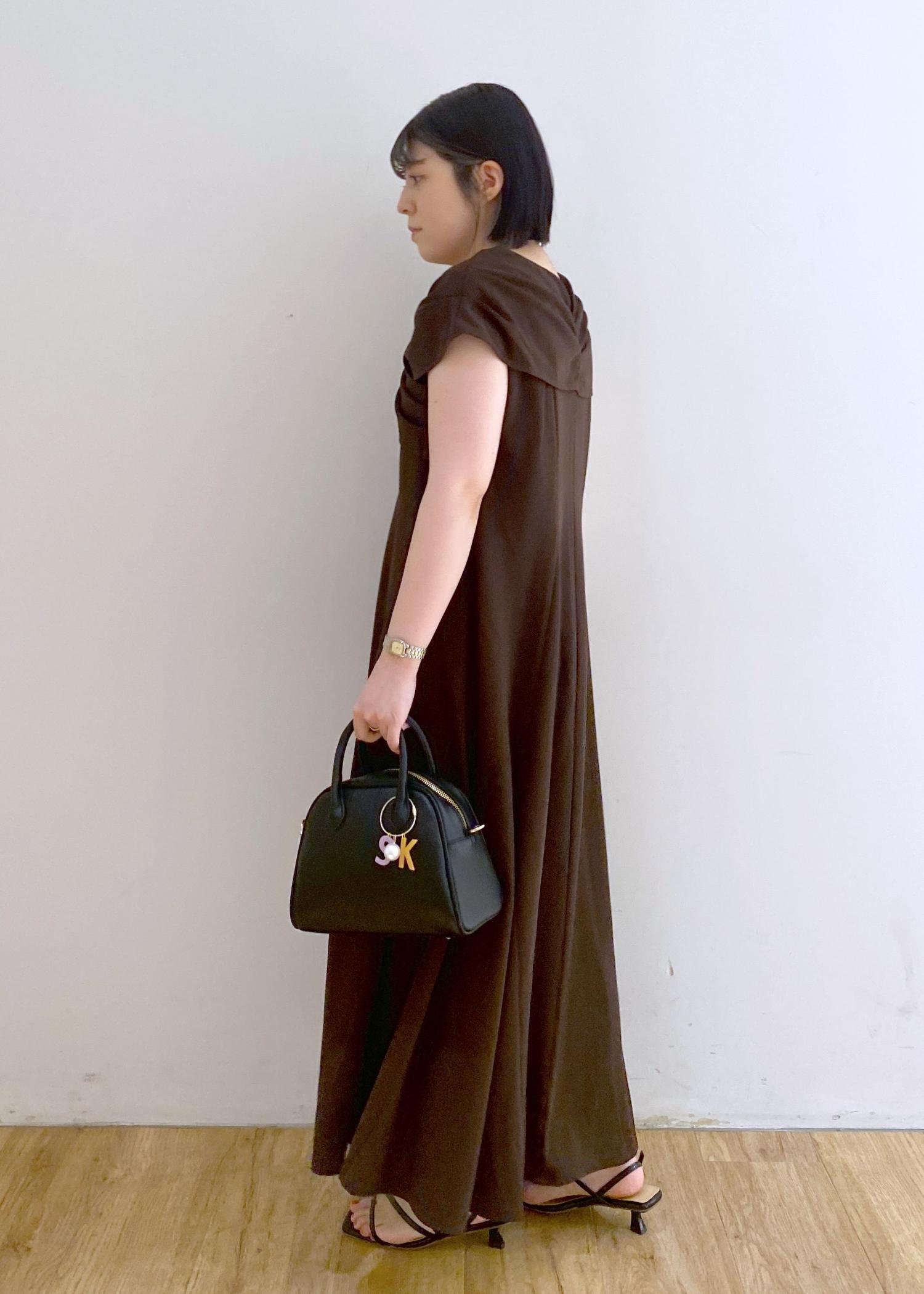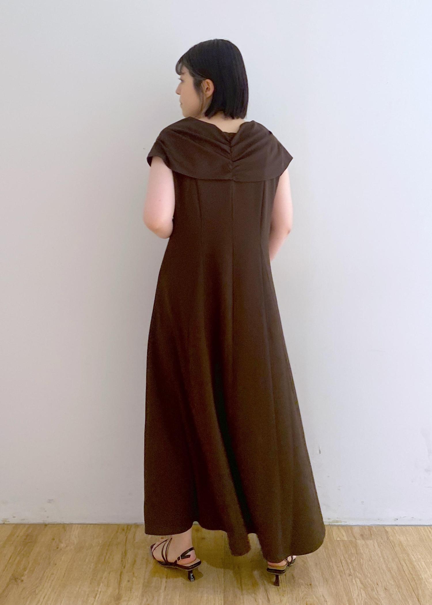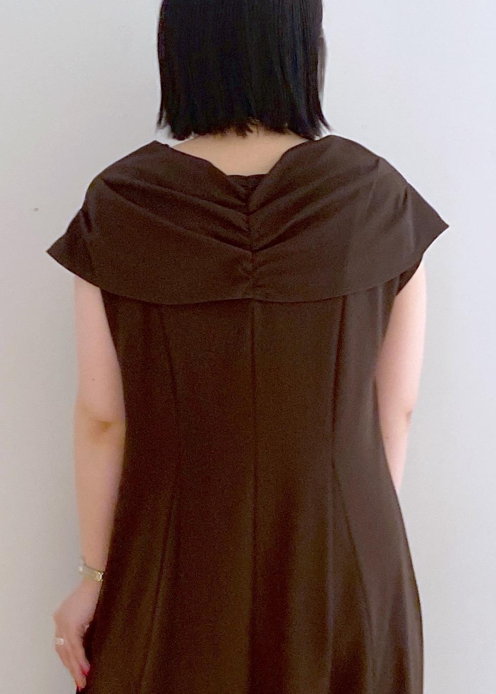 ROPÉ PICNIC【emur/エミュール】ドレープデザインワンピースダークブラウン / 38¥9,900レビュー156cmで足首にかかるややロング丈。素材は伸縮性がありスッキリ見えますが締め付けはない着心地です。二の腕も少し隠れるドレープデザインなので骨ストさんでも気にならず着用できそうです◎