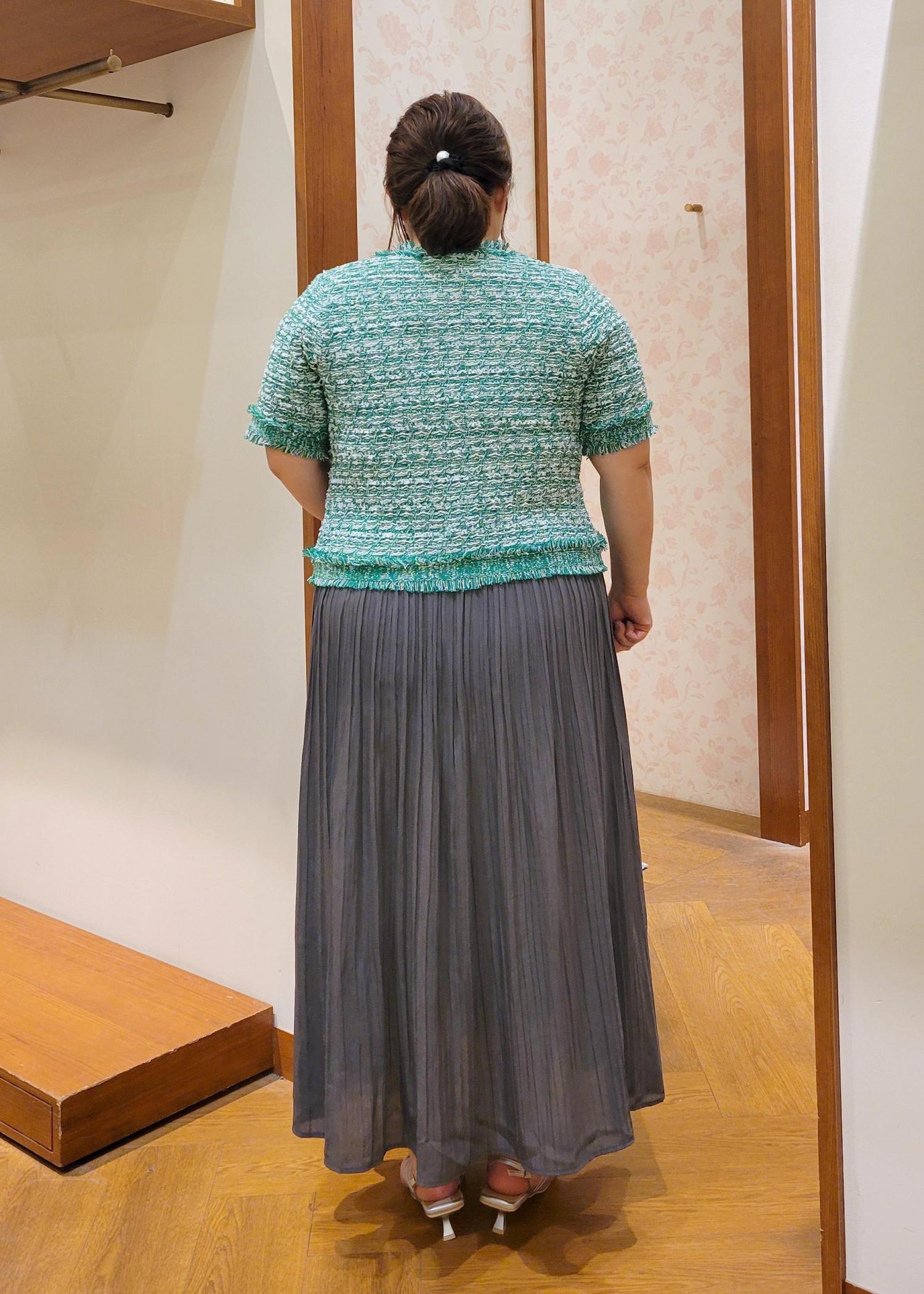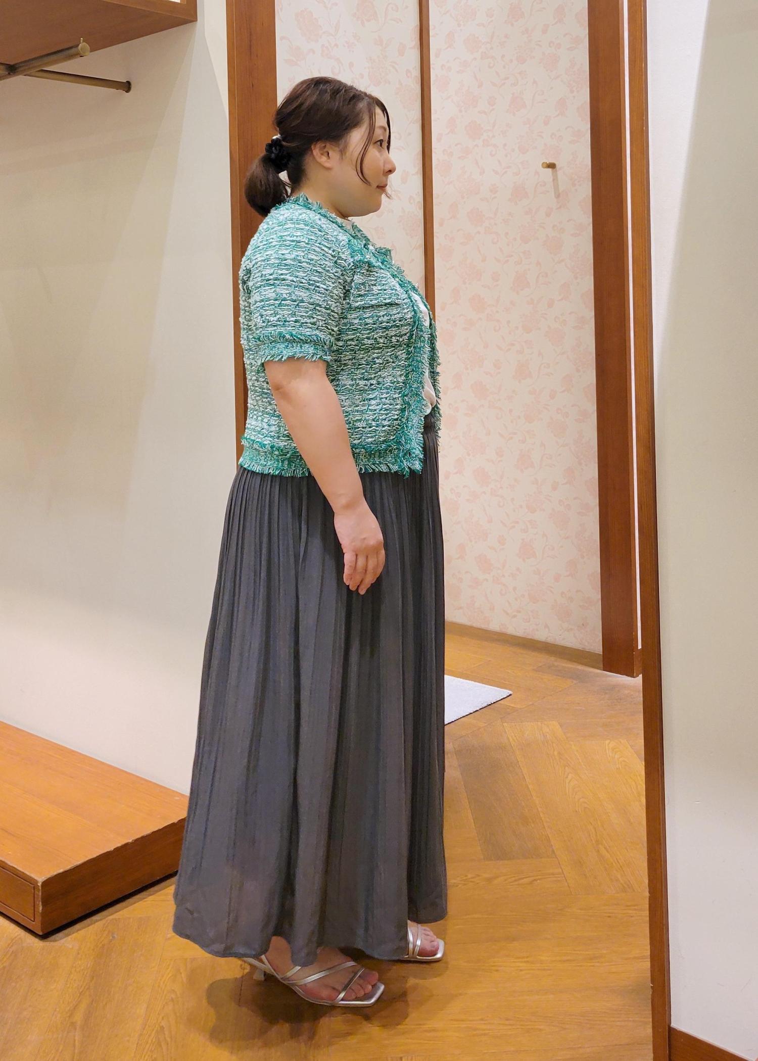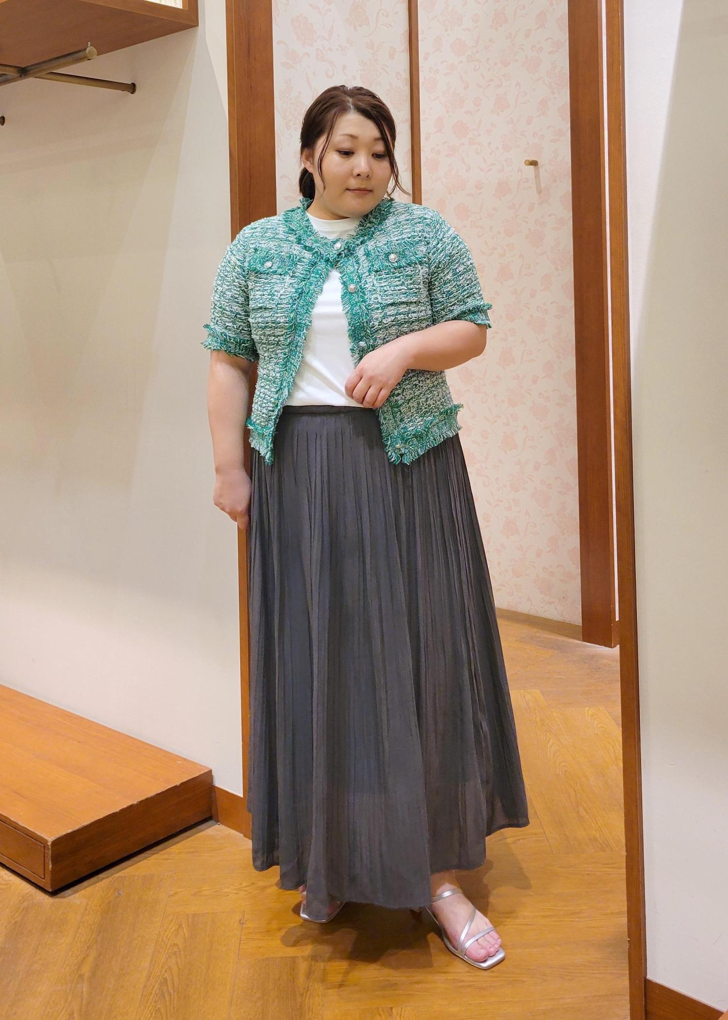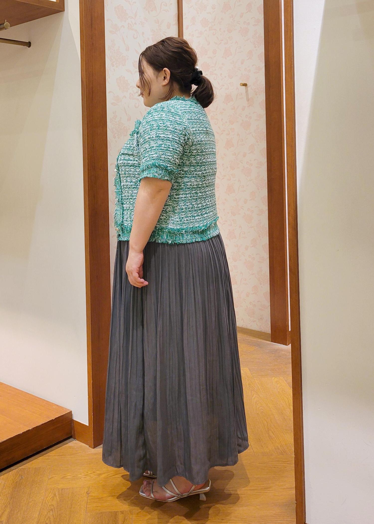 ROPÉ PICNIC【サマー・ツイード】ハーフスリーブカーディガングリーン / 38¥5,489レビューボタンをとめるときついと感じたので一番上のボタンだけ締めて着てみました。柔らかく、ハーフスリーブなのだ夏にぴったりのカーディガンです。