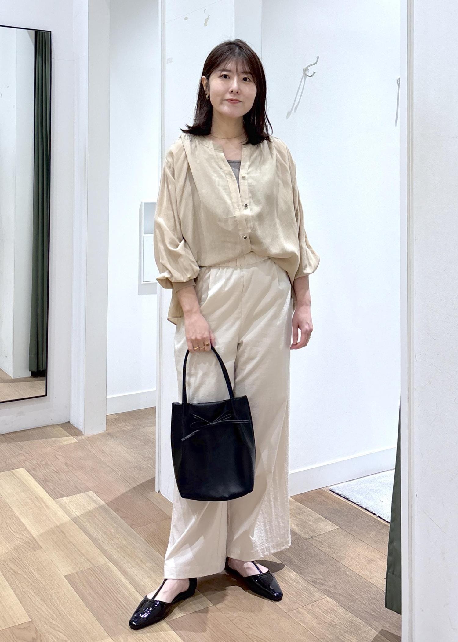 少しつやっとした素材なので、綺麗めにも合わせやすいです。 -