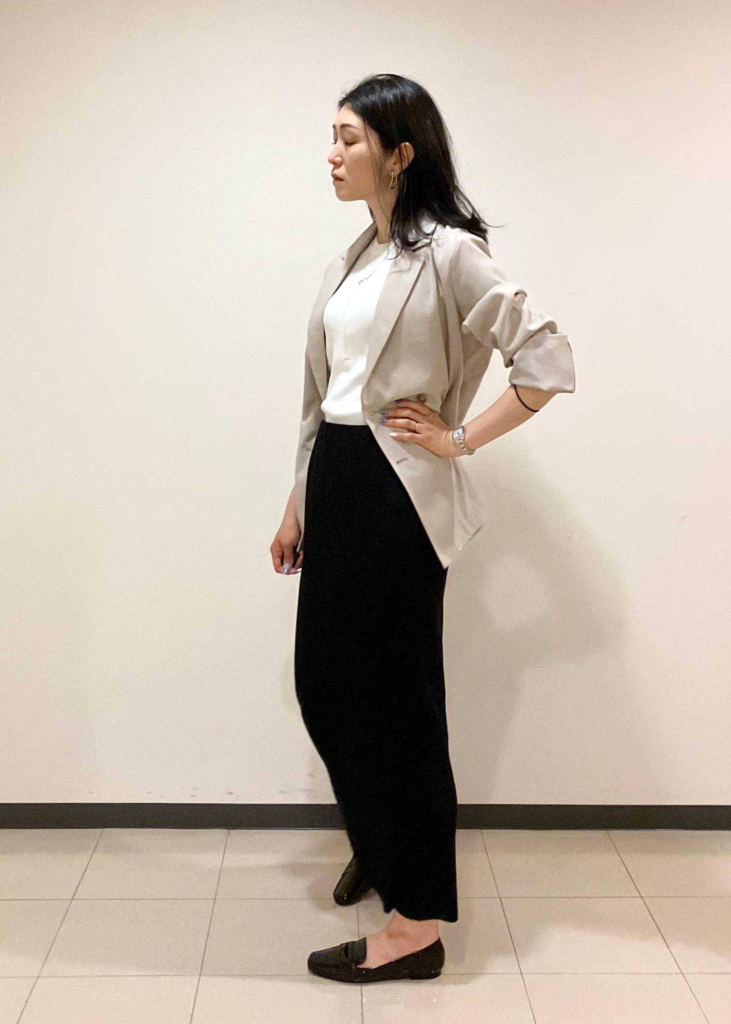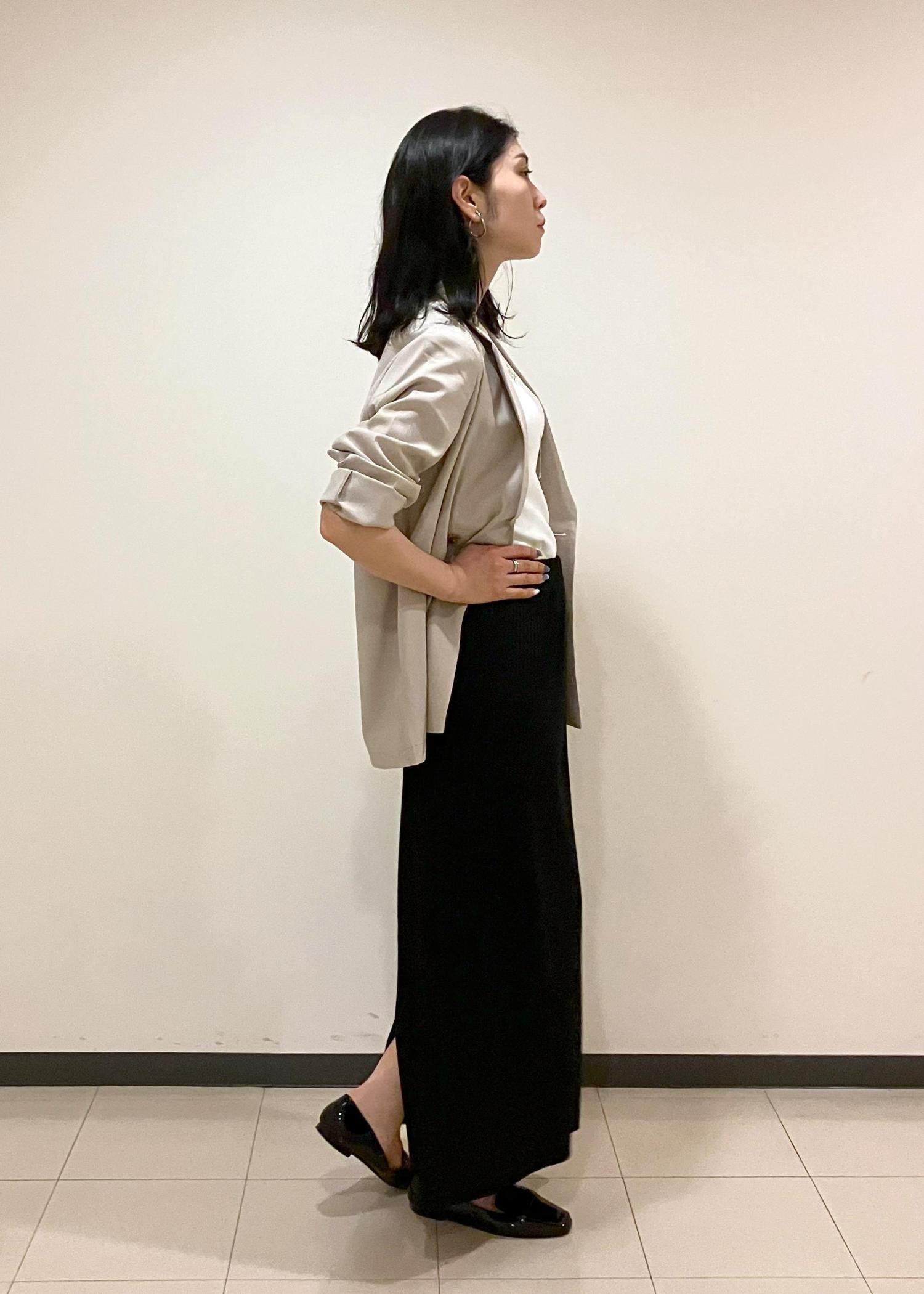 ジャケットとタイトスカートでオフィスカジュアルにオススメです。