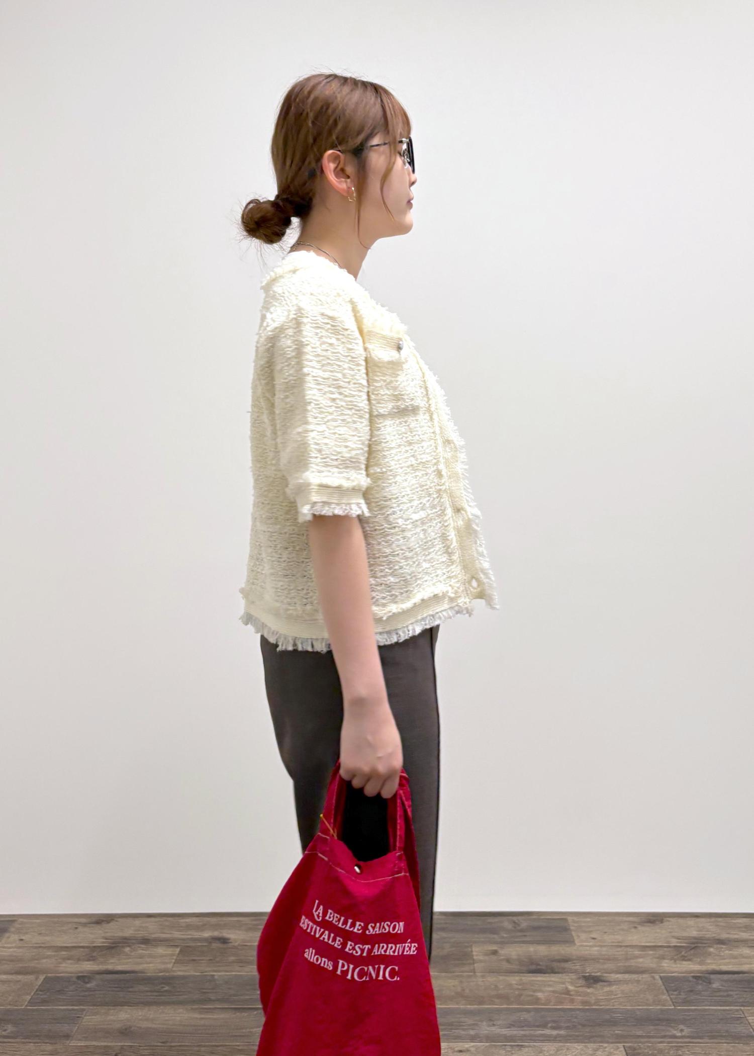 ROPÉ PICNIC【サマー・ツイード】ハーフスリーブカーディガンキナリ / 38¥5,489レビュー肘上まであるハーフスリーブツイードカーディガンです。