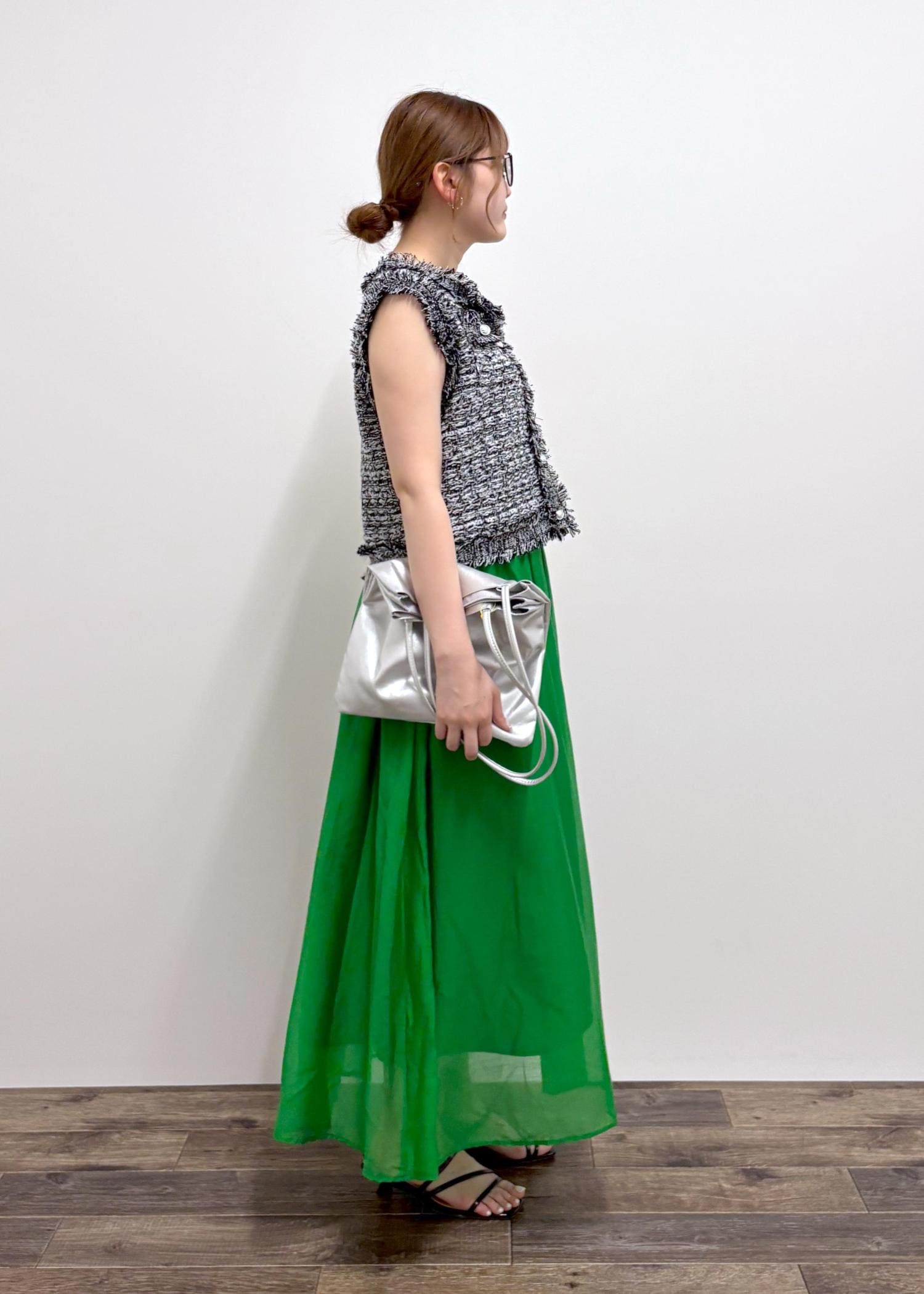 ROPÉ PICNICエアリーシアーギャザーロングスカートグリーン / 38¥6,490レビュー微光沢感あるしなやかなスカートです。