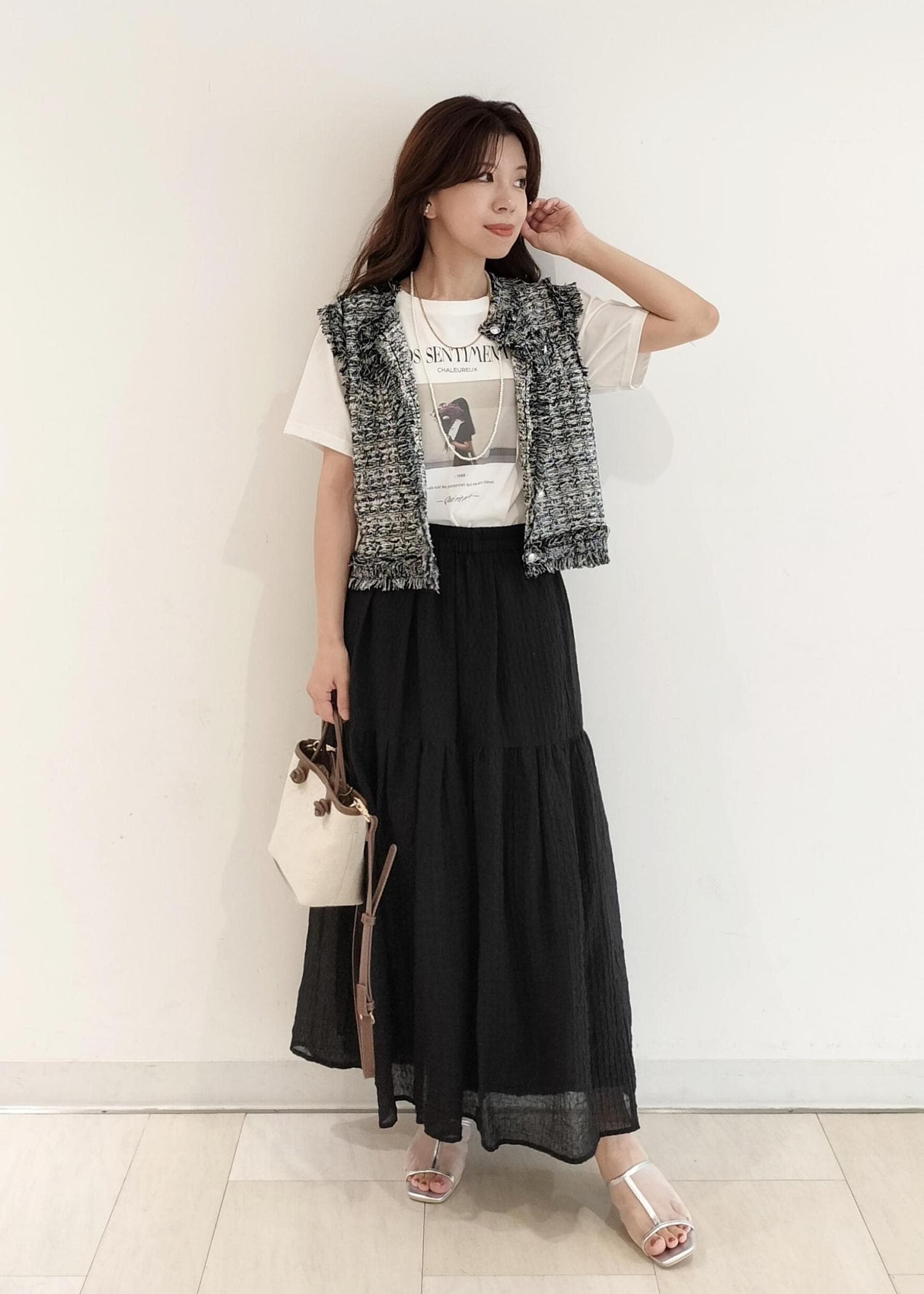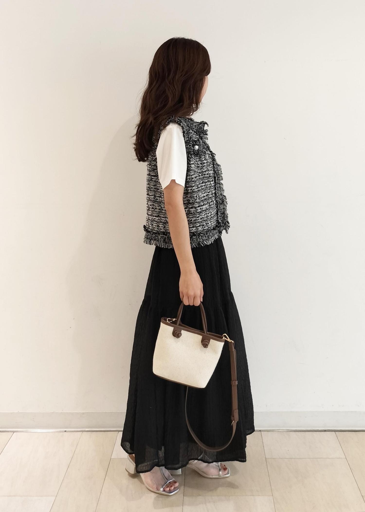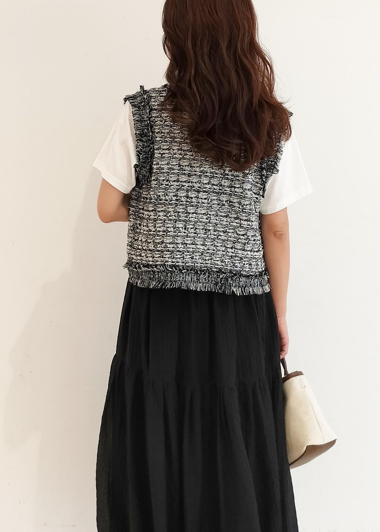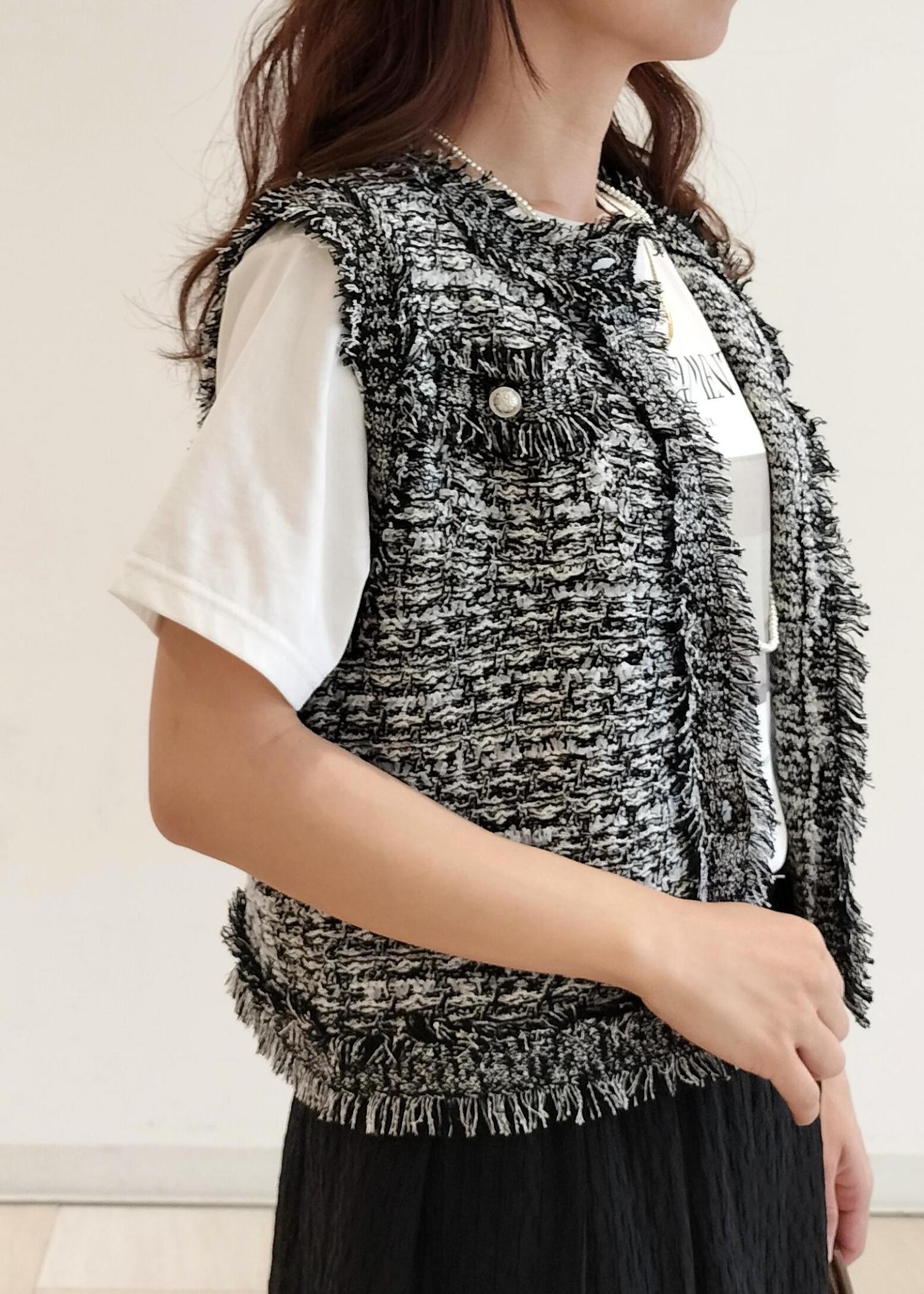 【WEB限定カラー】【サマー・ツイード】着丈が選べるジレベスト/スリーブレスカーディガン