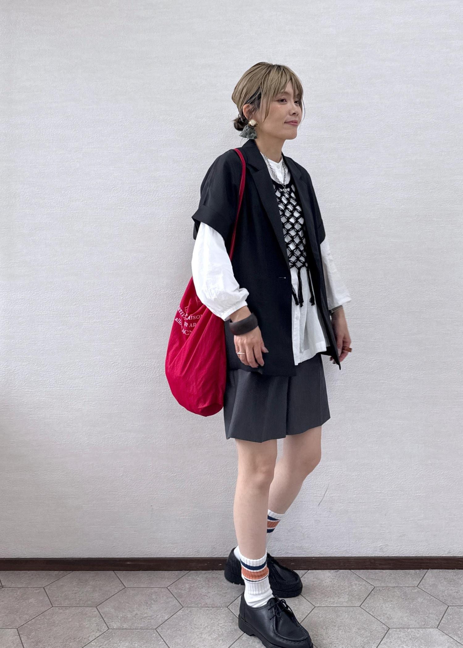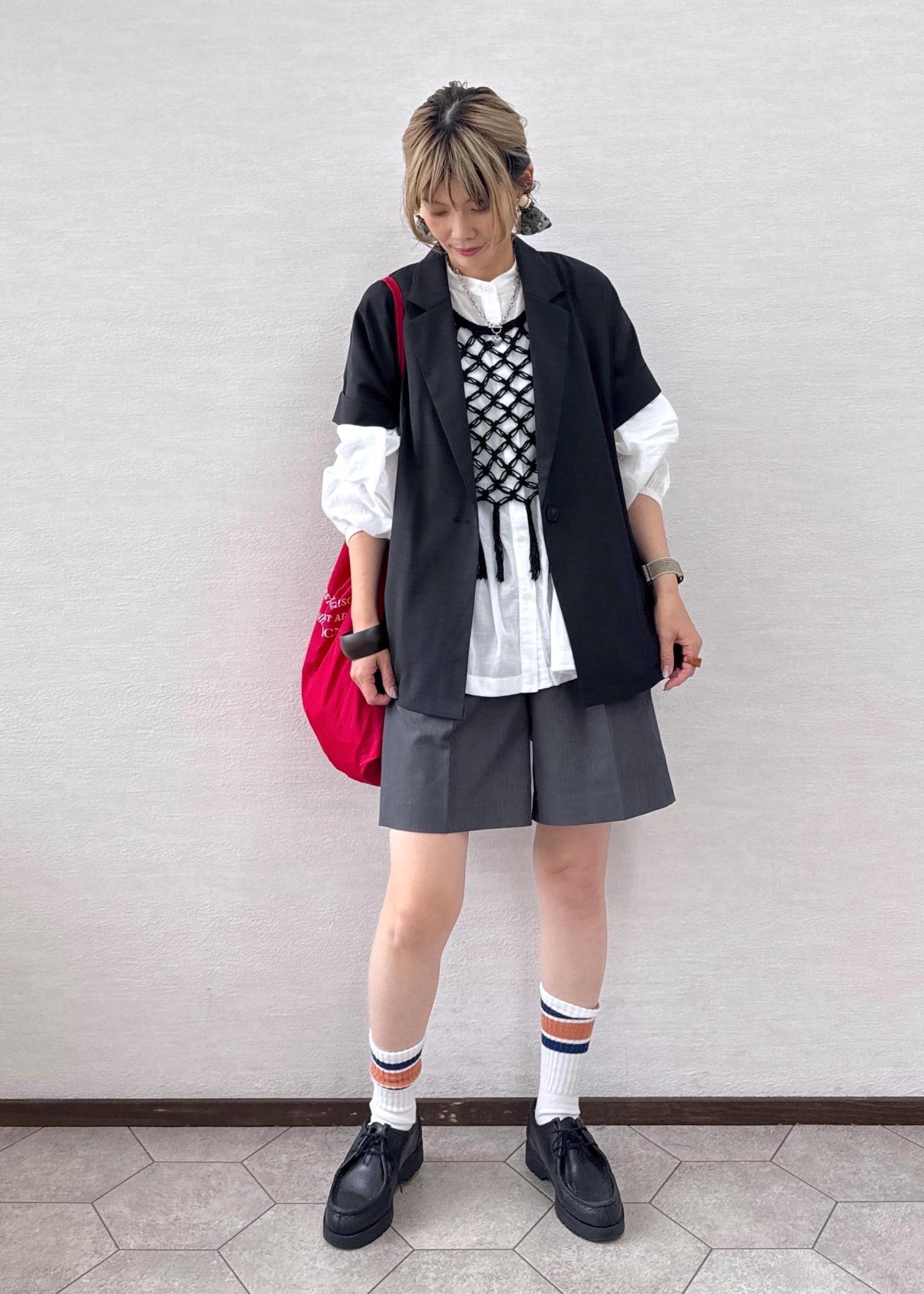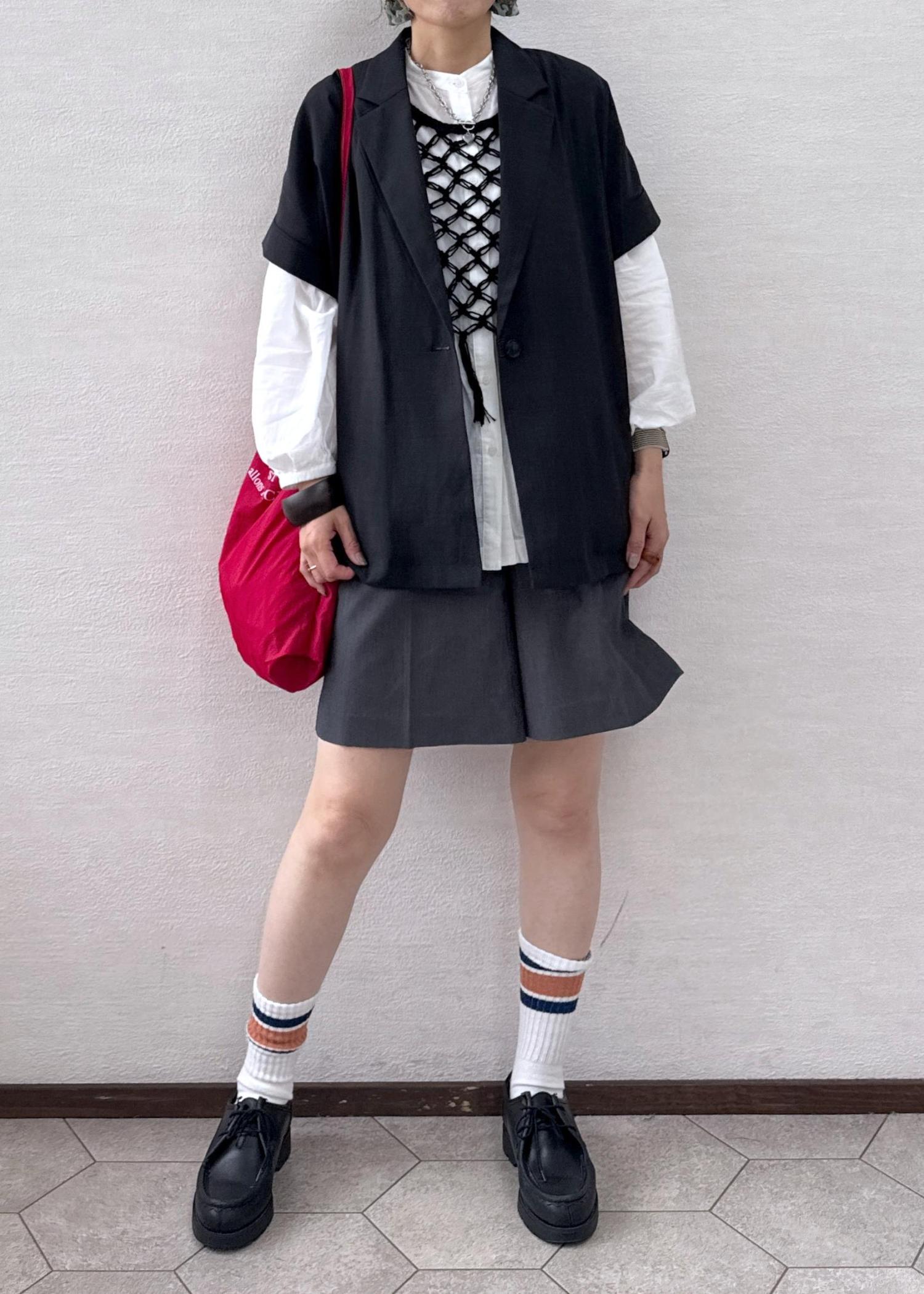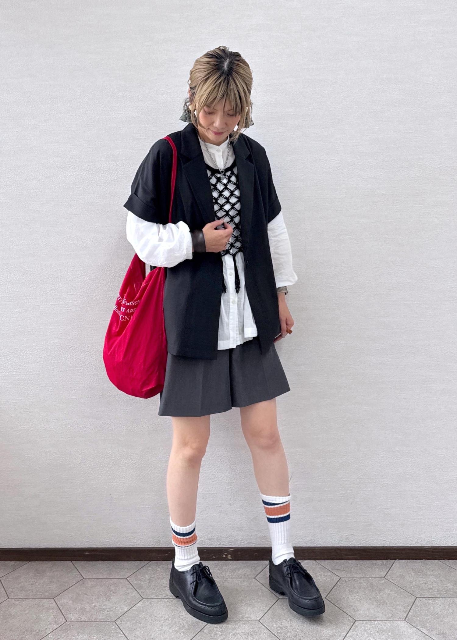 ROPÉ PICNICハーフタックパンツグレー / 38¥4,499レビューややワイドで女性らしいシルエット。センターライン入りなので、カジュアルになりすぎず、カッコいいコーディネートにも◎
