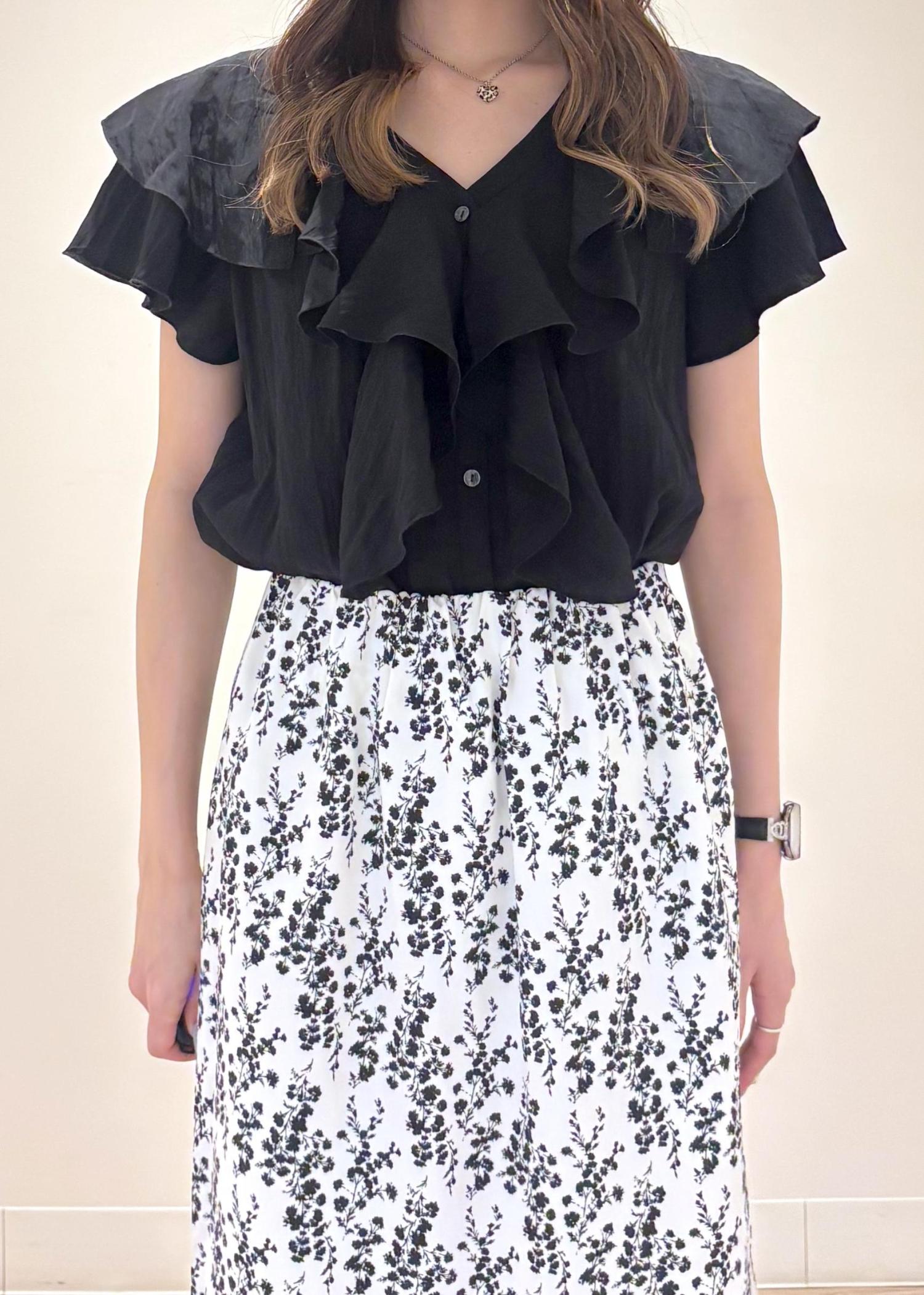 ROPÉ PICNIC【emur/エミュール】ランダムラッフルブラウスブラック / 38¥8,998レビューブラックだと顔周りが甘くなりすぎず大人かわいい印象に♩