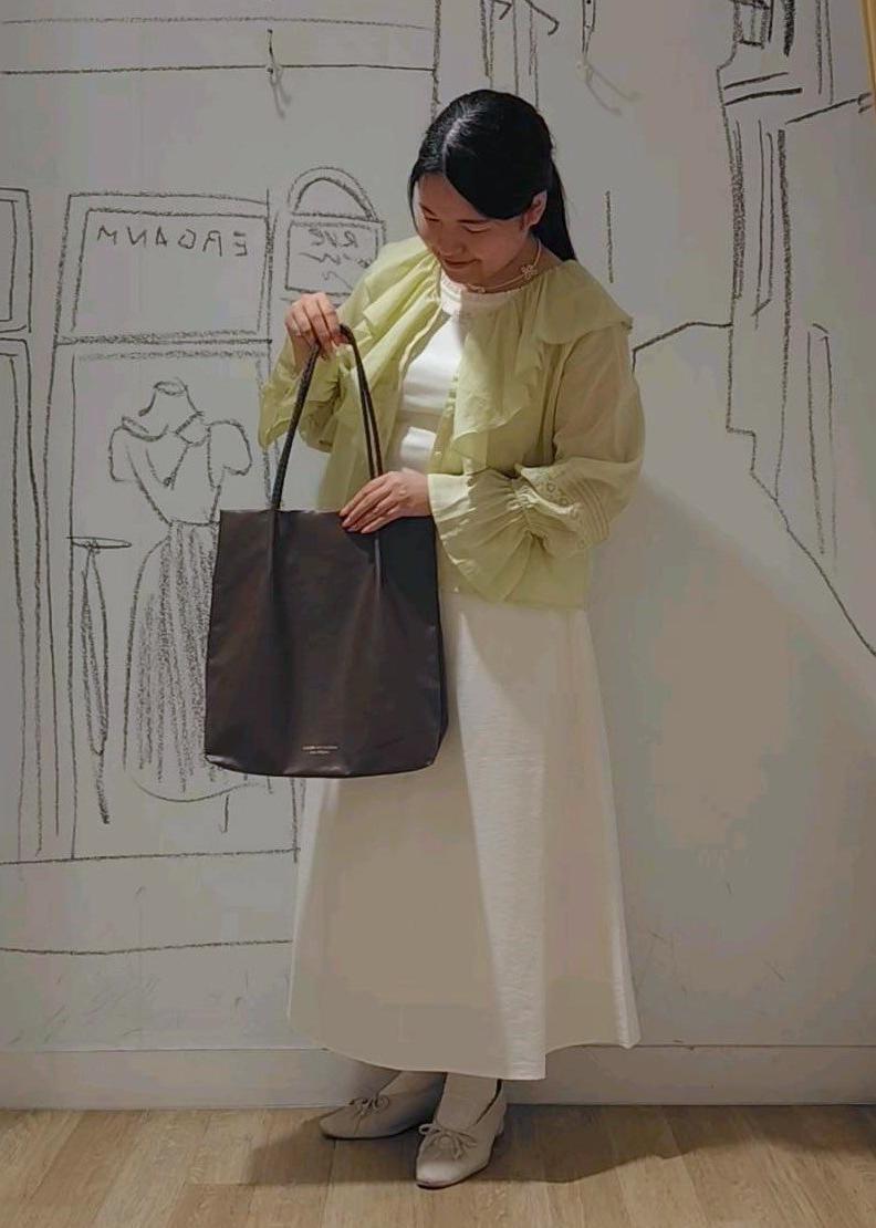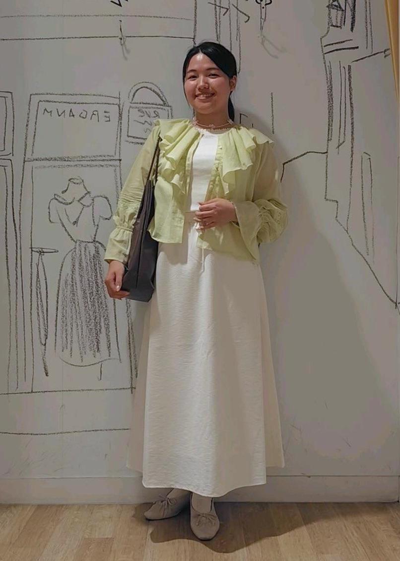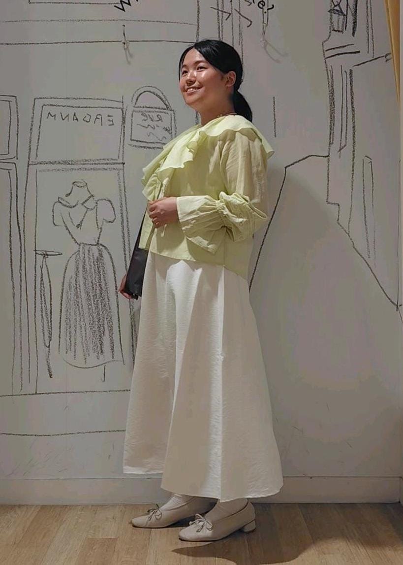 ホワイトを中心としてアクセントにイエローのトップスを羽織りました。