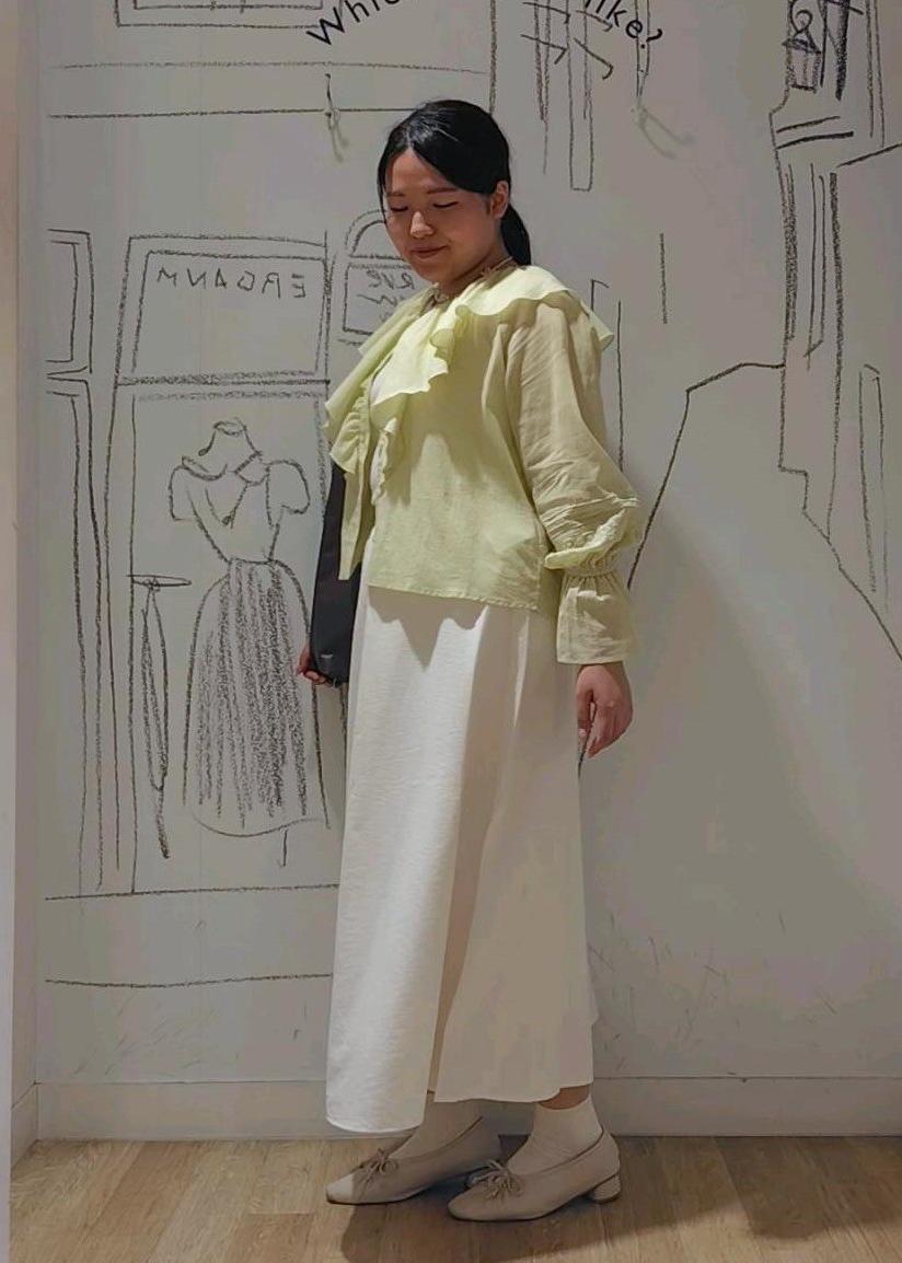 ホワイトとイエローの淡いカラーコーデ