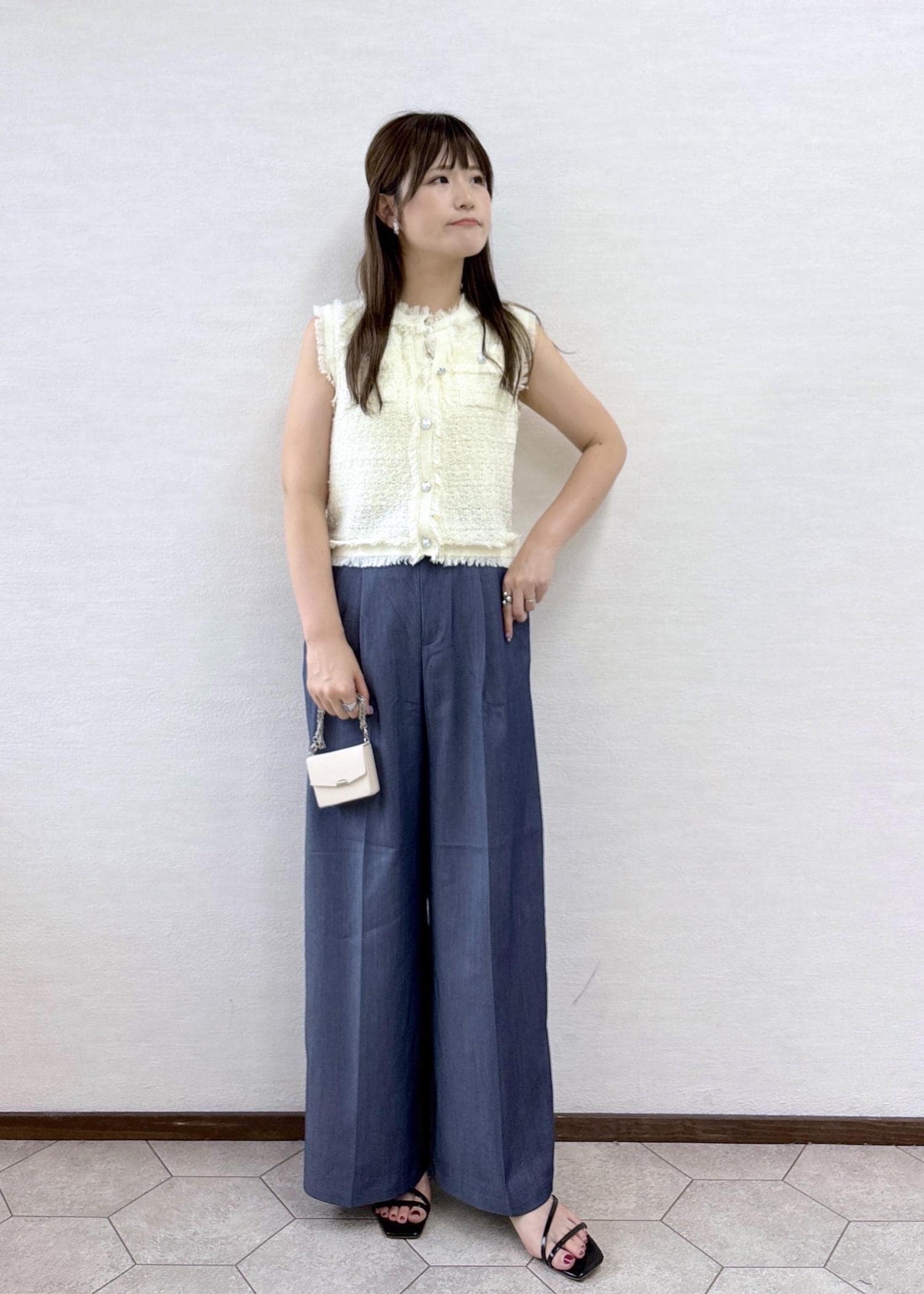 ROPÉ PICNIC【WEB限定カラー】【サマー・ツイード】着丈が選べるジレベスト/スリーブレスカーディガンキナリ / 38¥4,994レビュー【素材感】