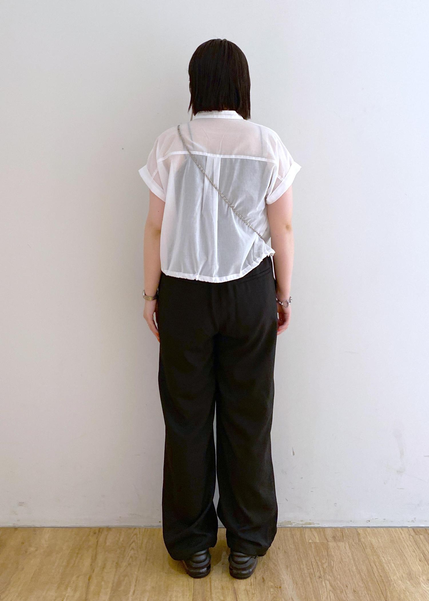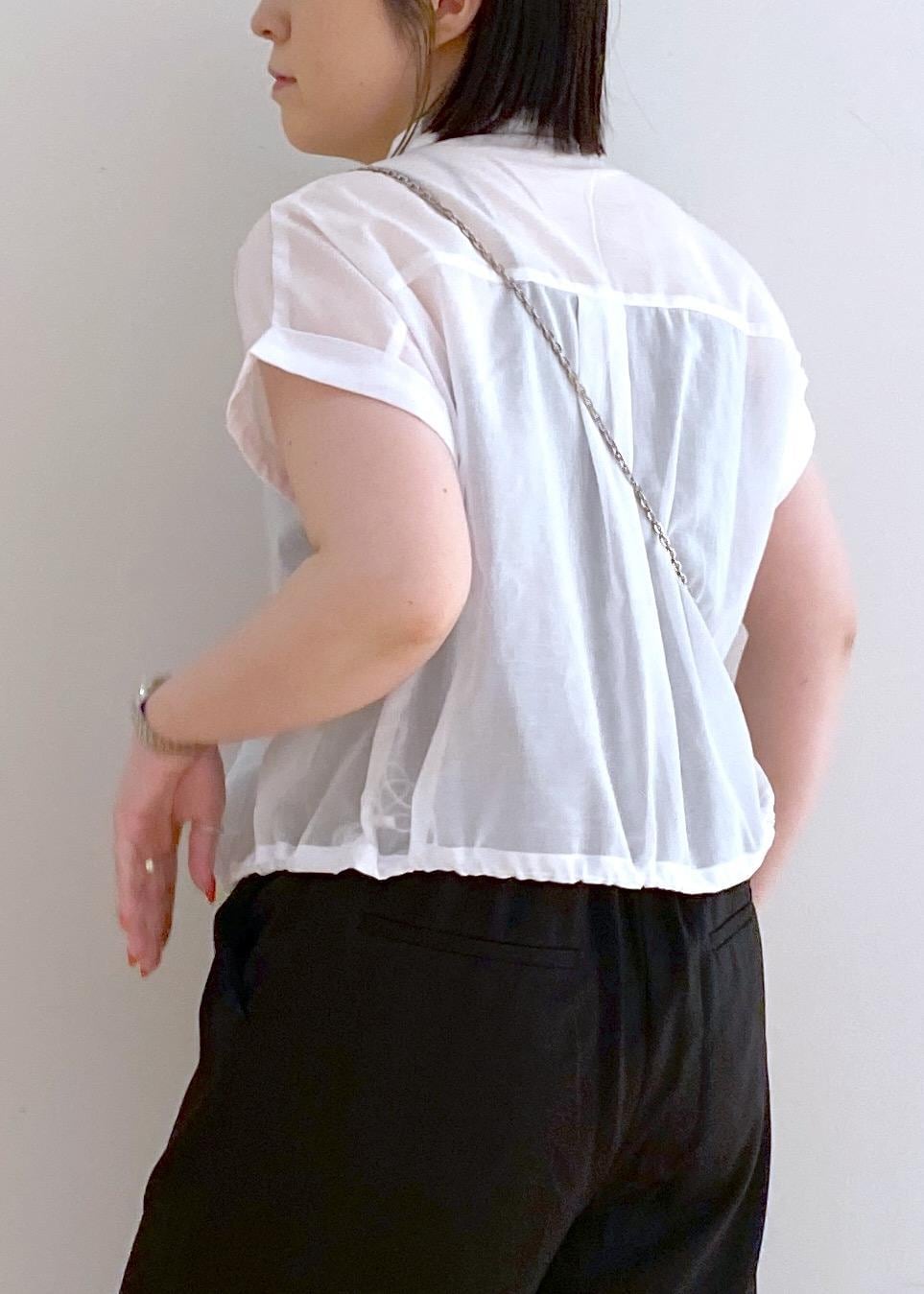 ROPÉ PICNICバルーンヘムシアーシャツオフホワイト / 38¥4,499レビュー裾にドローコードがあり身幅調節可能。156cmだとお腹周りにかかる着丈でした。袖口もゆとりがあり、涼しい素材なので暑い時期の羽織りとしても重宝しそうです◎