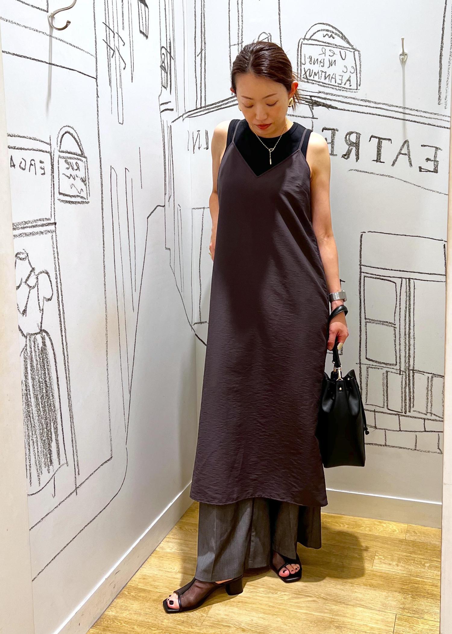 今回はキャミワンピースを使ったスタイリングを組んでみました。