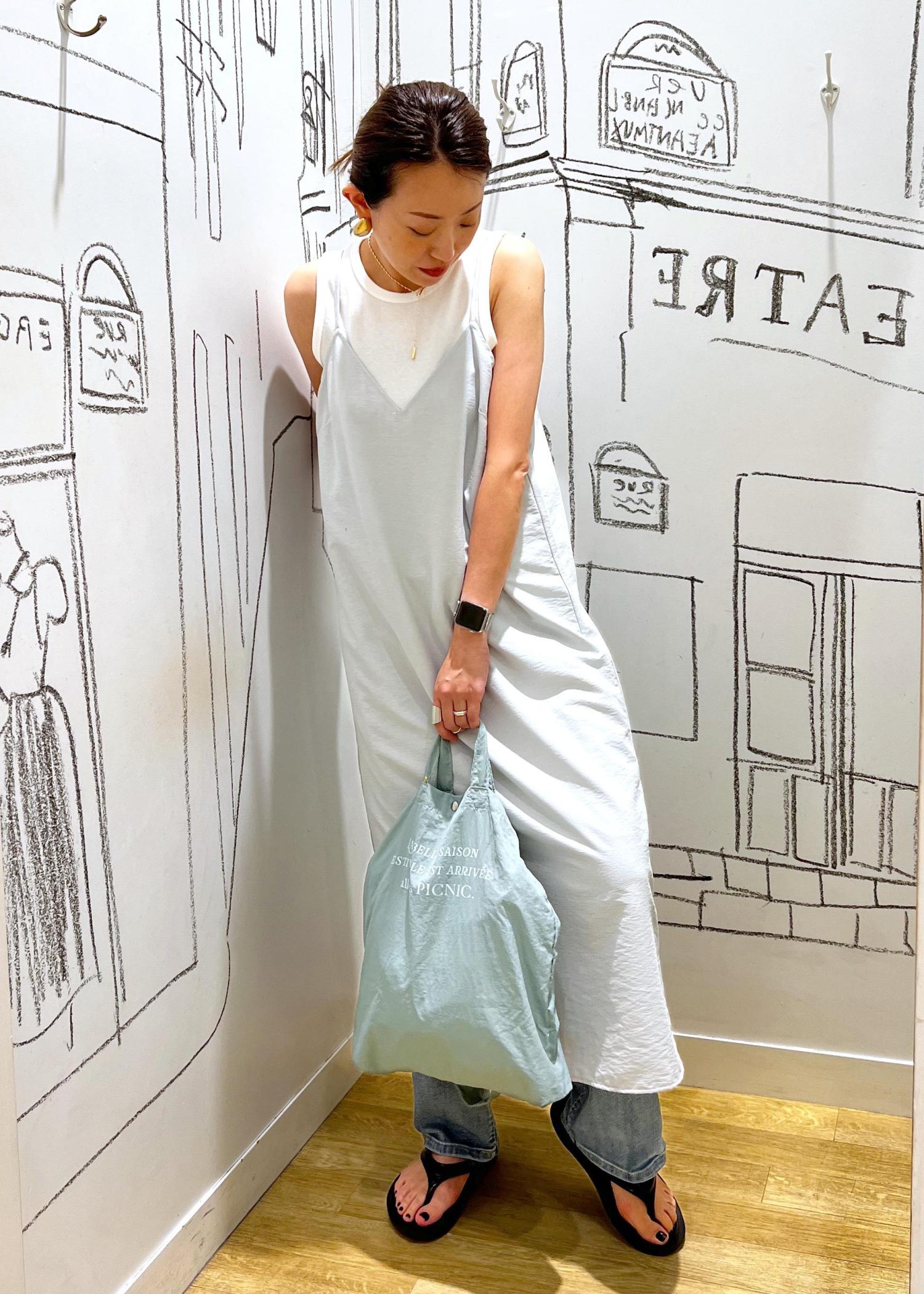 今回はキャミワンピースを使ったスタイリングを組んでみました。