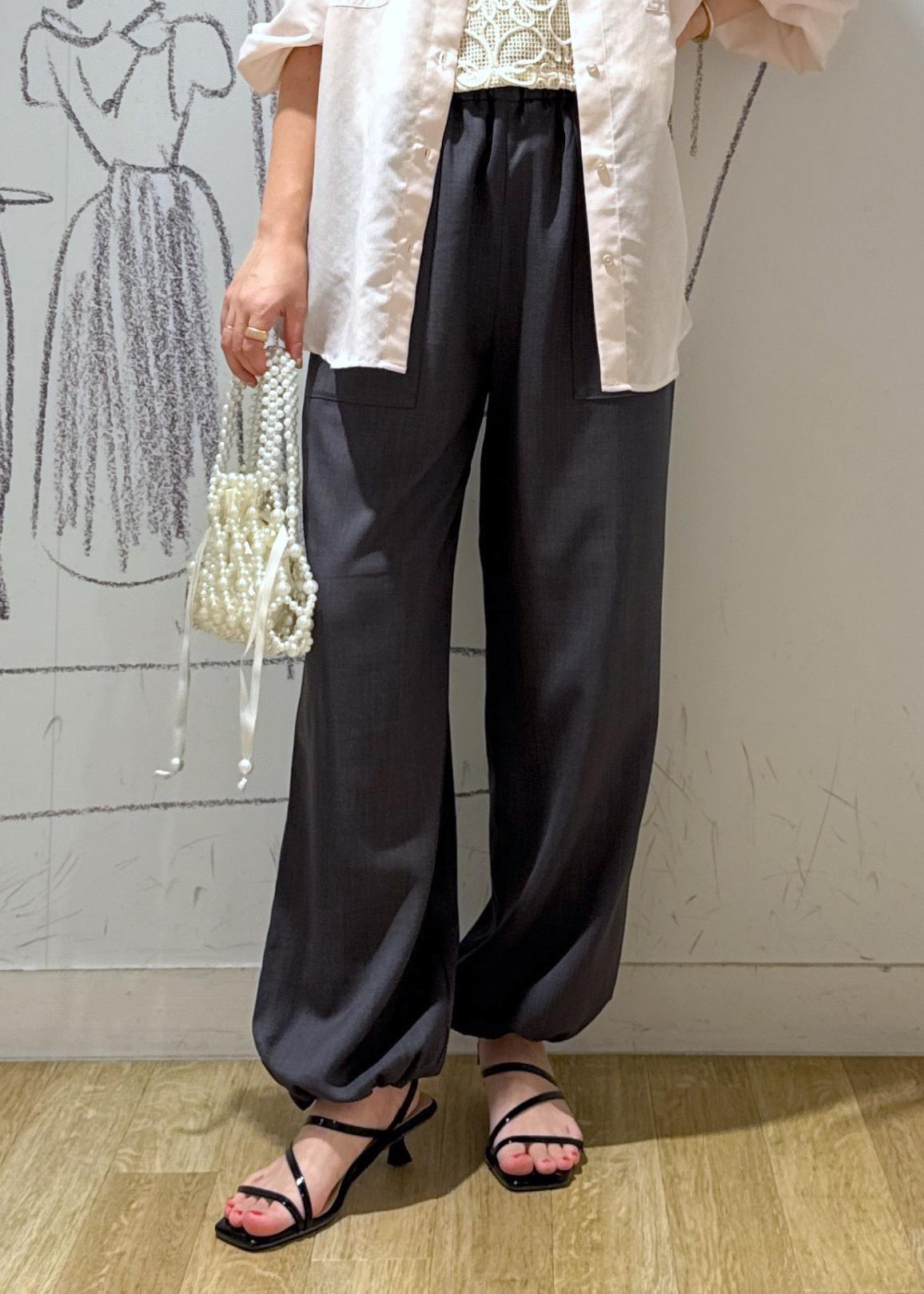 楽な履き心地なのにきちんと見えするので手抜き感がないのが嬉しいところ。裾はドロストコードで丸みを持たせればこなれた雰囲気に◎着丈が長いなと感じる方にもお勧めの着方です!