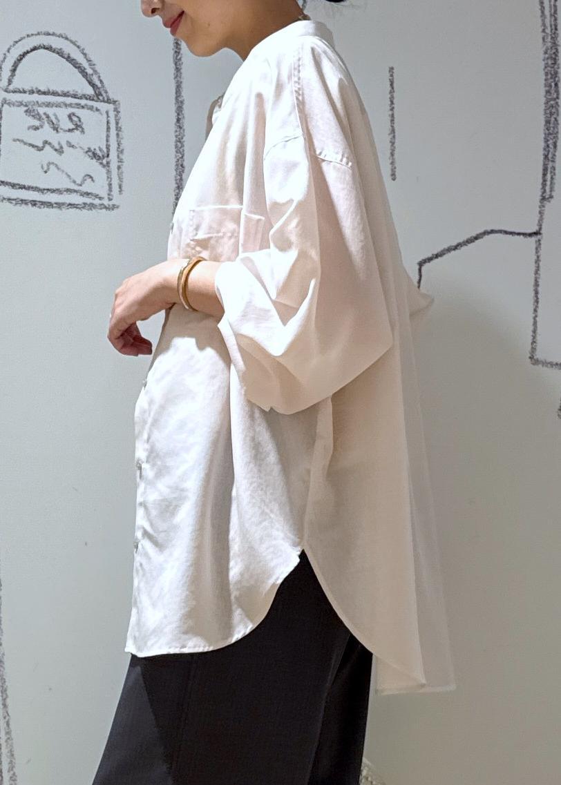 着丈が選べるバンドカラー無地シアーシャツ