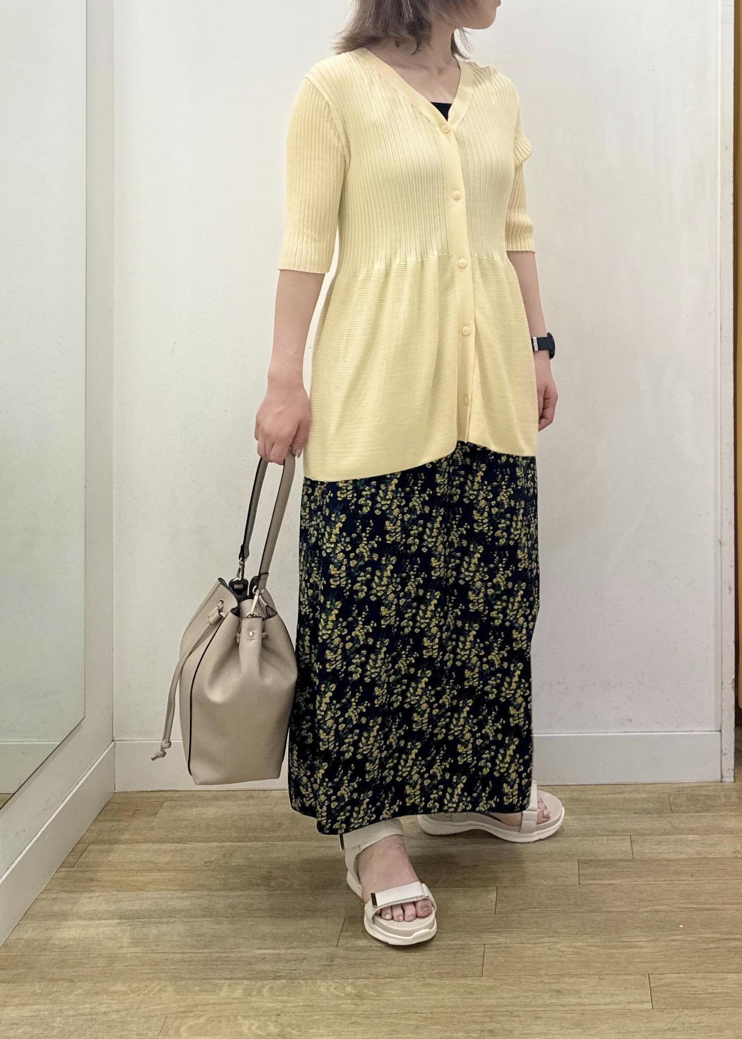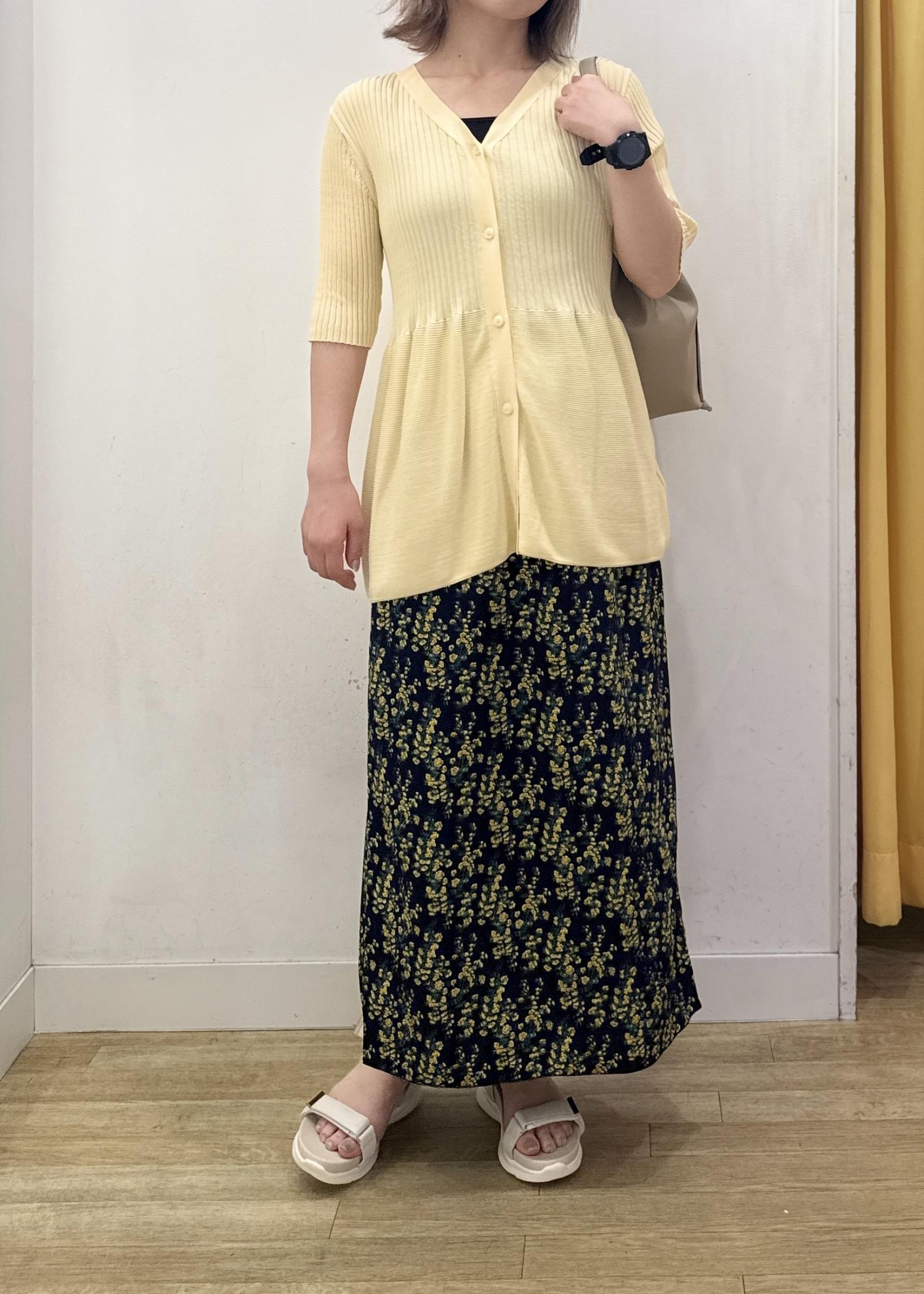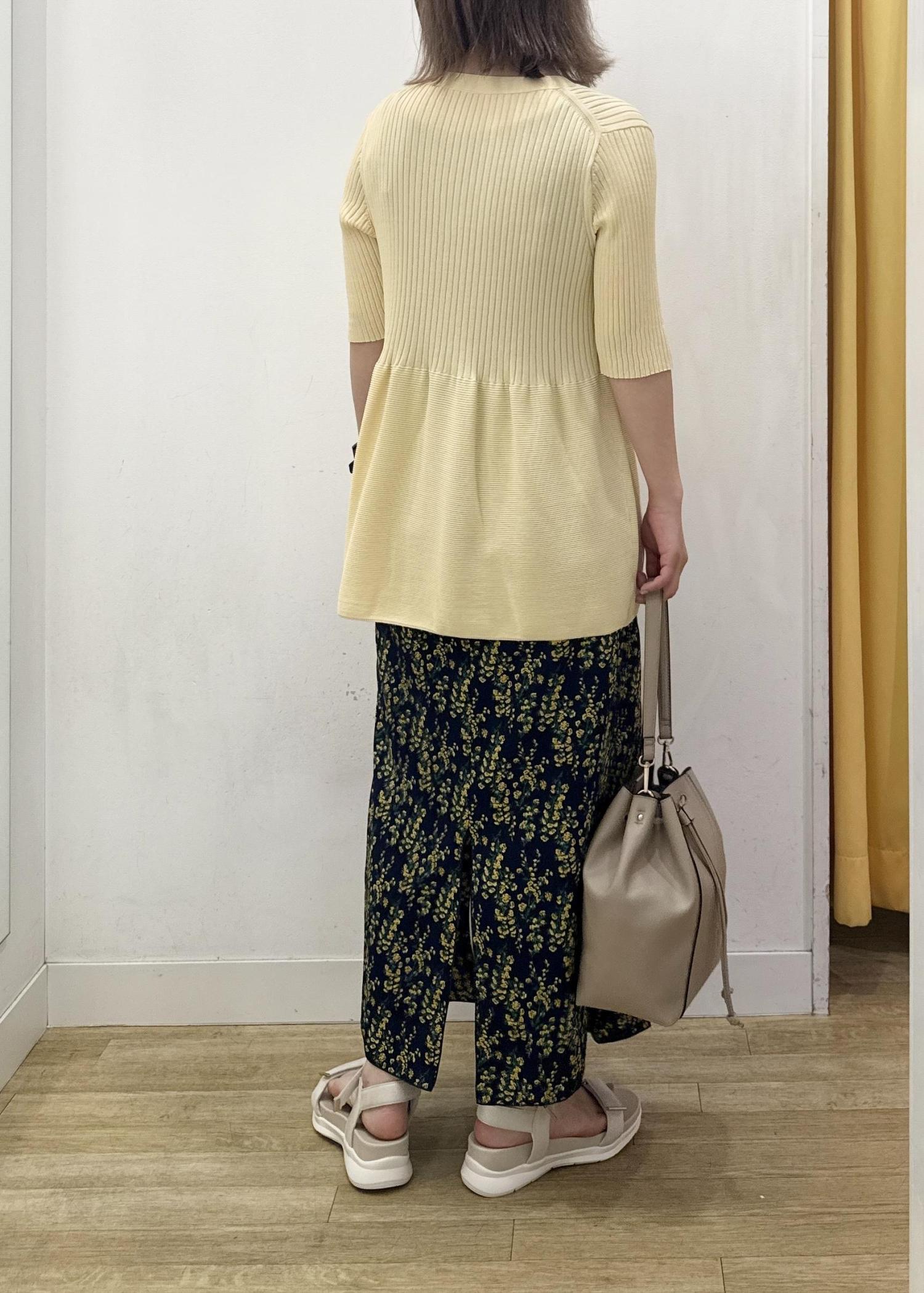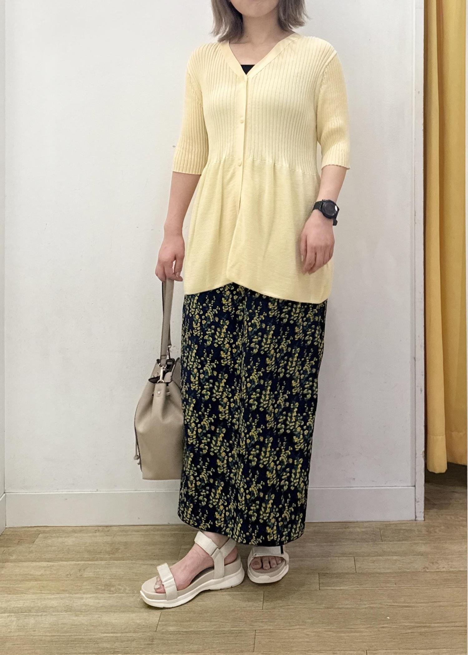 ペプラムシルエットのトップスに少しタイトめなシルエットの花柄スカートを合わせれば、ちょっとちゃんと見えするお出かけコーディネートに☺︎