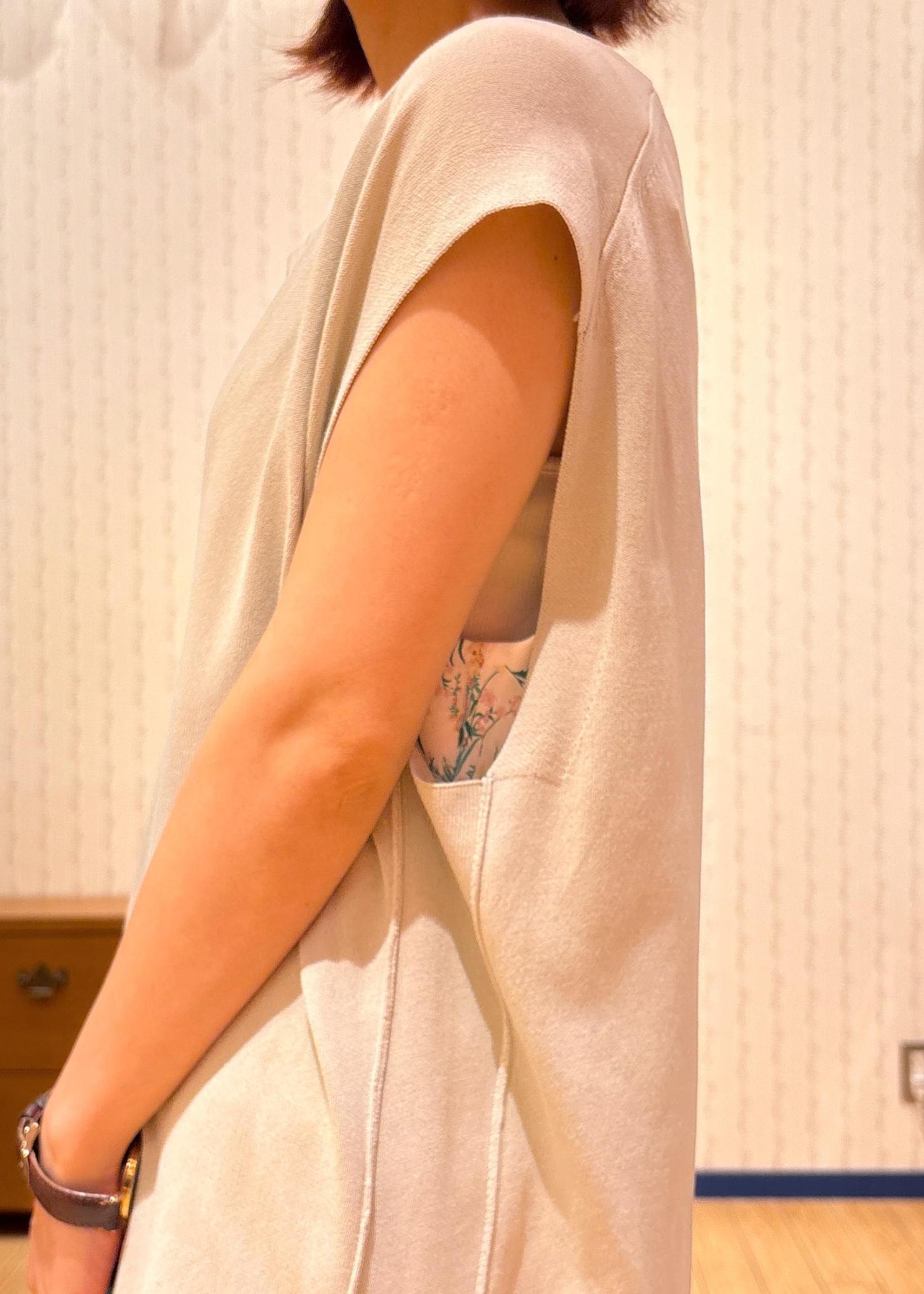 首元の深めのVネックデザインが顔回りをスッキリ見せてくれます。 -