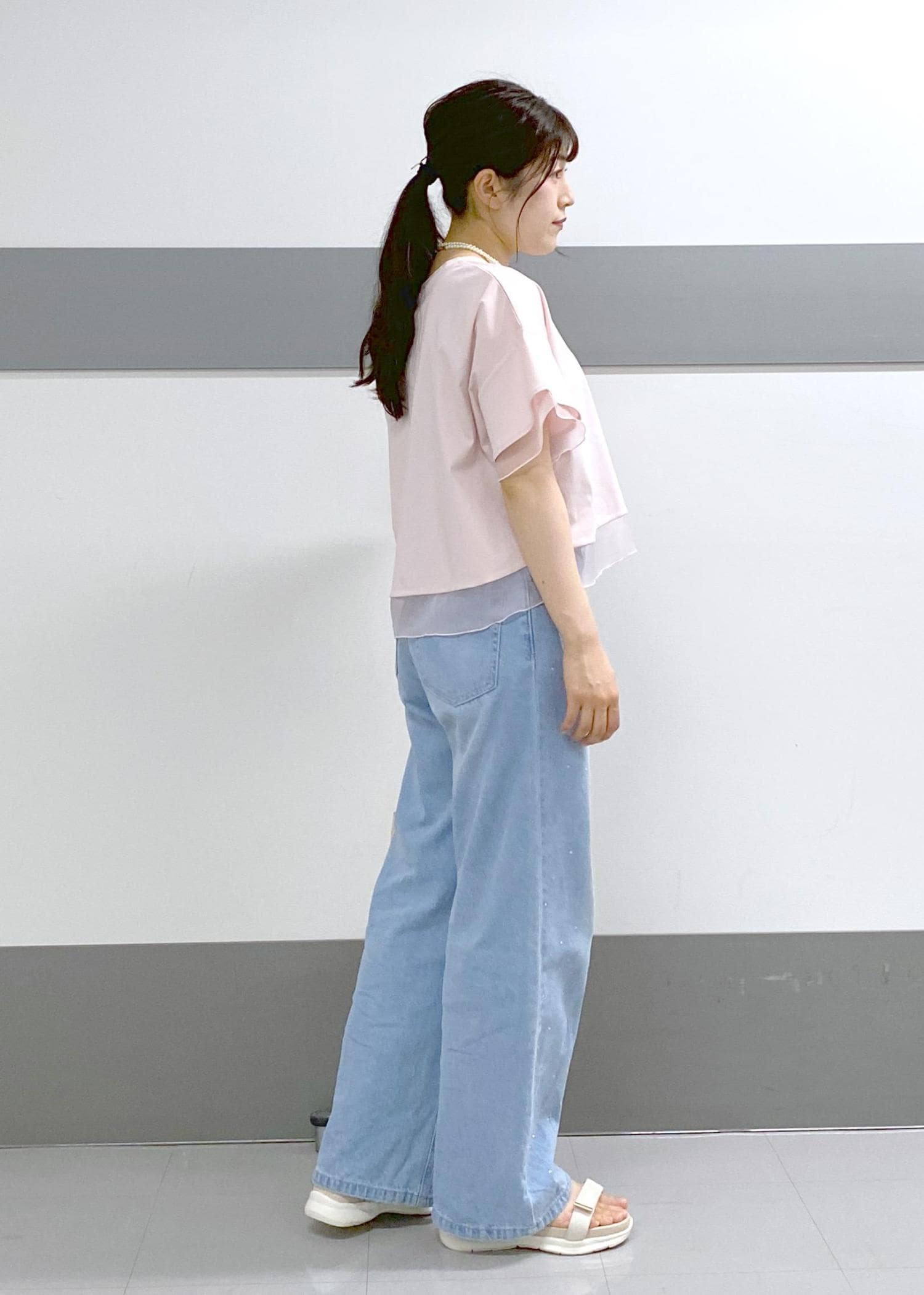 低身長の方は、厚底やヒールのある靴と合わせていただくとバランスが良さそうです。