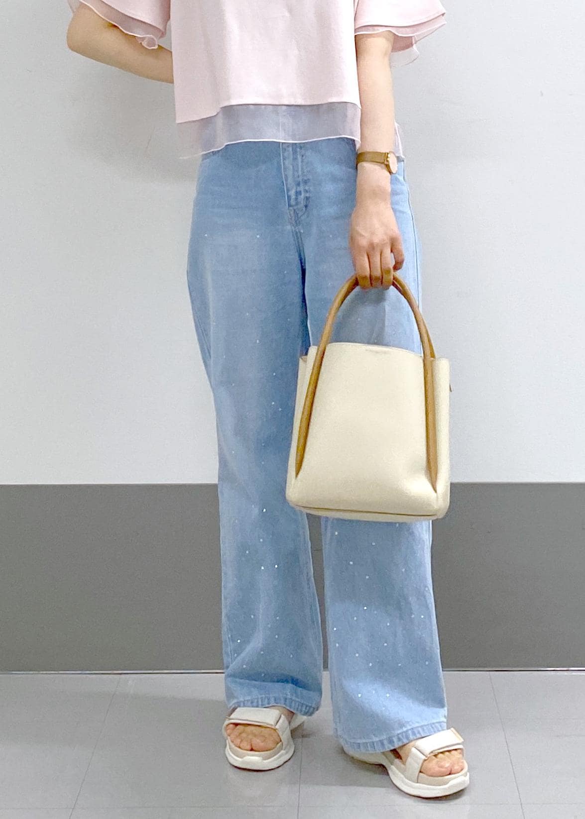 キラキラのビジューが可愛いデザインで、シンプルなトップスと合わせても華やかになります。 -
