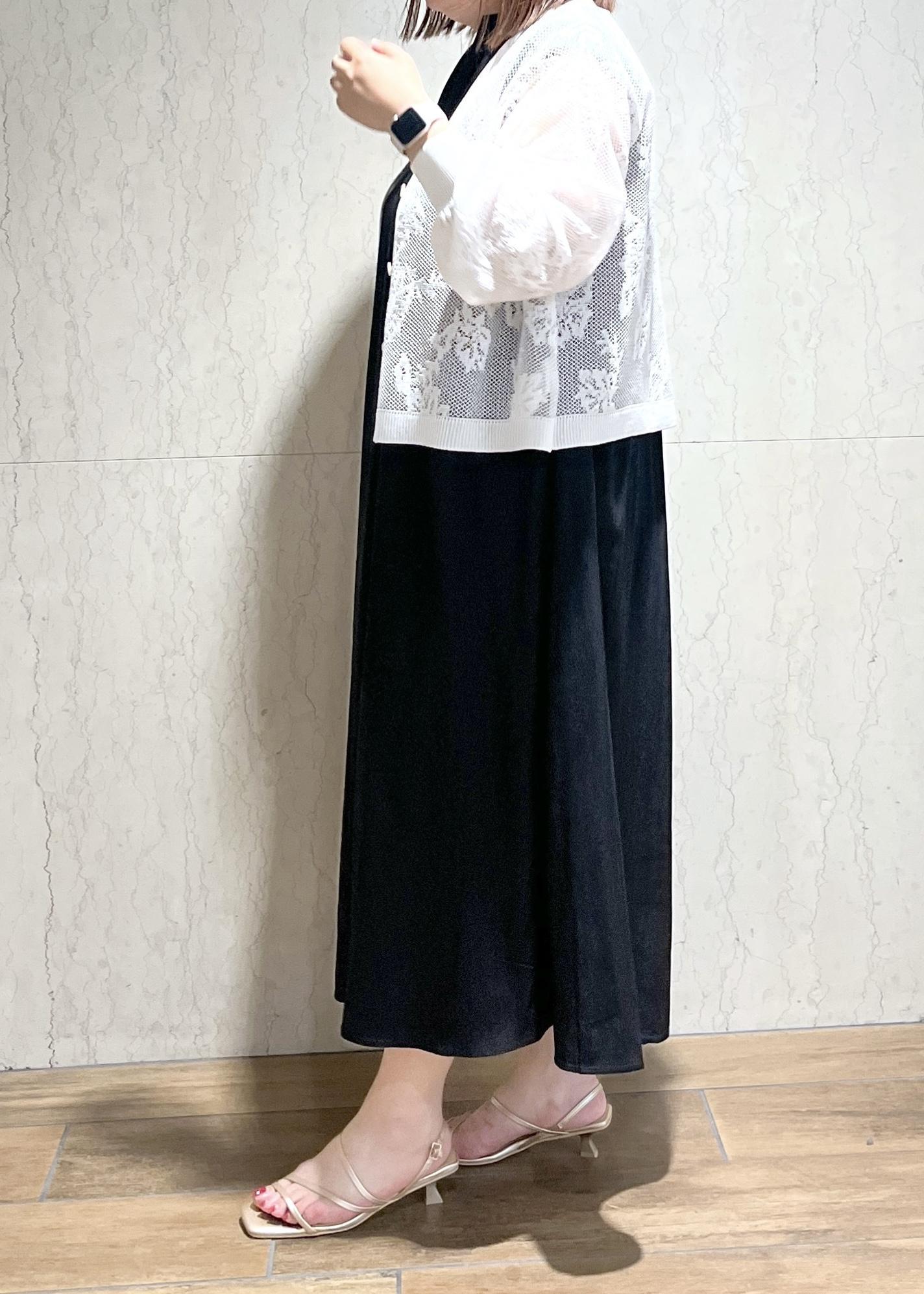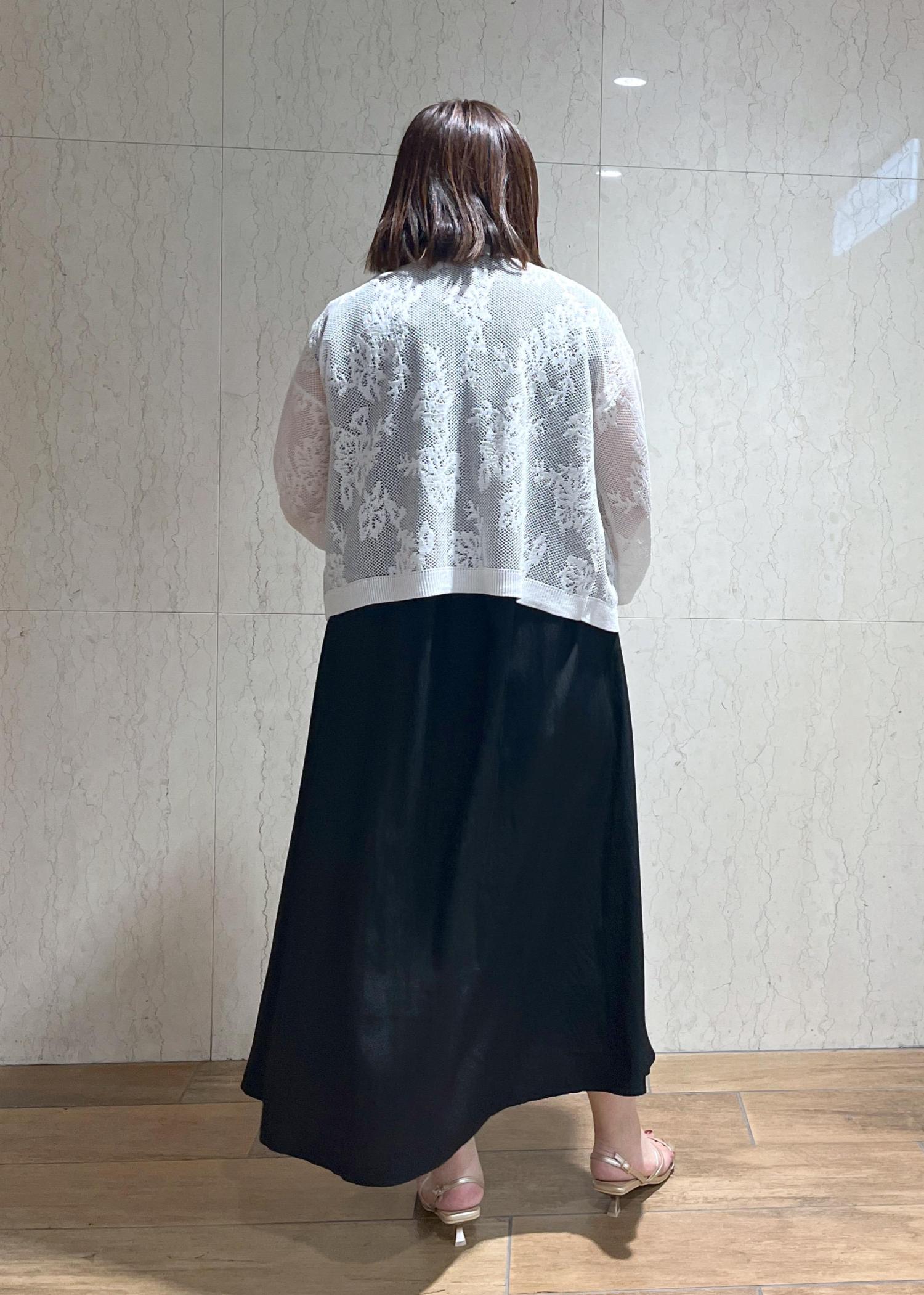 透かし編みカーディガンは程よい透け感で涼しく華やかな印象になるので夏の羽織りものにおすすめです☺︎