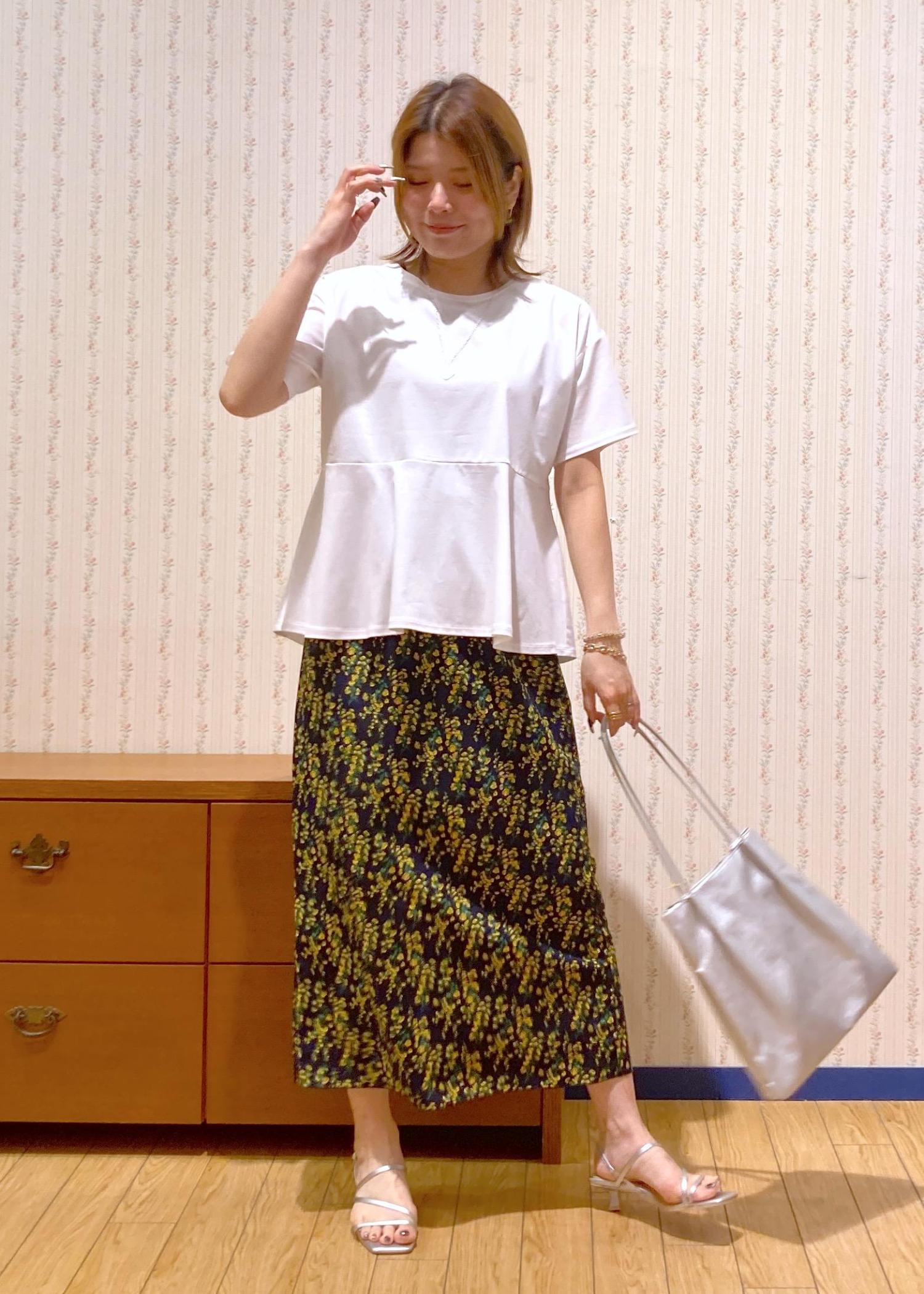 体のラインを拾わないゆったりとしたサイズ感ですがペプラムシルエットで楽ちんなのにスッキリ見えます!