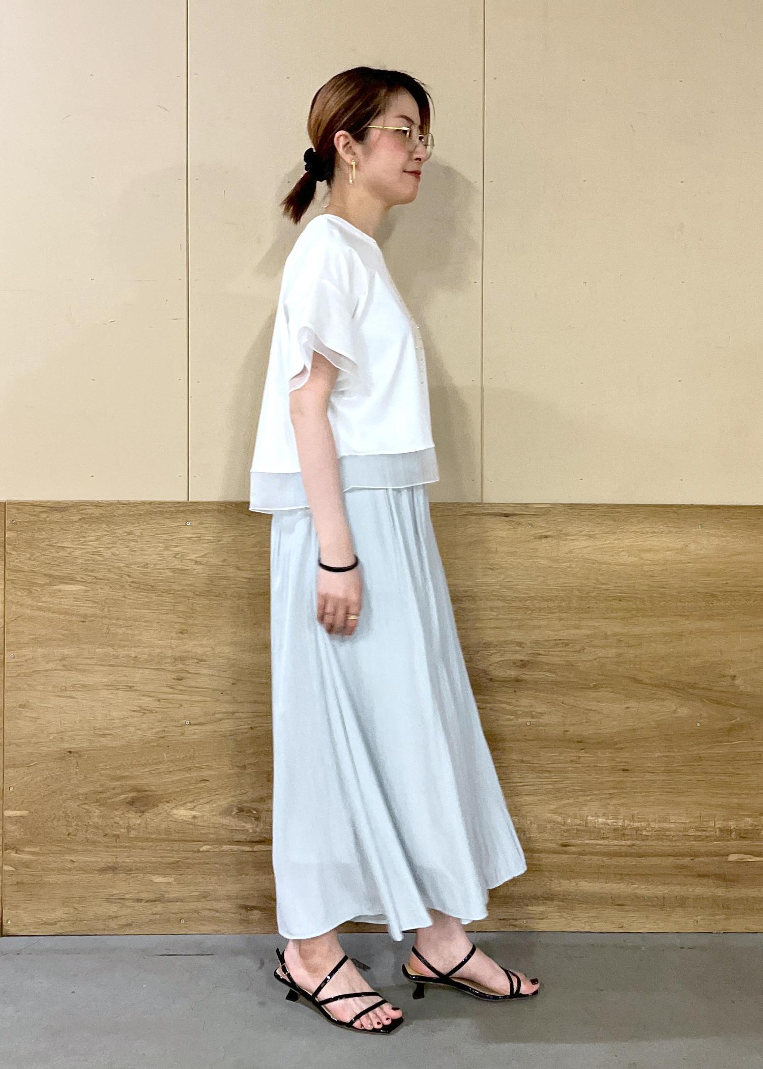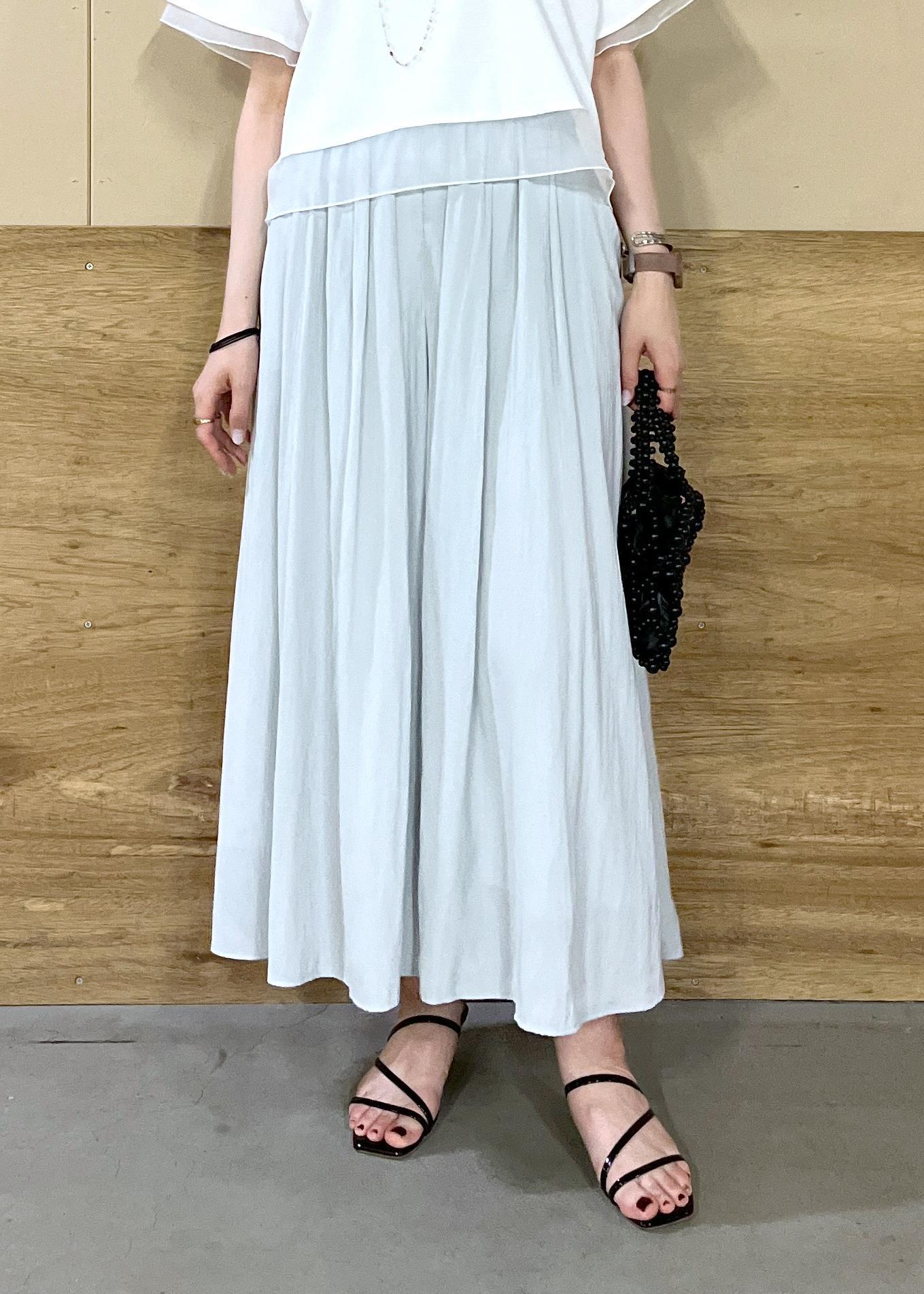 見た目にも「涼」を感じられる色合わせのリラックスコーデです。