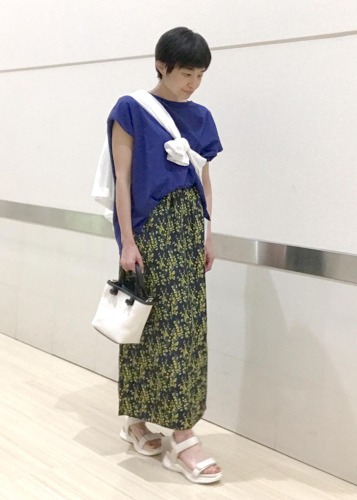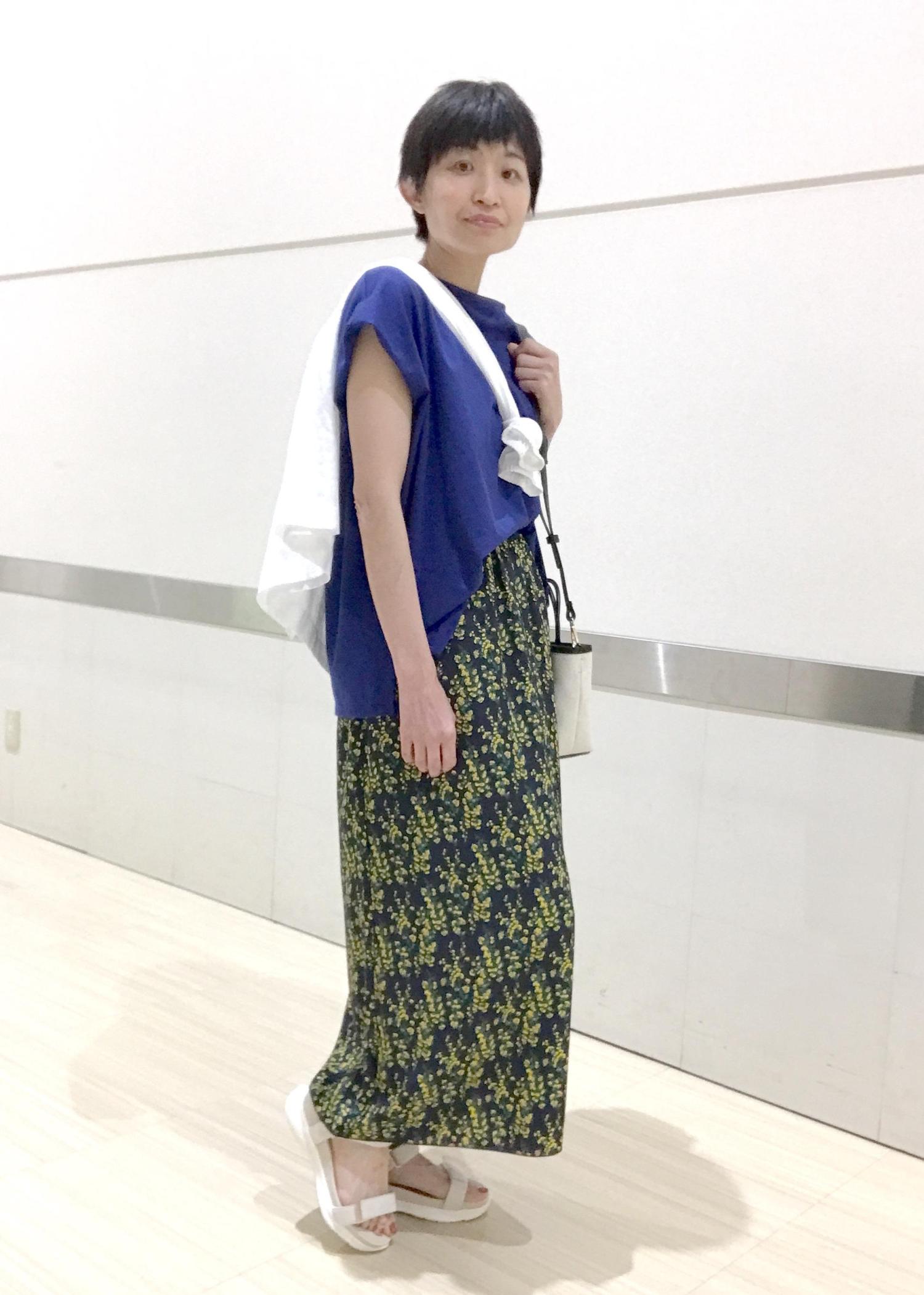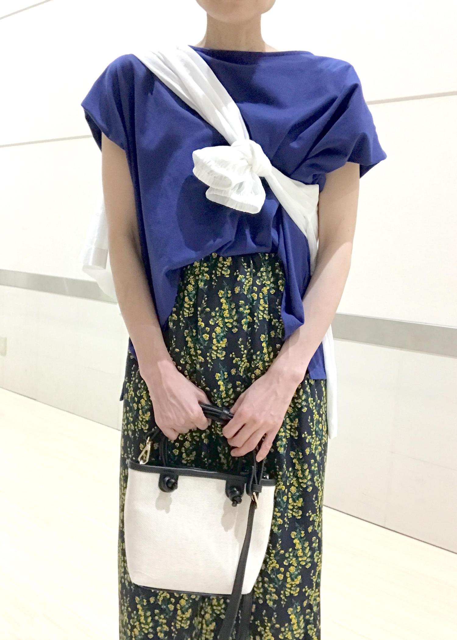 着心地が良く、さわやかに見えるアイテムでまとめてみました!!スカートのお花のイエローがパッと華やか♬