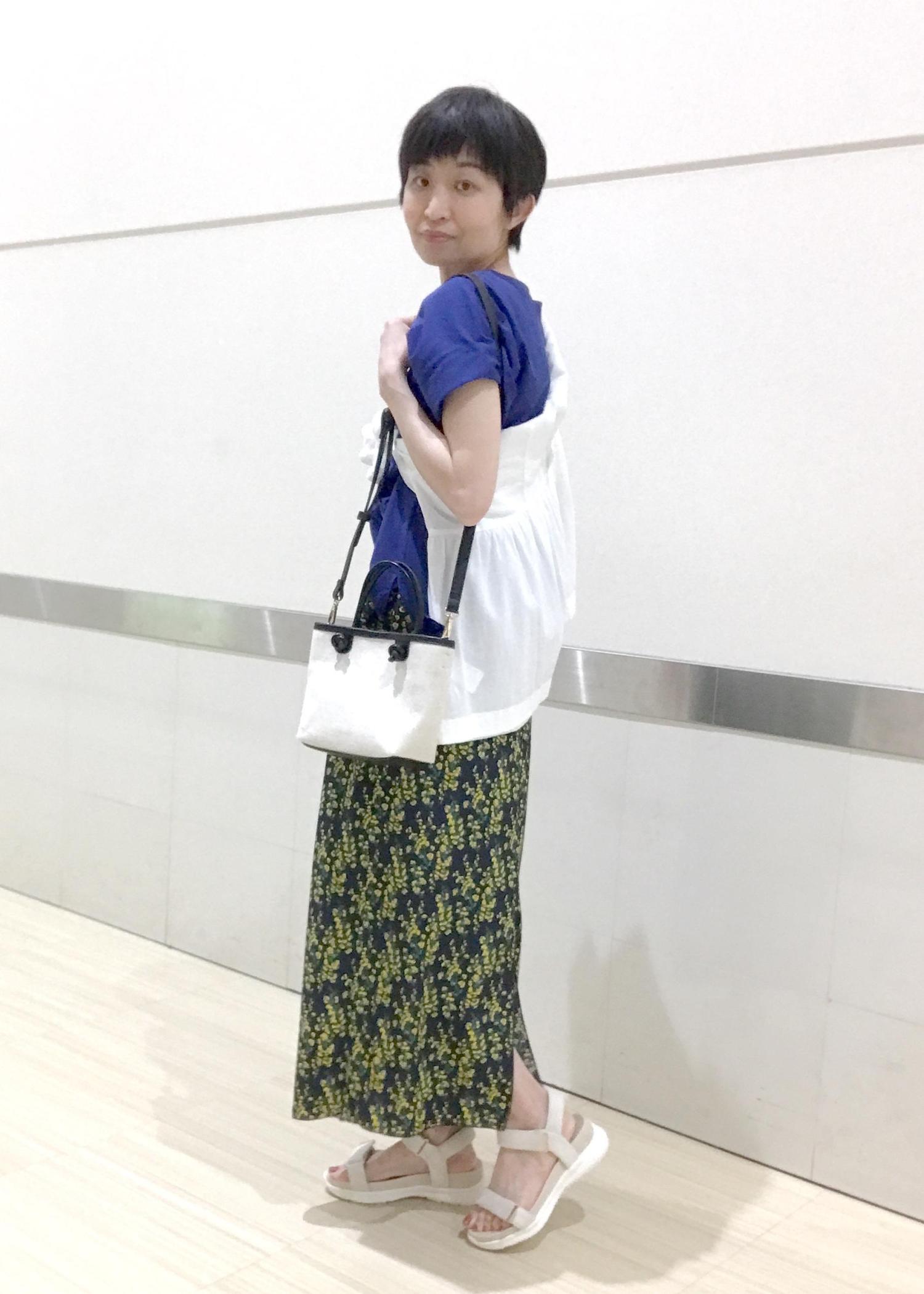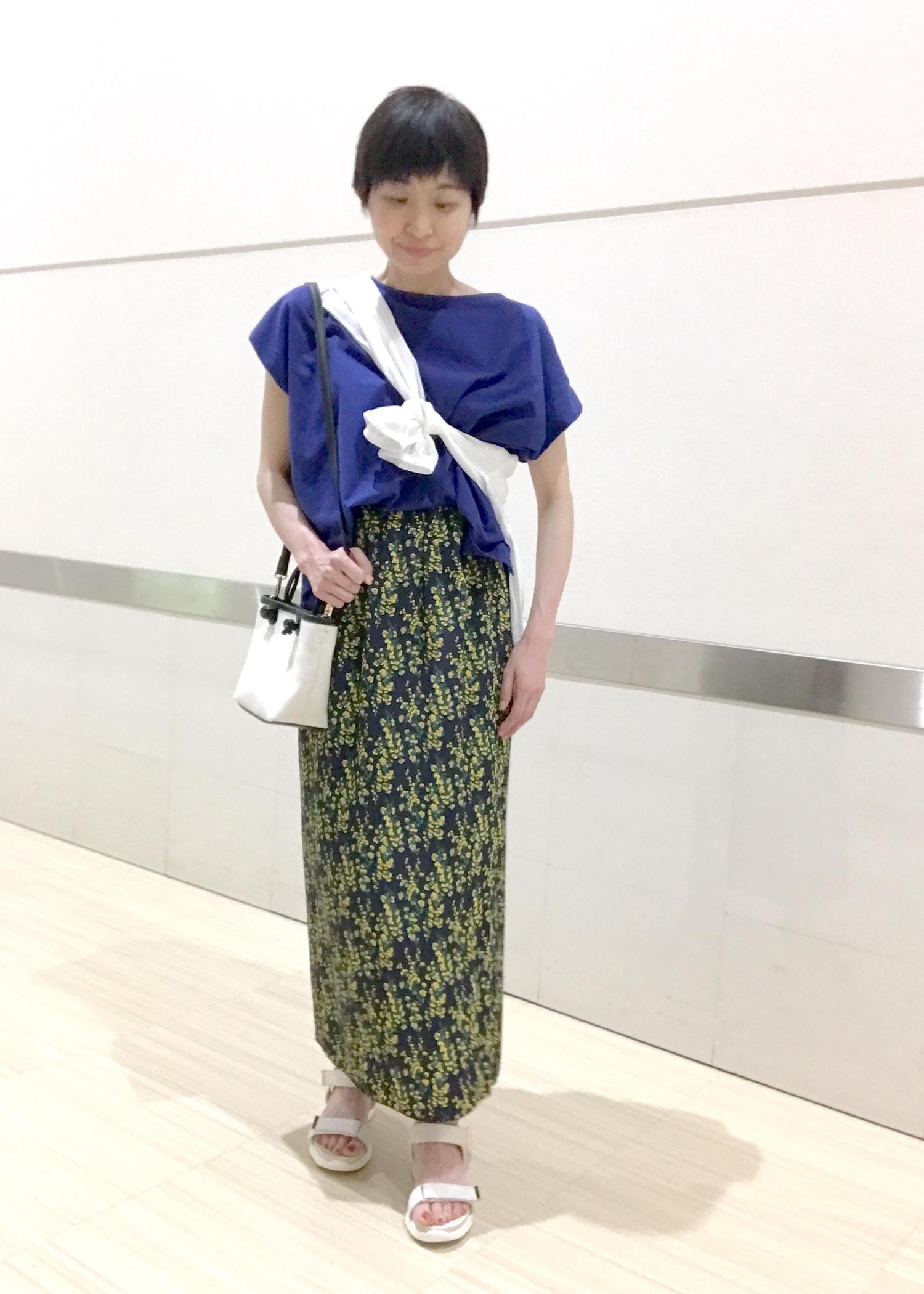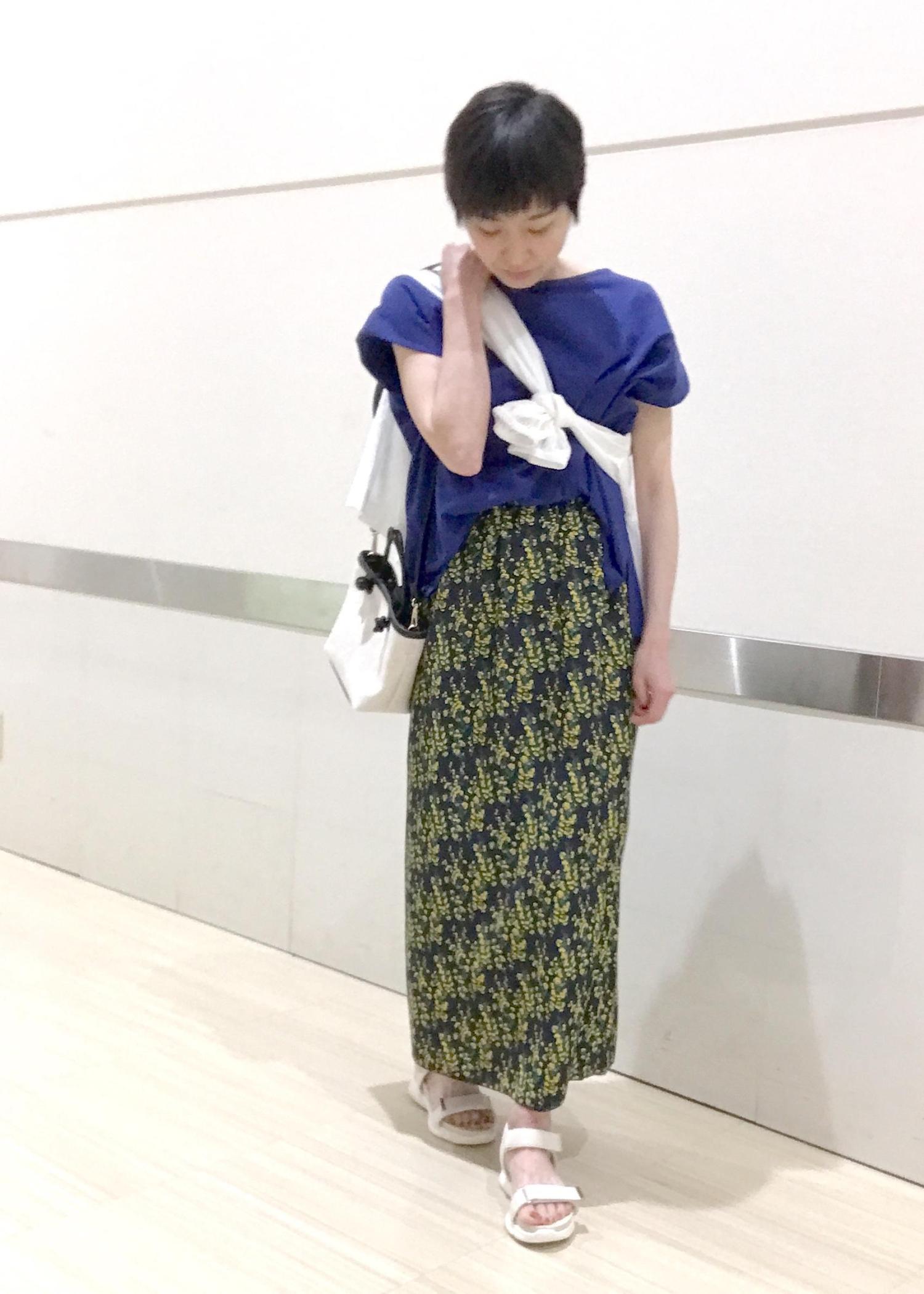 着心地が良く、さわやかに見えるアイテムでまとめてみました!!スカートのお花のイエローがパッと華やか♬