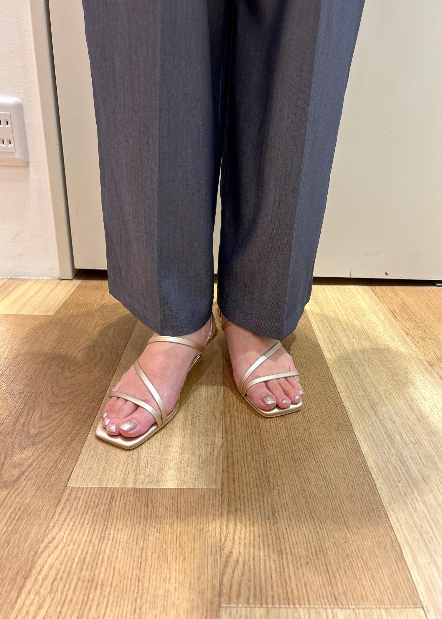 センタープレス入りで縦長効果もあり、164センチで足首が隠れる長さです。
