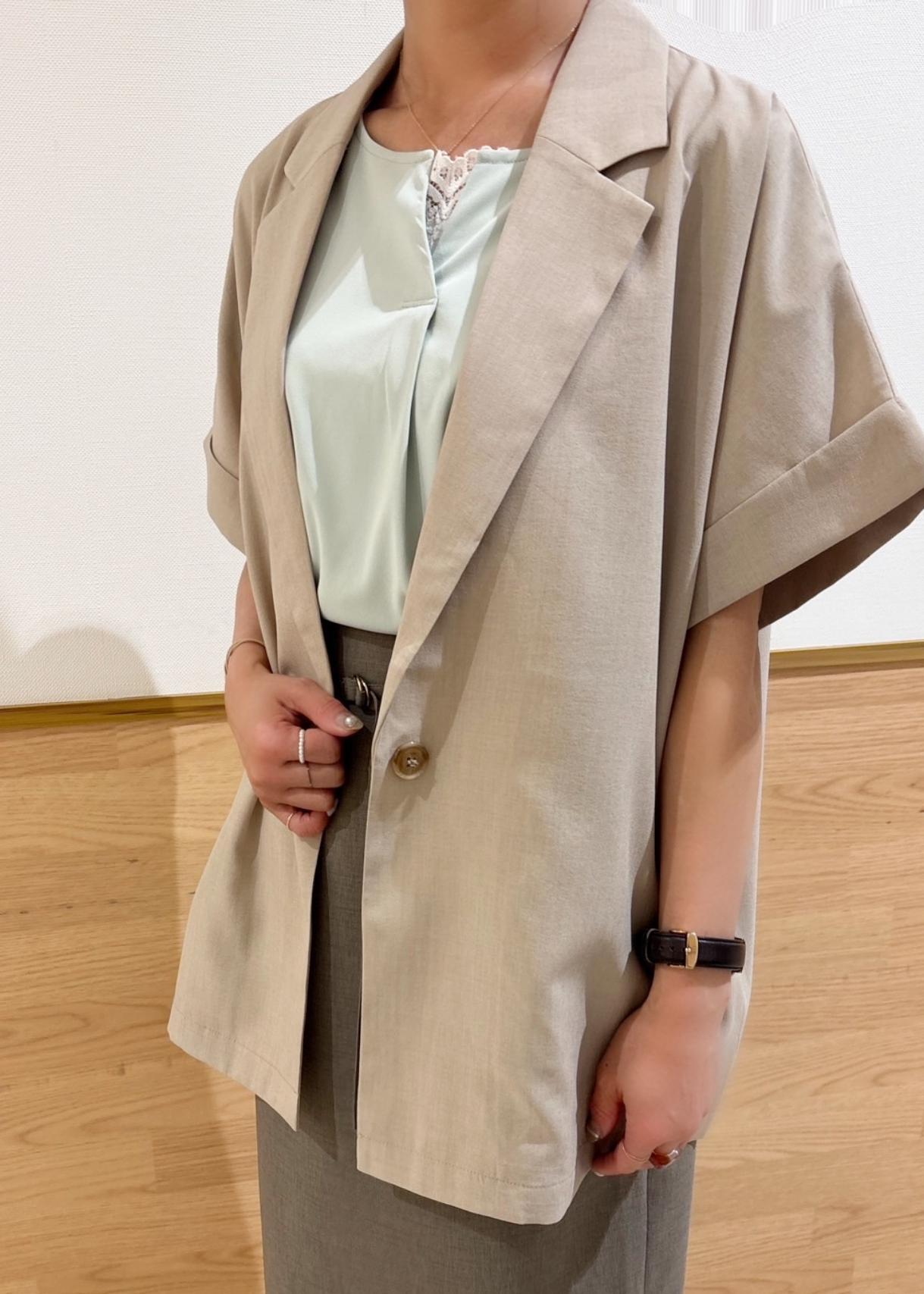 さらっと涼しく軽やかに着こなせるハーフスリーブジャケットは、ほどよいきちんと感が出ます。