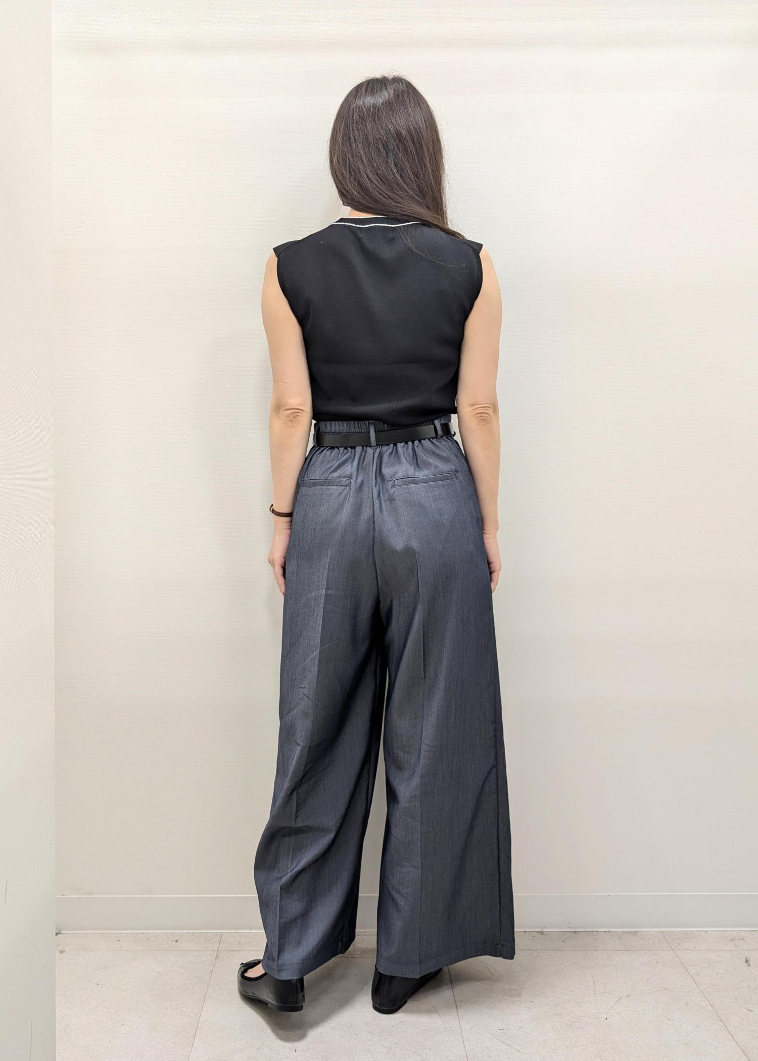 夏はデニムは暑いですが、こちらはデニム風で薄手の生地なので合わせやすさはデニムのまま、涼しくお召し頂けます(^.^)